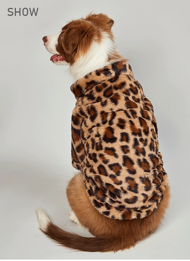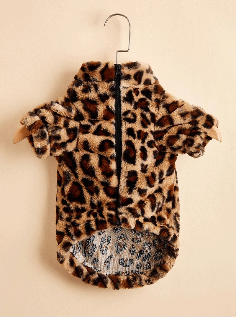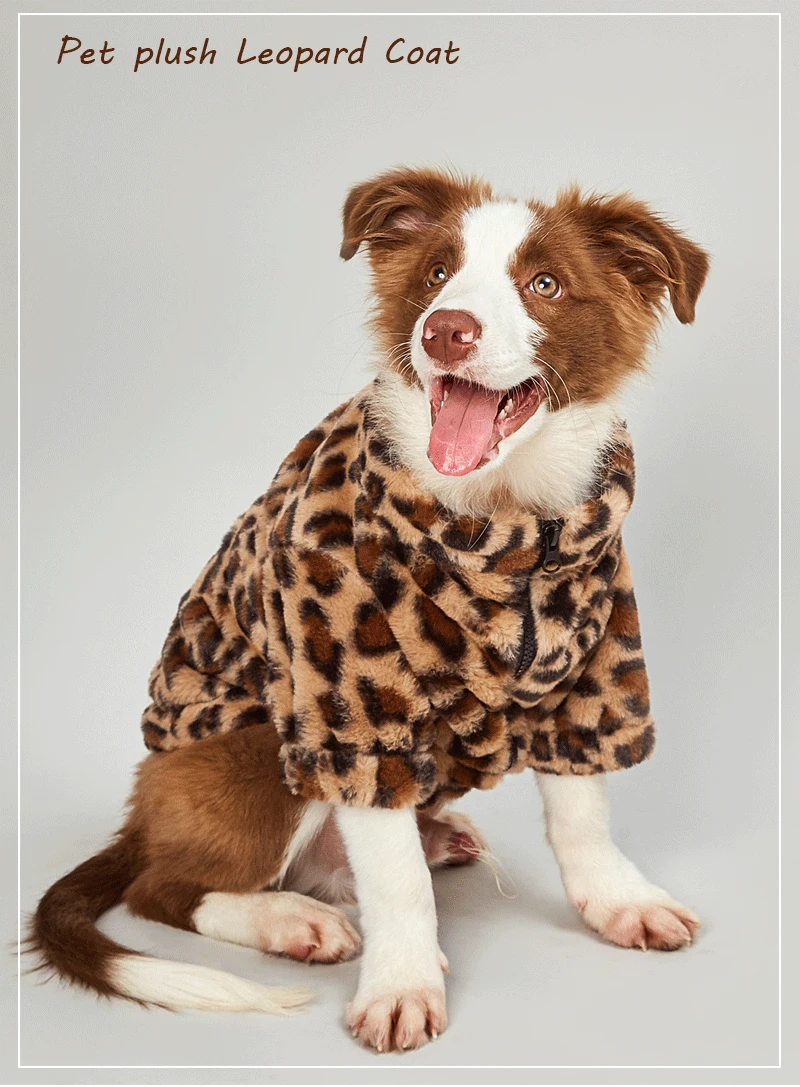 Ropa cálida de felpa para mascotas, chaqueta de leopardo para perro, abrigo para perro Labrador, traje de Bulldog Francés, XS-XXL, Otoño e Invierno