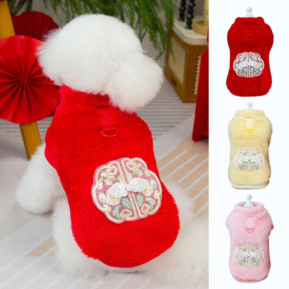 Ropa cálida de franela para perros, suéter de invierno para cachorros y gatos, abrigo suave, estilo chino, Chihuahua, ropa para mascotas, Mono para perros pequeños y medianos