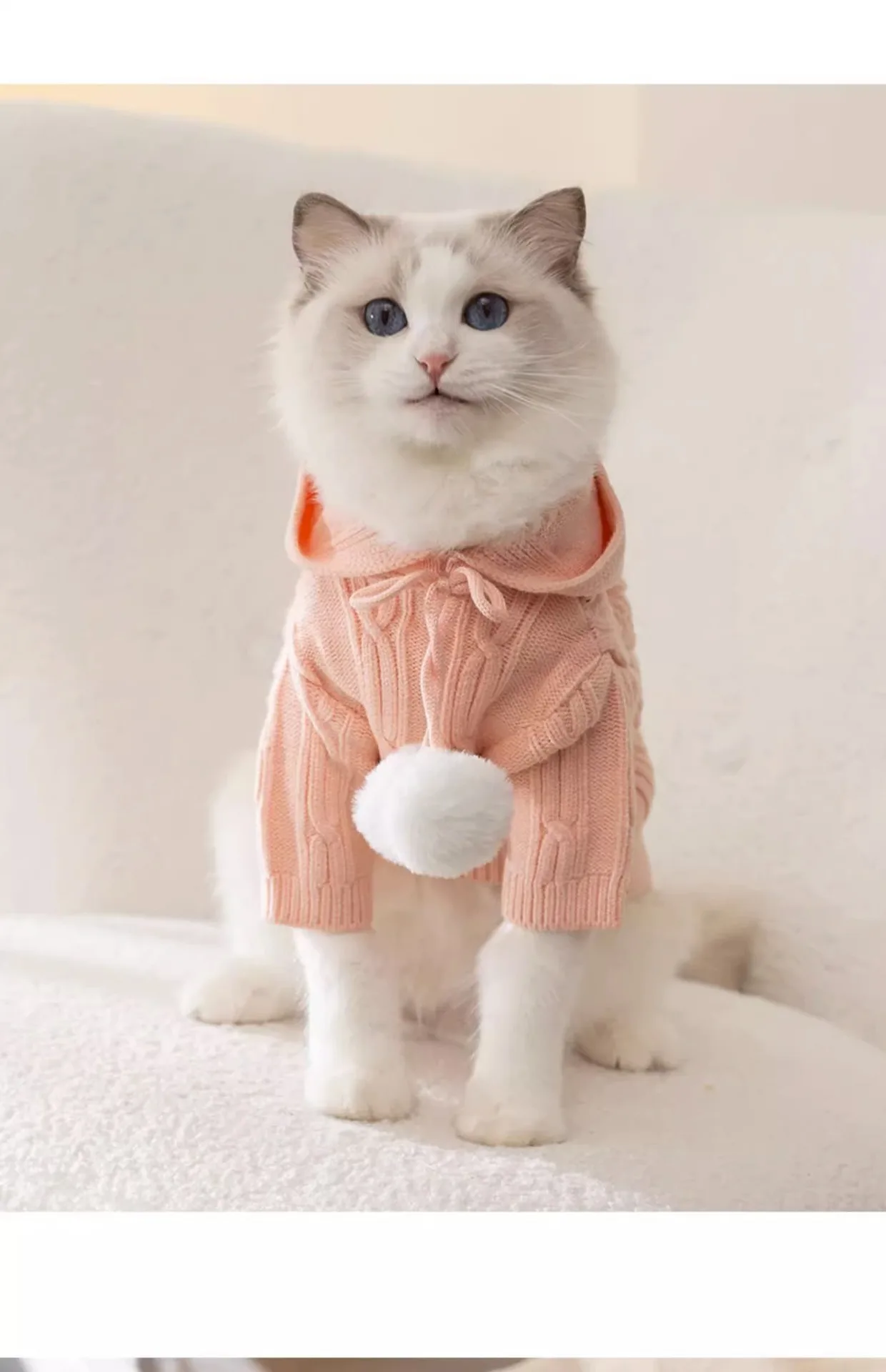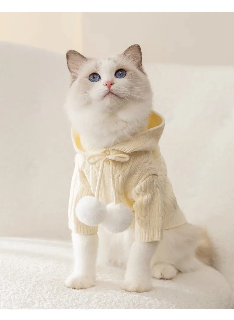Ropa cálida para gatos, ropa de invierno para mascotas, trajes de moda, abrigos, suéter suave con capucha, suministros para mascotas de primavera