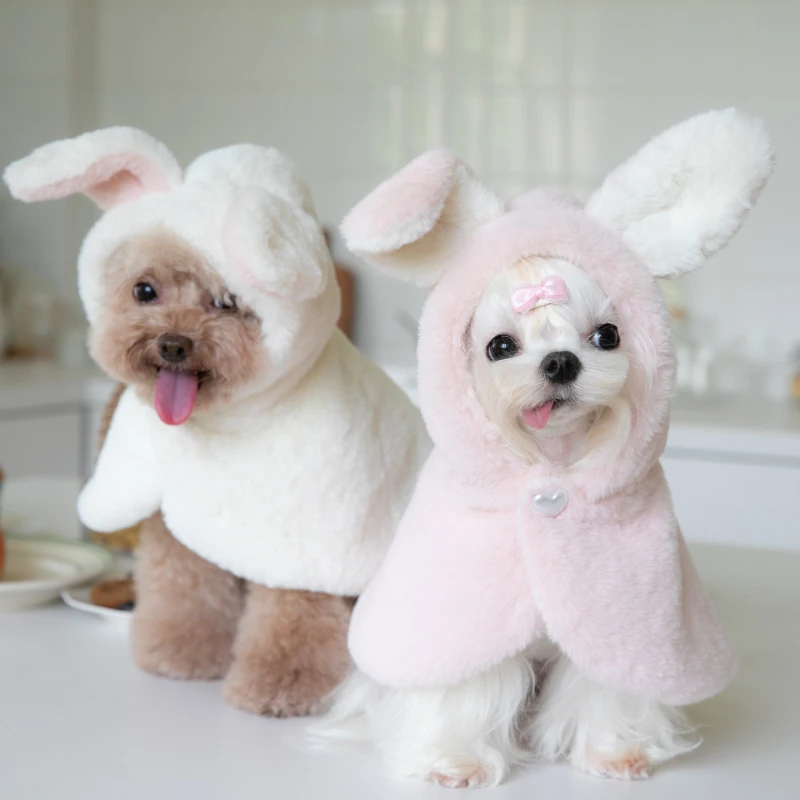 Ropa cálida de invierno para mascotas, abrigo de felpa de conejo, perro, exterior de Navidad, cortavientos de Año Nuevo, abrigo grueso de lana, regalo
