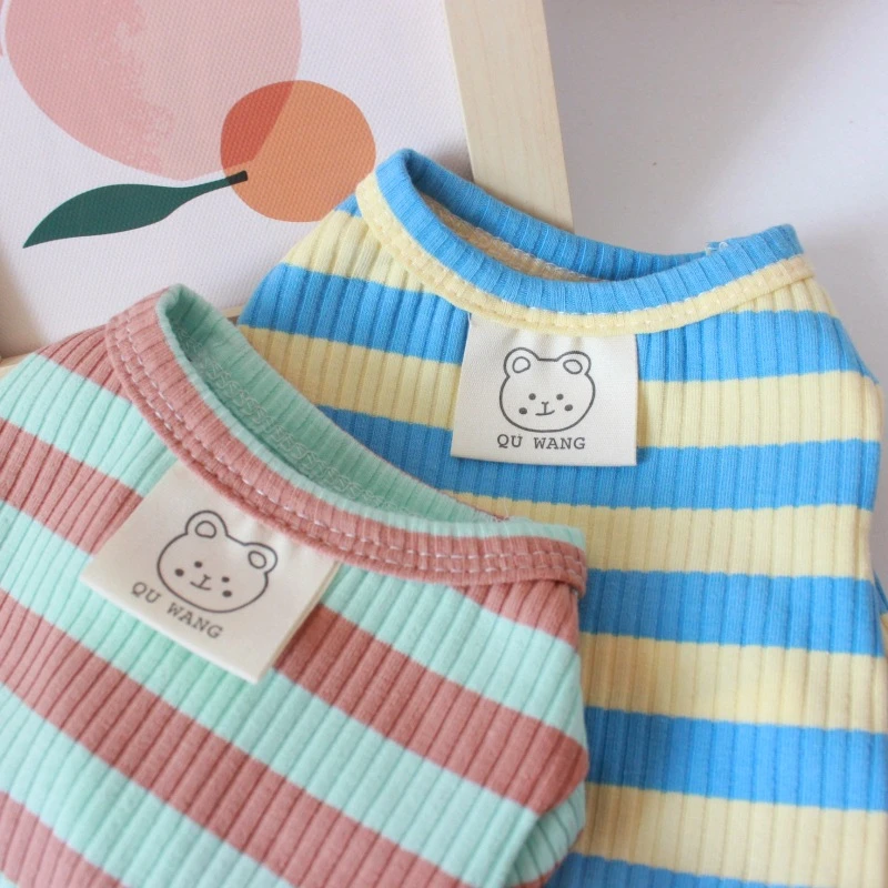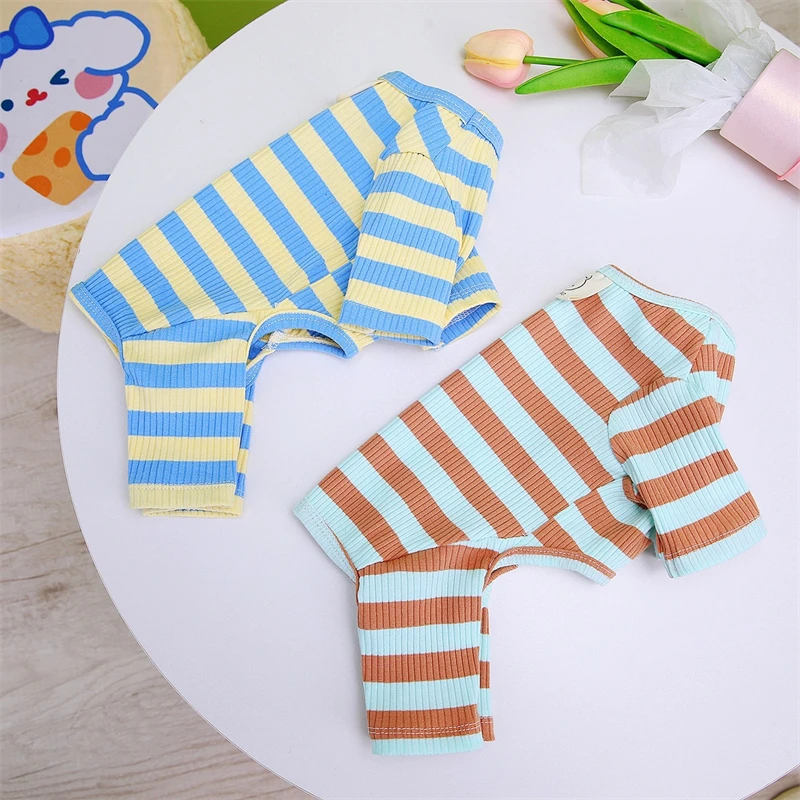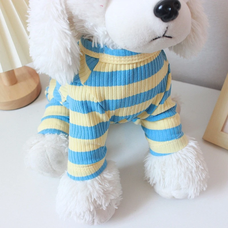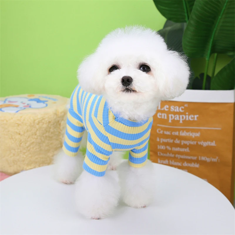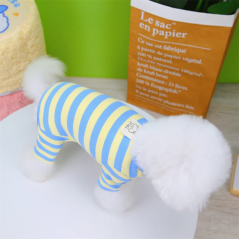 Ropa cálida de invierno para mascotas, camiseta inferior a rayas para perros pequeños y medianos, ropa para gatos, chalecos para Chihuahua, monos con estampado de dibujos animados para cachorros