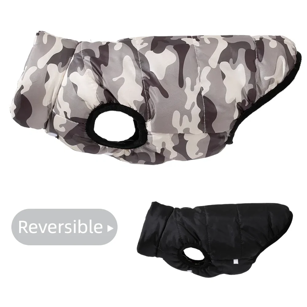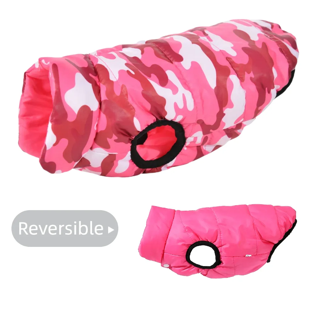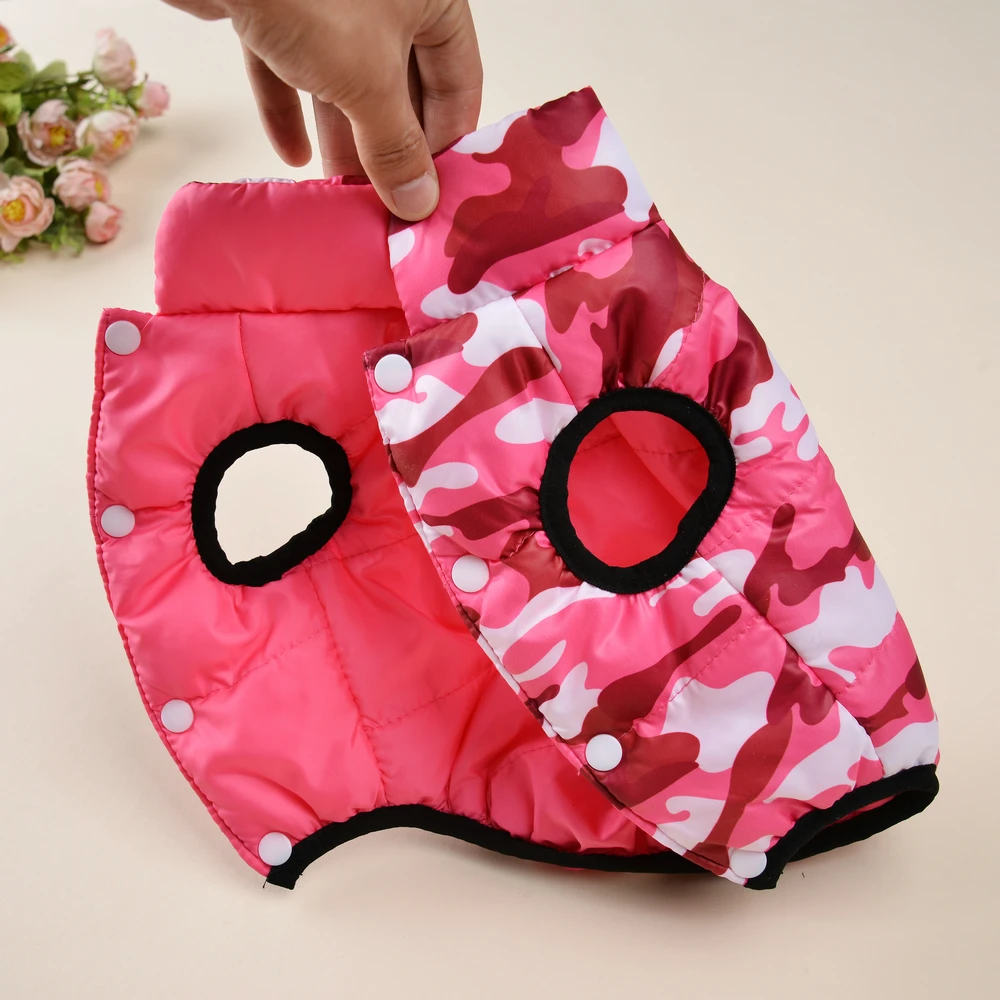 Ropa cálida de invierno para mascotas para perros pequeños y medianos, chaleco Reversible con estampado de camuflaje para mascotas, abrigo con correa, chaqueta Yorkshire para mascotas