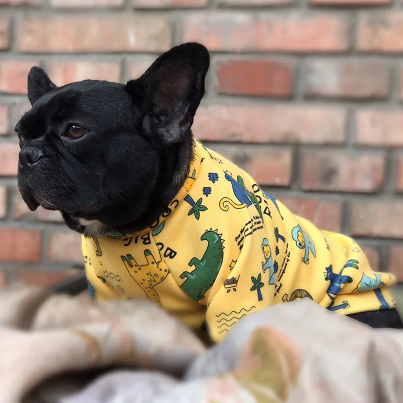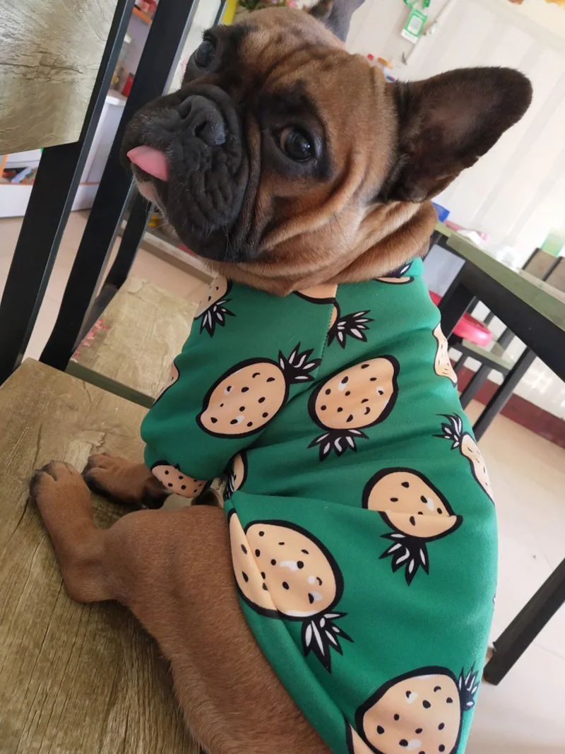 Bulldog francés de 7 meses, la talla XL le queda perfecta.