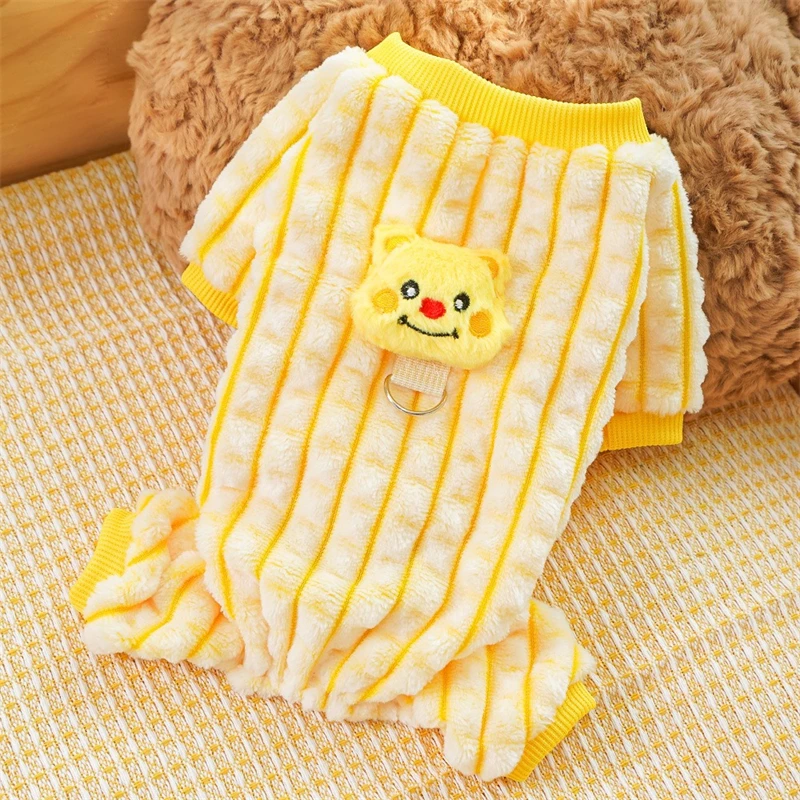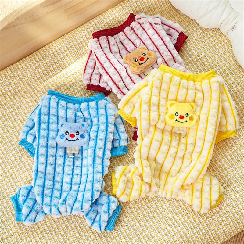 Ropa cálida de invierno con patrón de gofres de oso de dibujos animados para perros de compañía, mono de Bulldog Francés de cuatro patas, monos para perros de Año Nuevo York