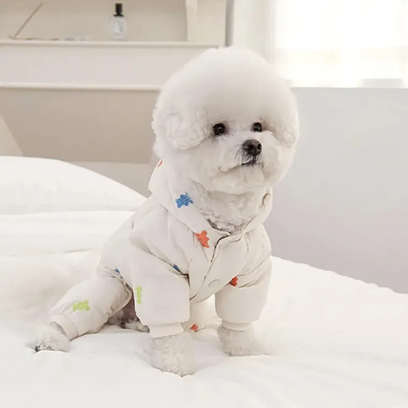 Ropa cálida de invierno para perro, abrigo de algodón con estampado de cuatro patas completo de oso, traje de plumón Schnauzer, chaqueta para cachorro