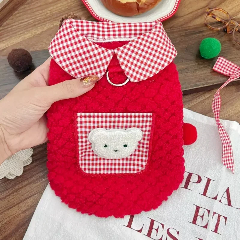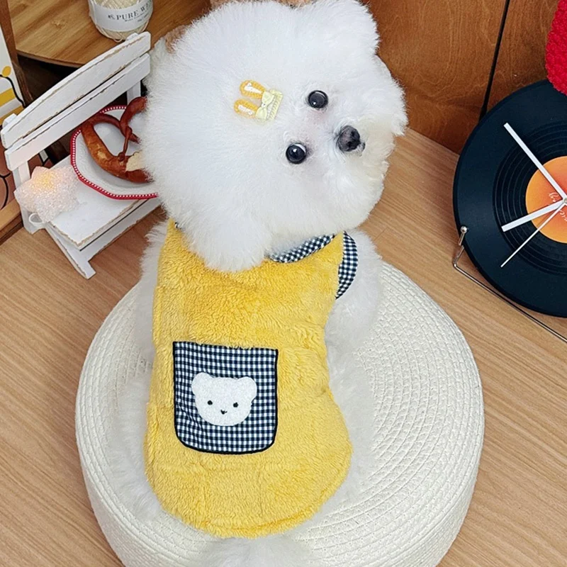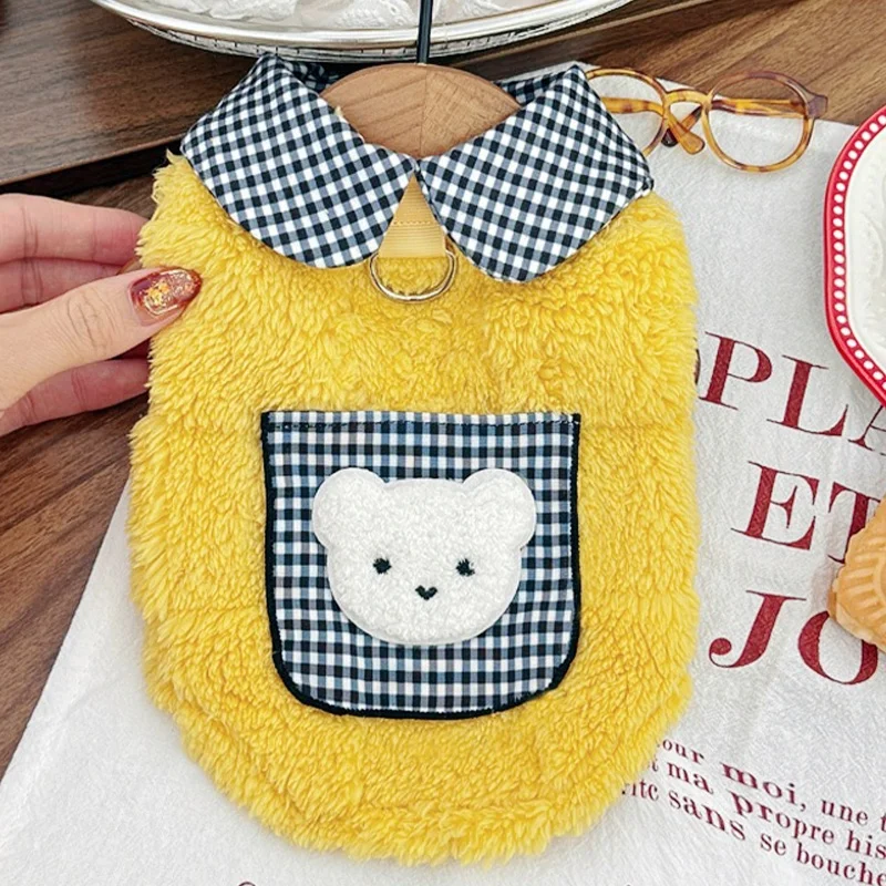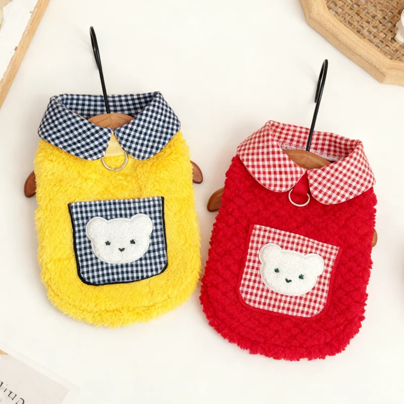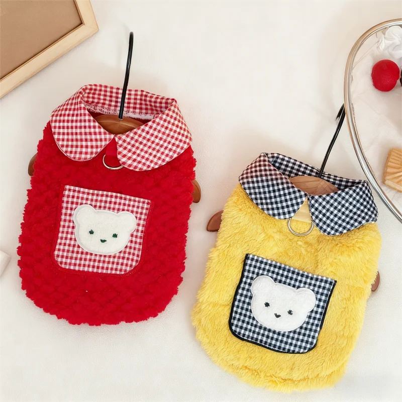 Ropa de felpa cálida de invierno para perros, chaleco a cuadros de lujo para perros, sudadera con capucha, suéter suave y bonito para cachorros, jersey con estampado de oso para gatos, chaleco para mascotas, suministros para perros