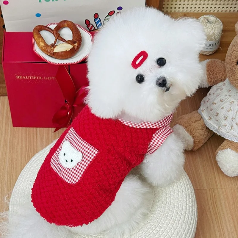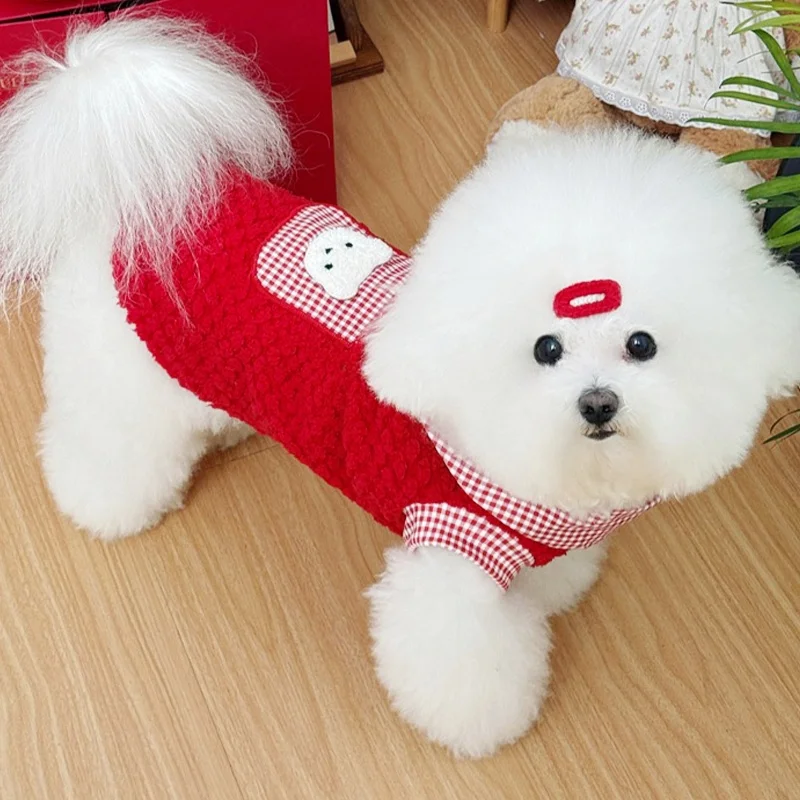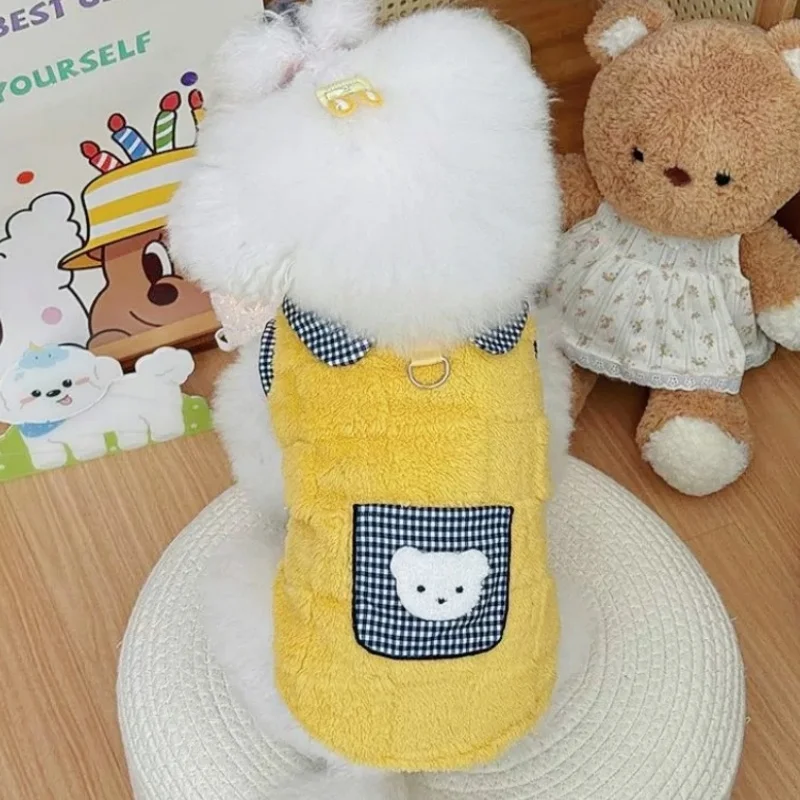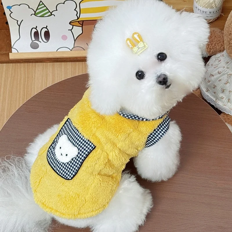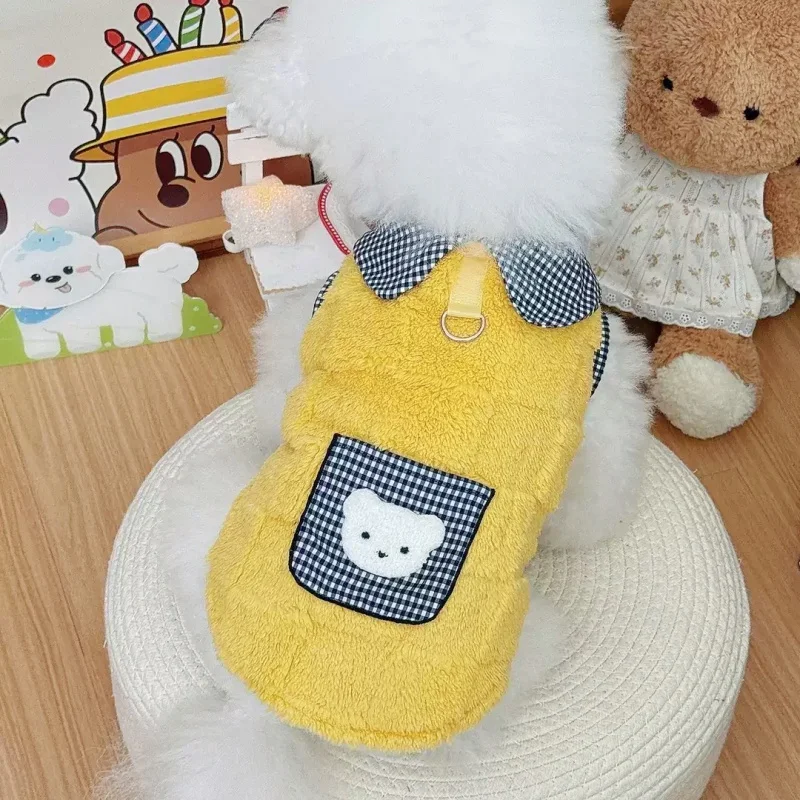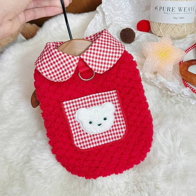 Ropa de felpa cálida de invierno para perros, chaleco a cuadros de lujo para perros, sudadera con capucha, suéter suave y bonito para cachorros, jersey con estampado de oso para gatos, chaleco para mascotas, suministros para perros