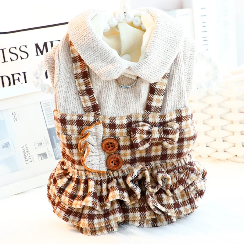 Ropa cálida de invierno para perros pequeños, falda escalonada con volantes a cuadros de princesa, ropa bonita para mascotas para Schnauzer Chihuahua