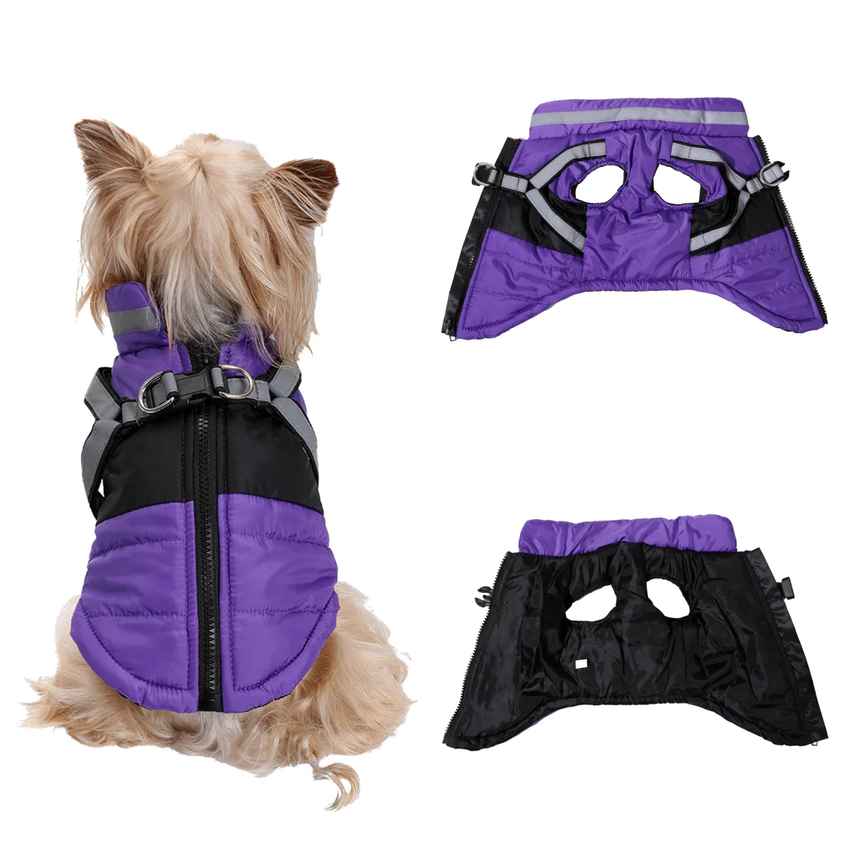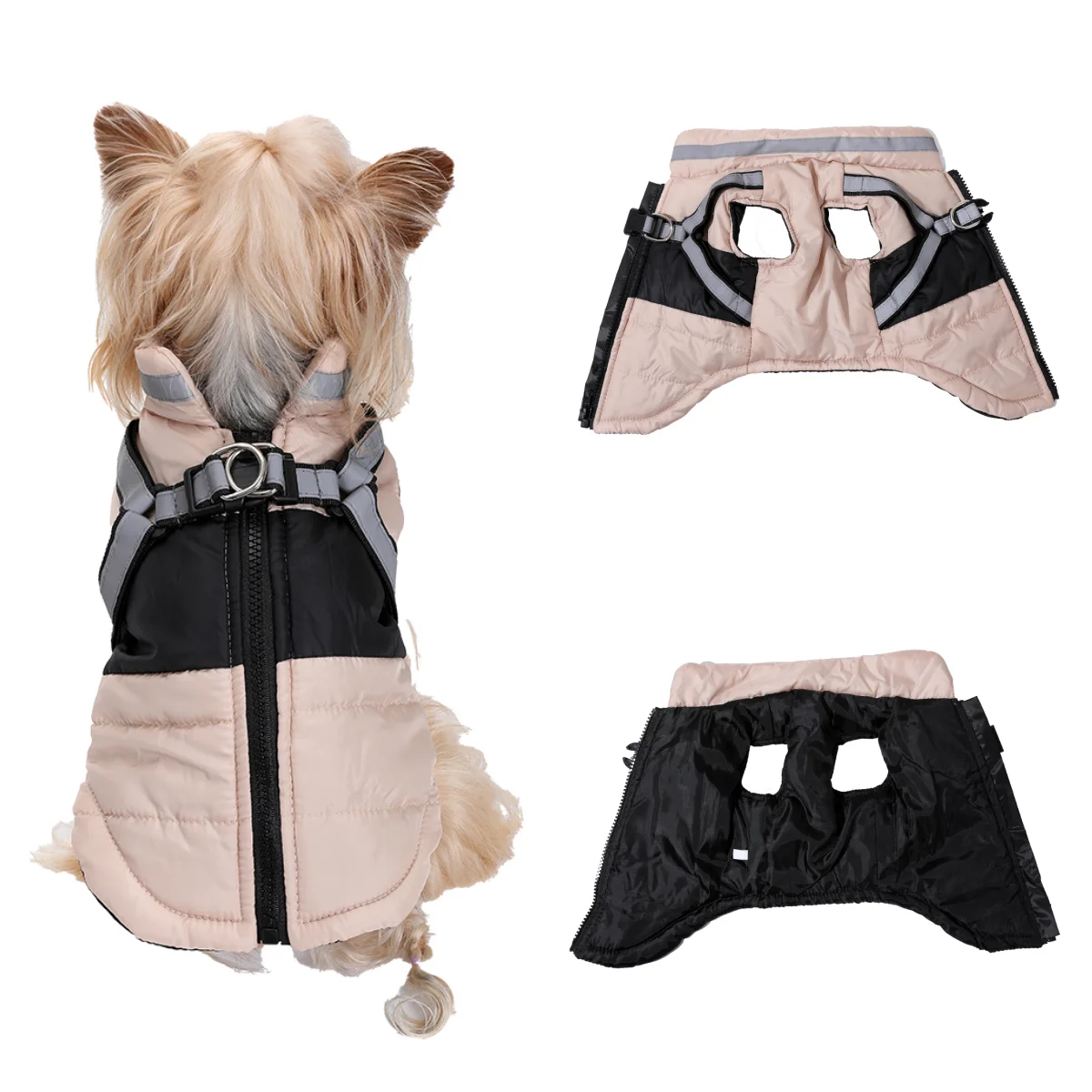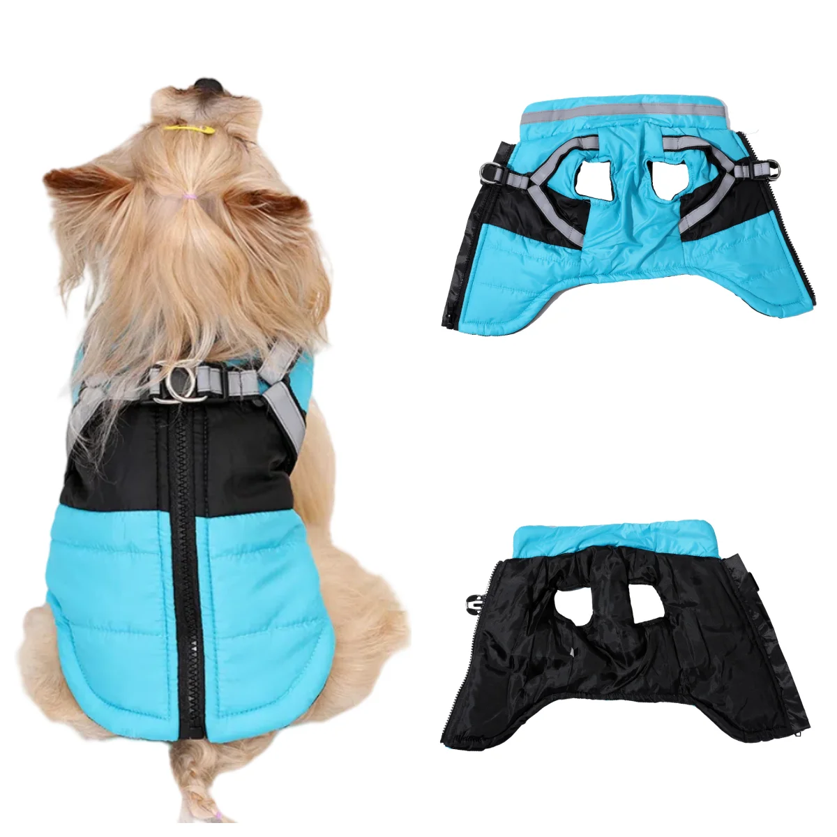 Ropa cálida de invierno para perros pequeños y medianos, chaqueta para mascotas a prueba de viento con arnés reflectante, abrigo Yorkshire Chihuahua para exteriores
