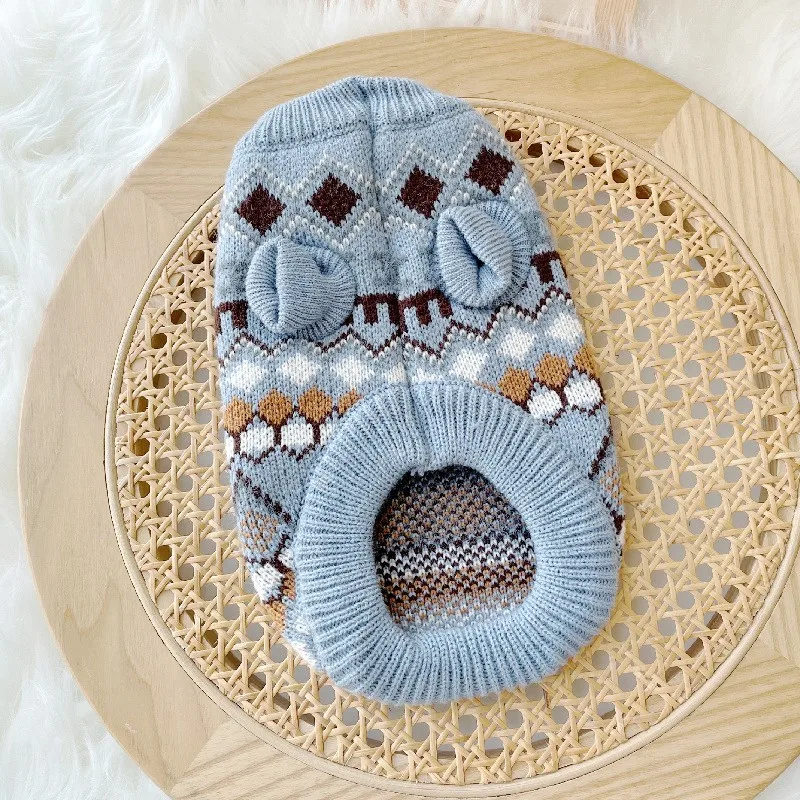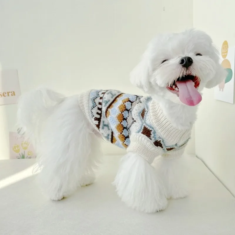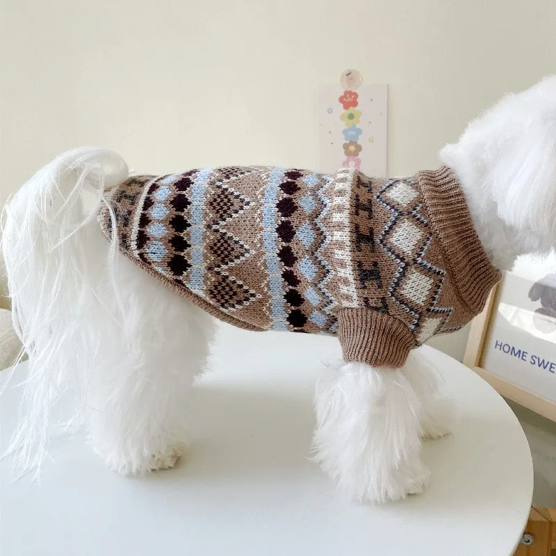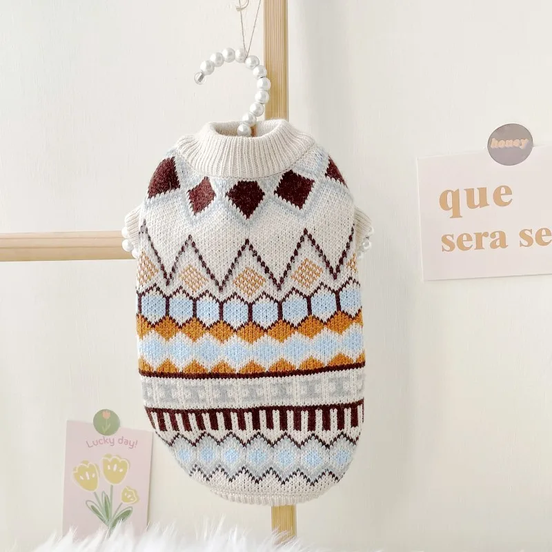 Ropa cálida de invierno para perros, suéter tejido a la moda para perros, disfraces con estampado bonito para cachorros, suéter suave con cuello alto para gatos, ropa para gatitos