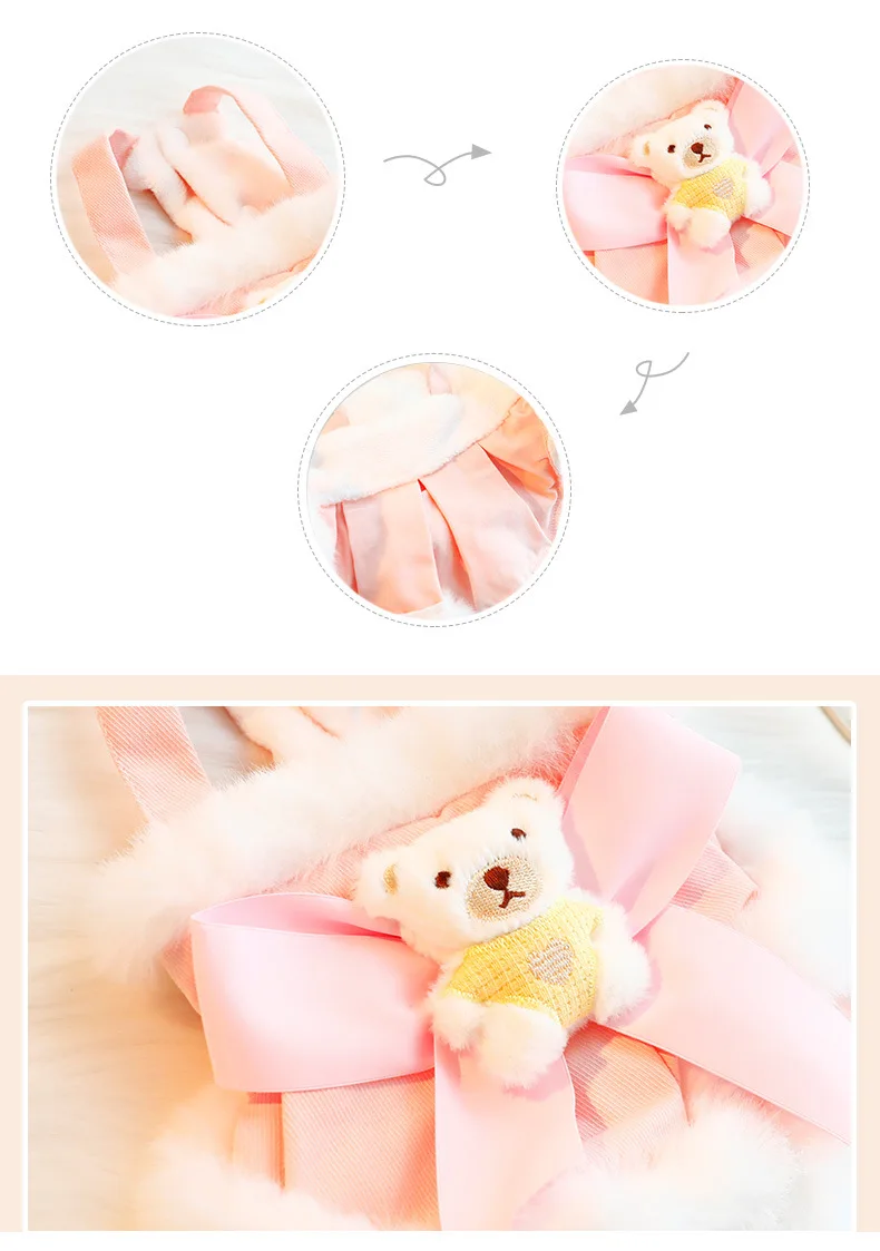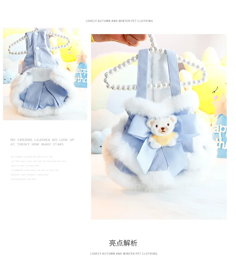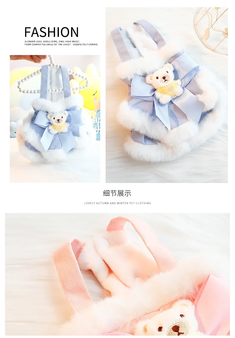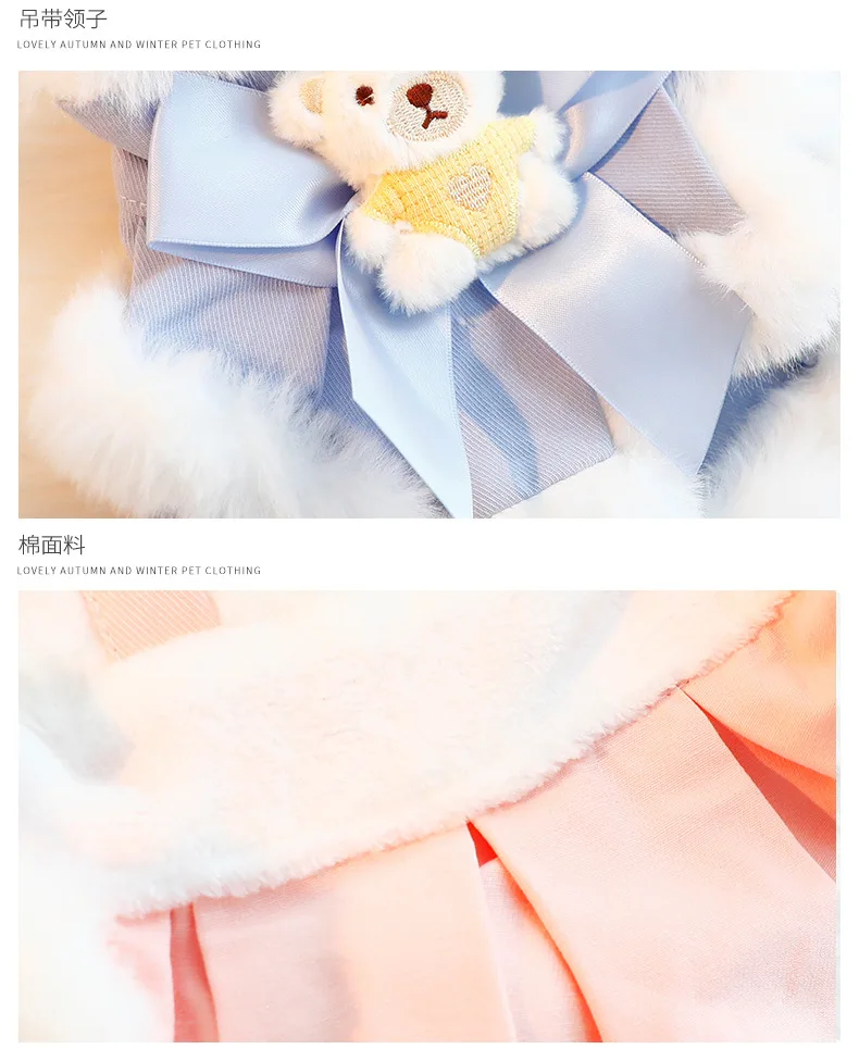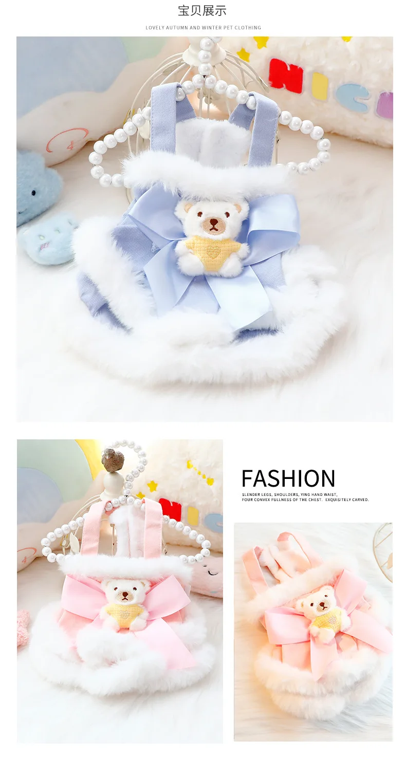 Ropa cálida de invierno para perros, vestido de tirantes de encaje de felpa, falda de oso bonita para perros pequeños, ropa de moda para perros
