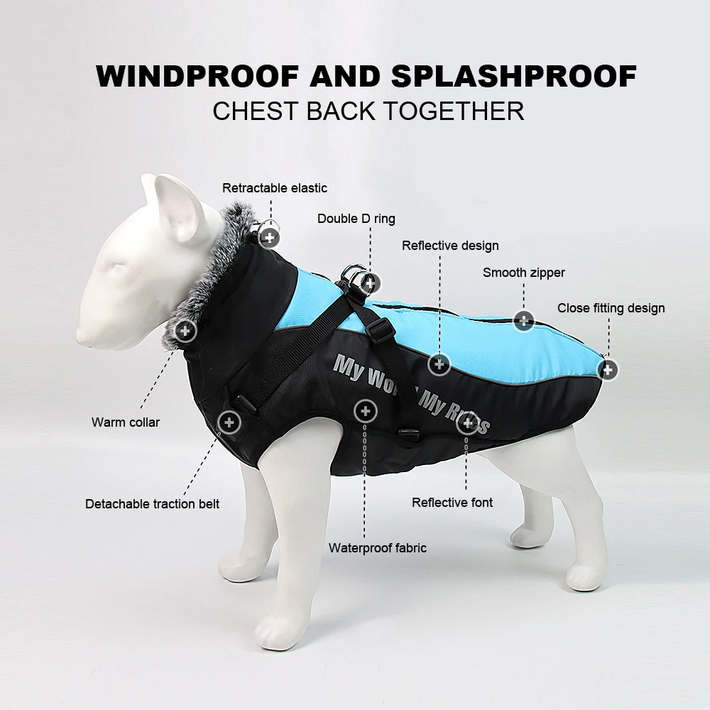 Warm Pet Clothes Winter Thicken Dog Coat Harness For Medium Large Dogs French Bulldog Big Dog Clothing Jacket Vest Waterproof