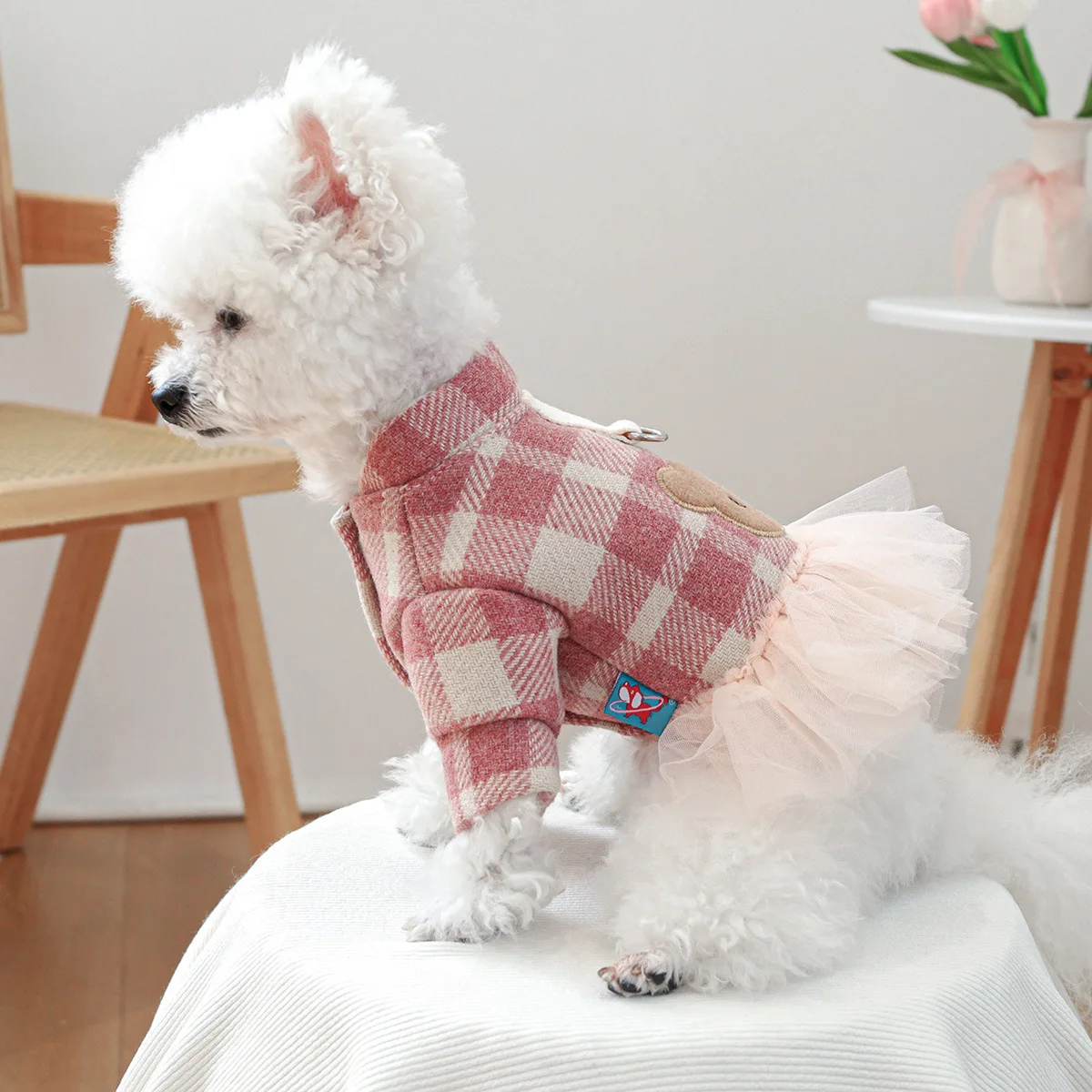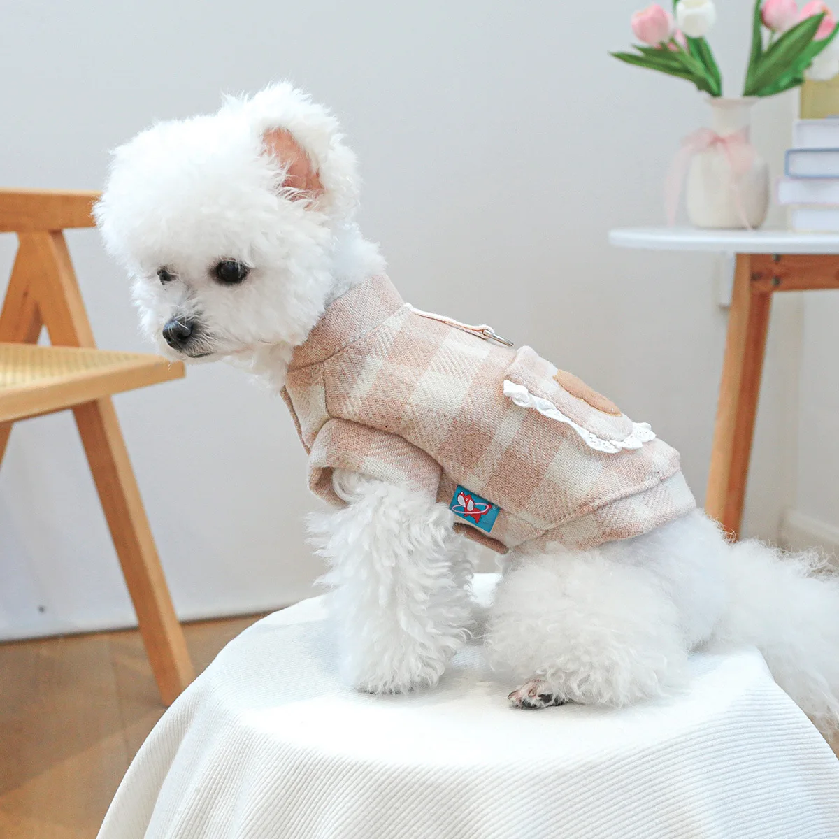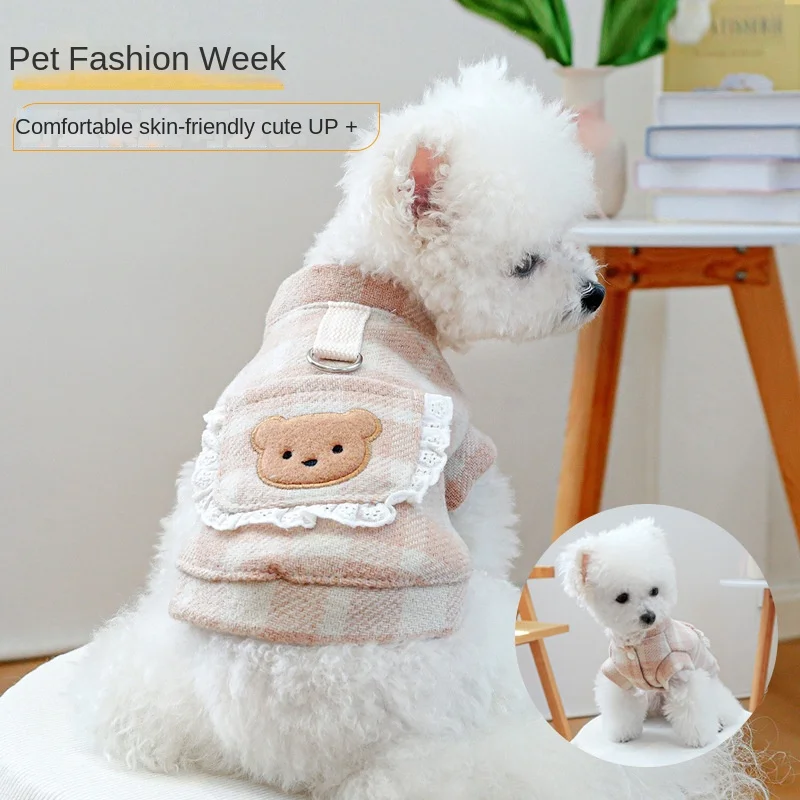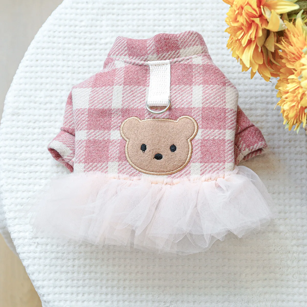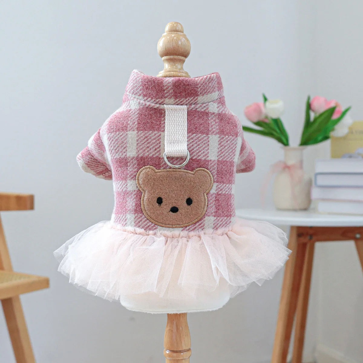 Ropa cálida para mascotas, ropa para cachorros, perros, gatos, otoño e invierno, lindo oso rosa a cuadros, ropa para parejas