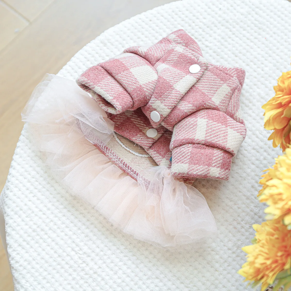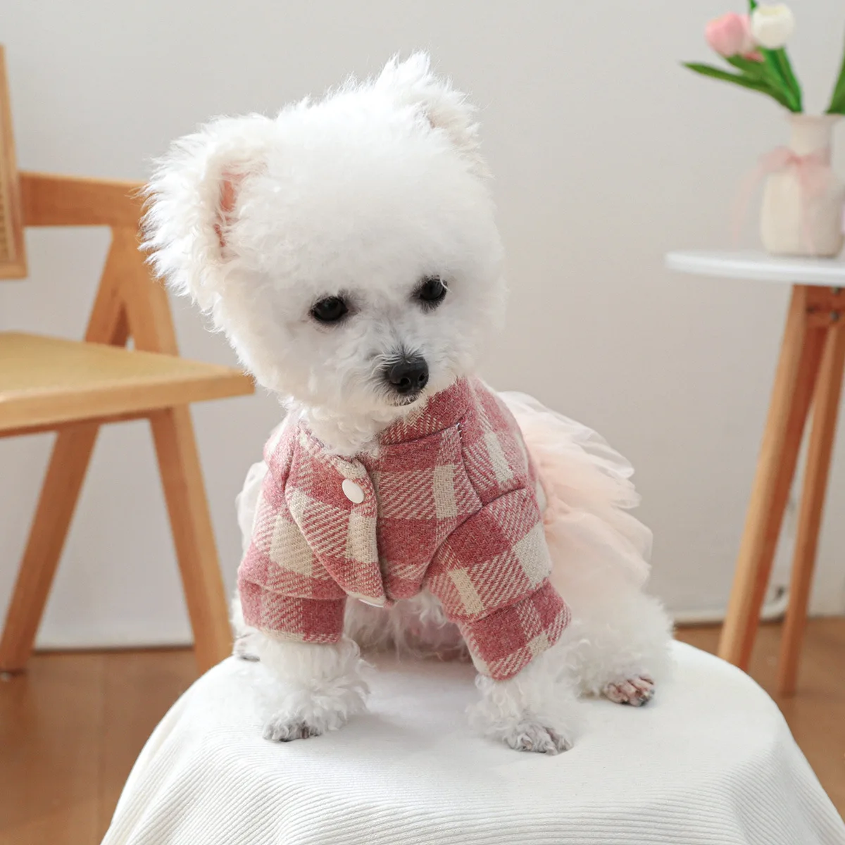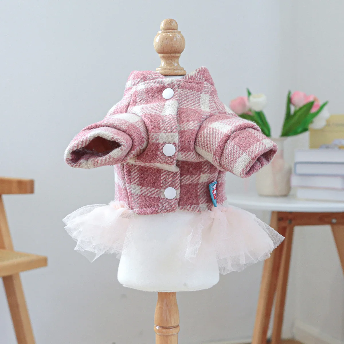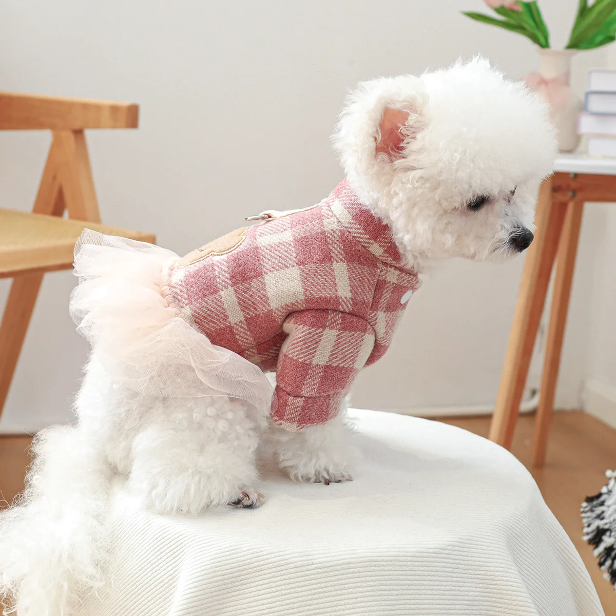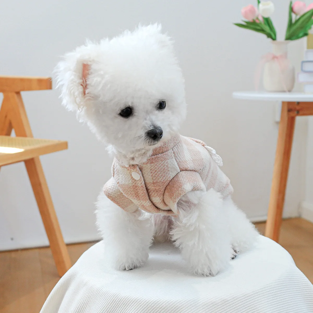 Ropa cálida para mascotas, ropa para cachorros, perros, gatos, otoño e invierno, lindo oso rosa a cuadros, ropa para parejas