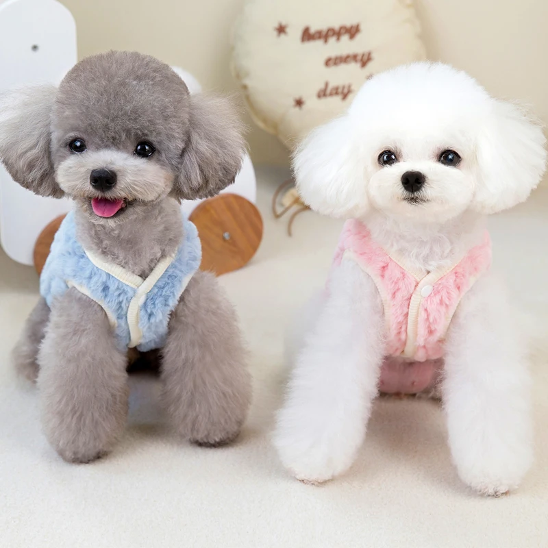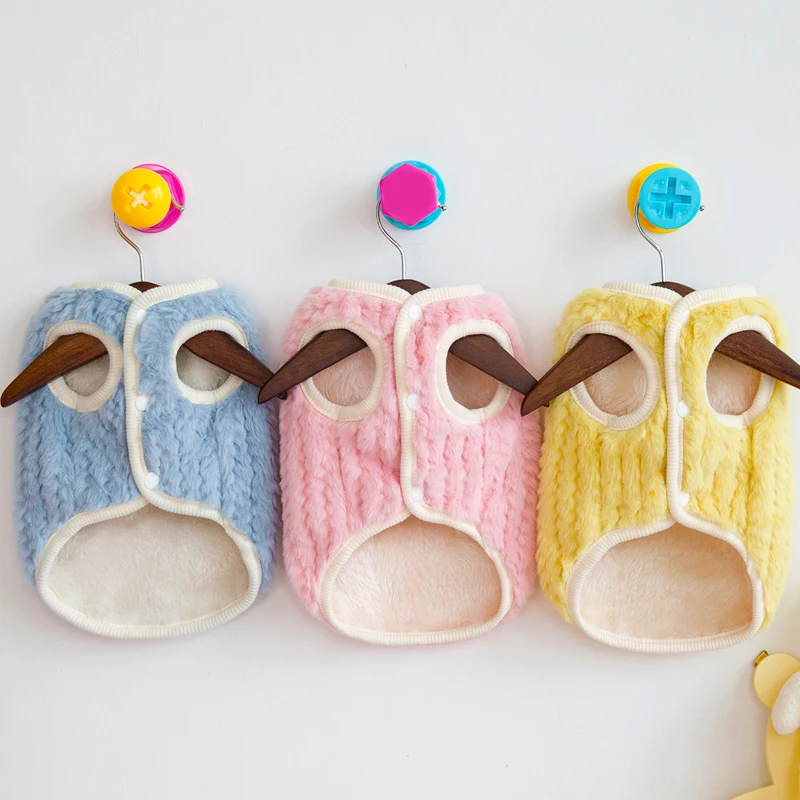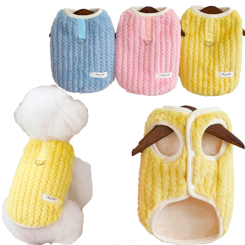 Ropa cálida para mascotas con tiras, chaleco para perro de lana azul, rosa y amarillo, chaqueta de invierno sin mangas, abrigo para cachorros, chaqueta para perros pequeños Yorks