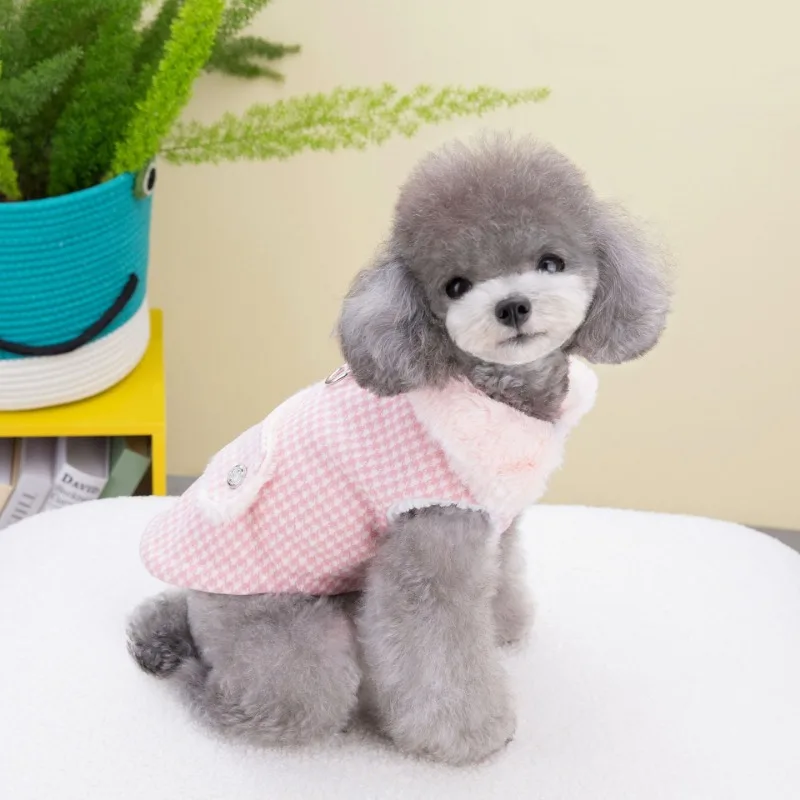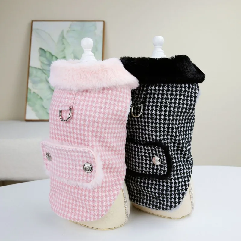 Ropa cálida de moda Ins para perros, abrigo de pata de gallo para perros, chaqueta térmica gruesa con entramado, ropa de diseñador para perros, disfraz para perros