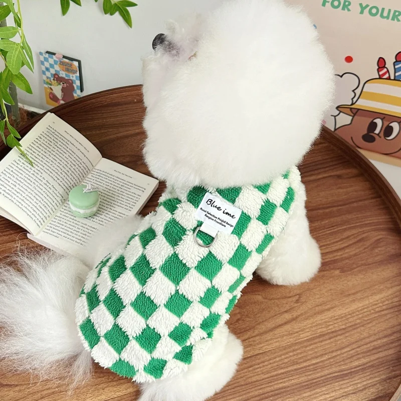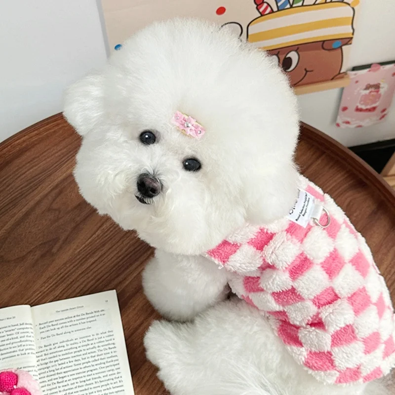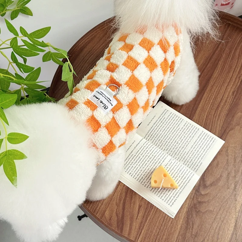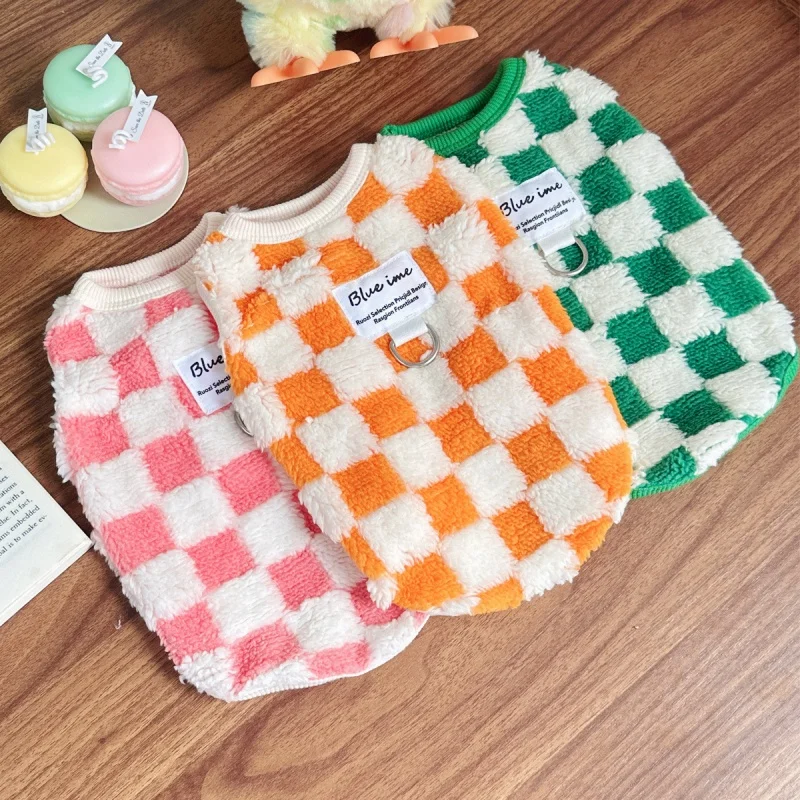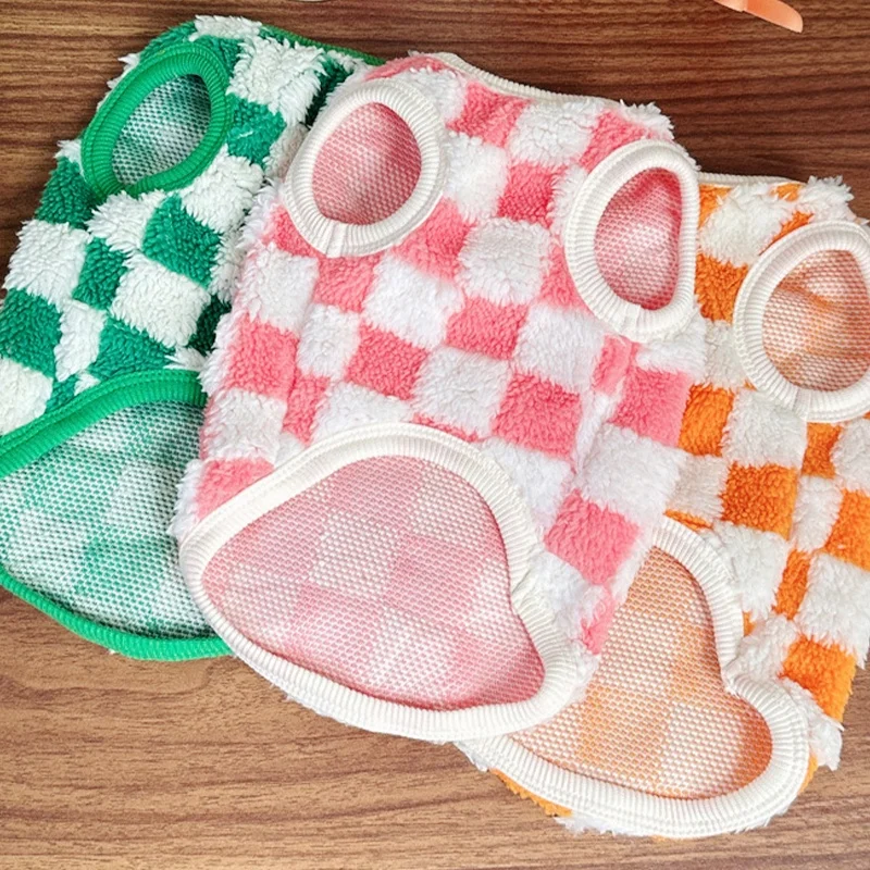 Ropa cálida de otoño para perros, chaleco bonito a cuadros para perros, sudaderas con capucha de felpa a la moda para cachorros, chaleco sin mangas de gato suave, jerséis para mascotas, ropa para Chihuahua