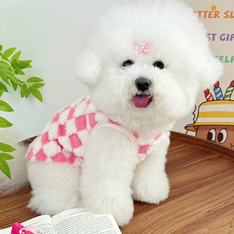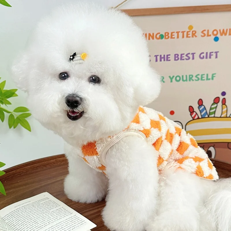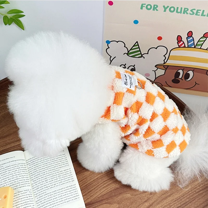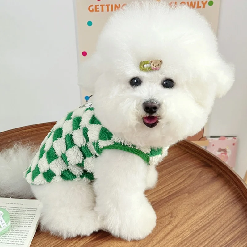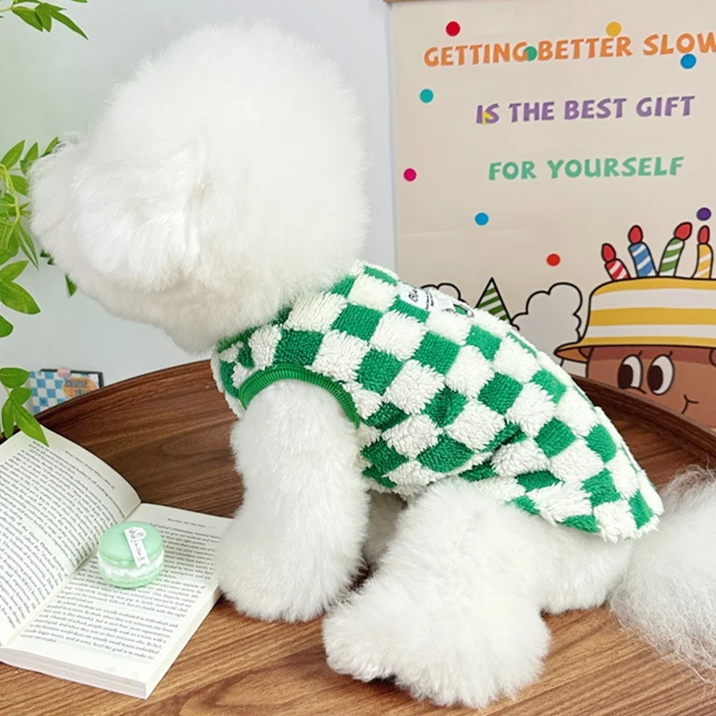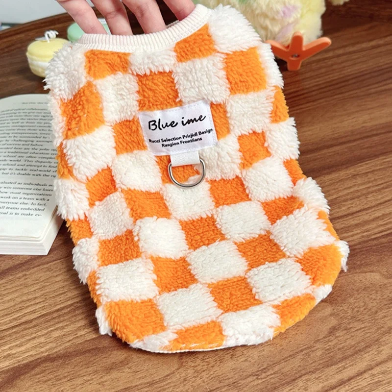 Ropa cálida de otoño para perros, chaleco bonito a cuadros para perros, sudaderas con capucha de felpa a la moda para cachorros, chaleco sin mangas de gato suave, jerséis para mascotas, ropa para Chihuahua