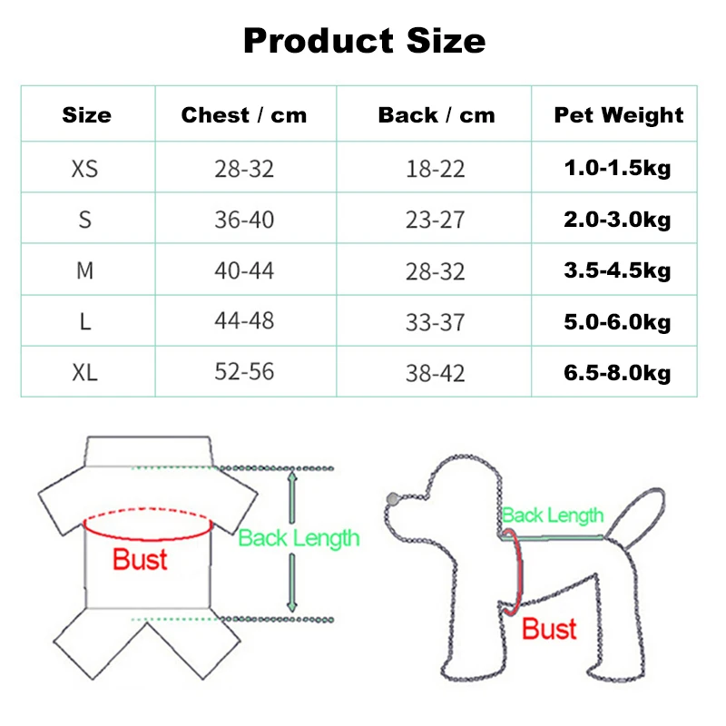6. El paquete incluye: 1 x ropa para perros de 1/2 ".