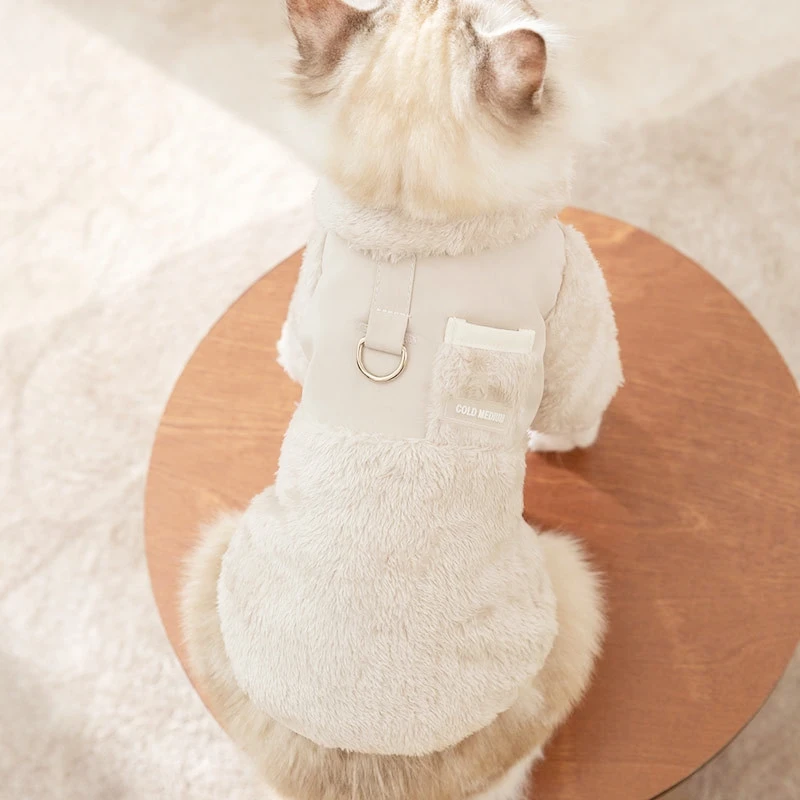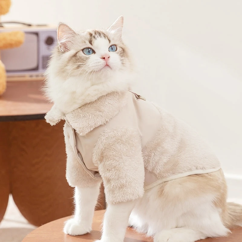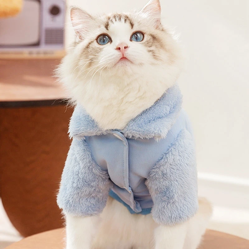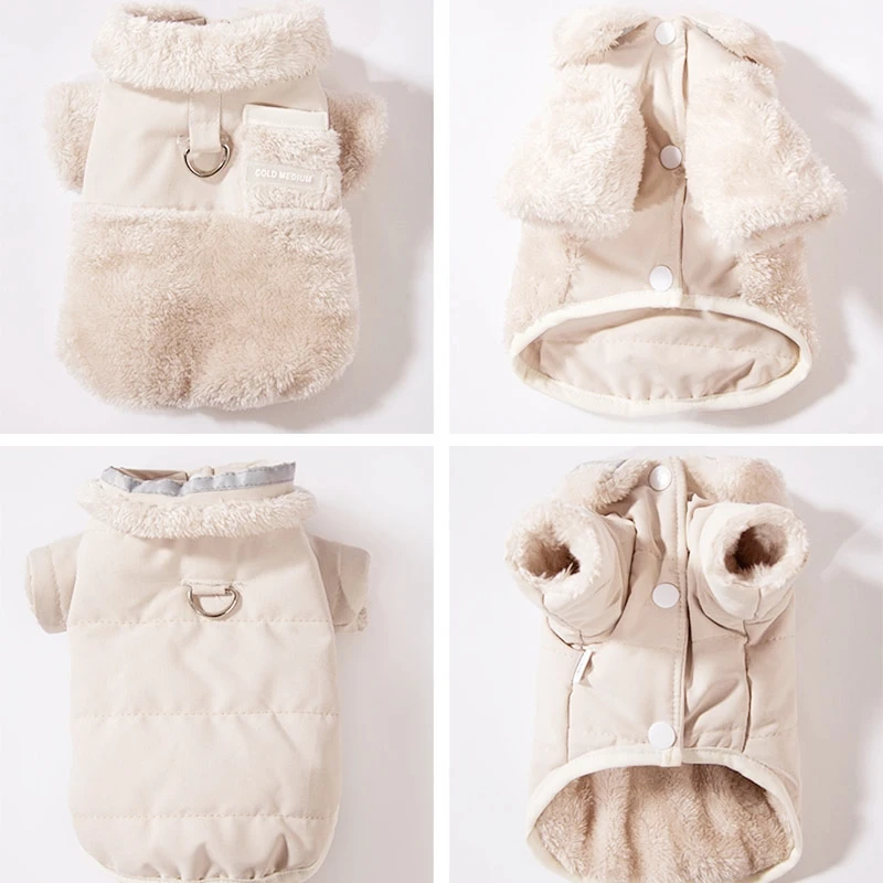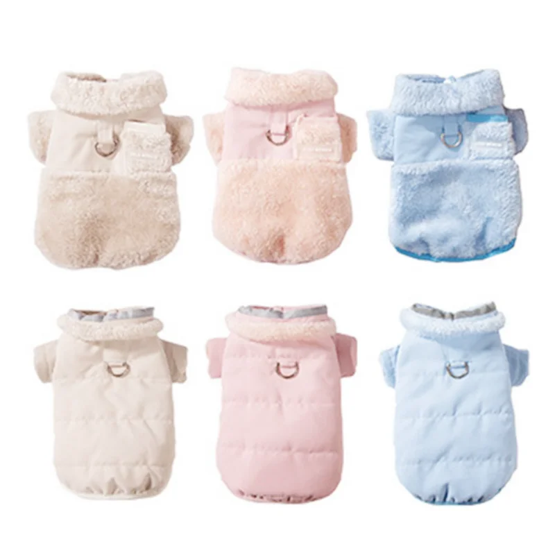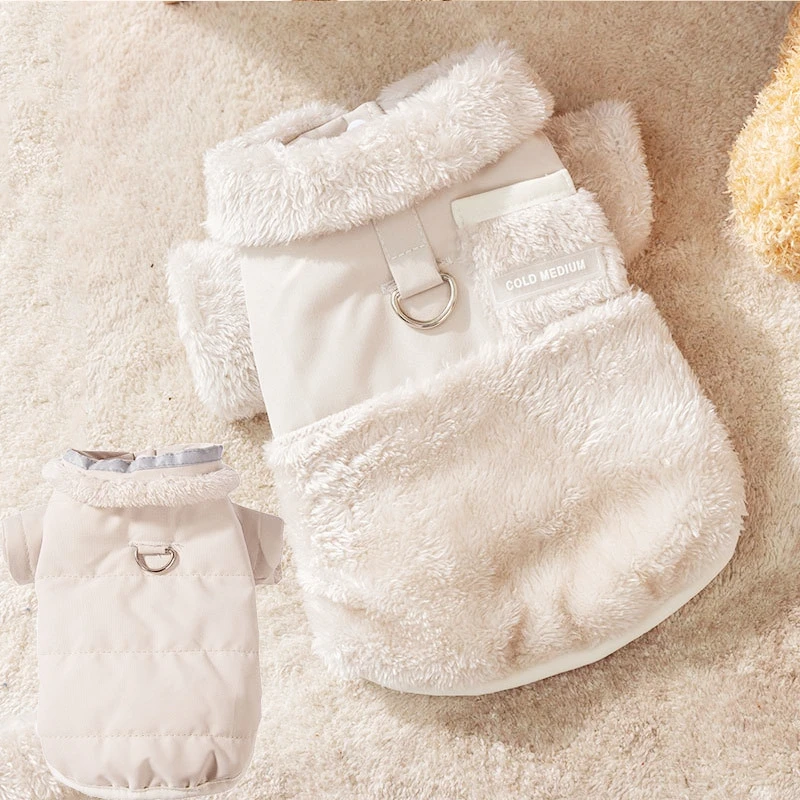 Ropa cálida para perros, abrigo de invierno para perros, chaqueta acolchada de doble cara para cachorros, abrigo liso a la moda para gatos, suministros para mascotas con flecos bichon
