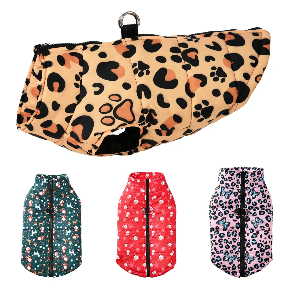 Otoño Invierno ropa cálida para perros pequeños y grandes impermeable a prueba de viento leopardo Navidad mariposa mascota chaqueta Labrador disfraz