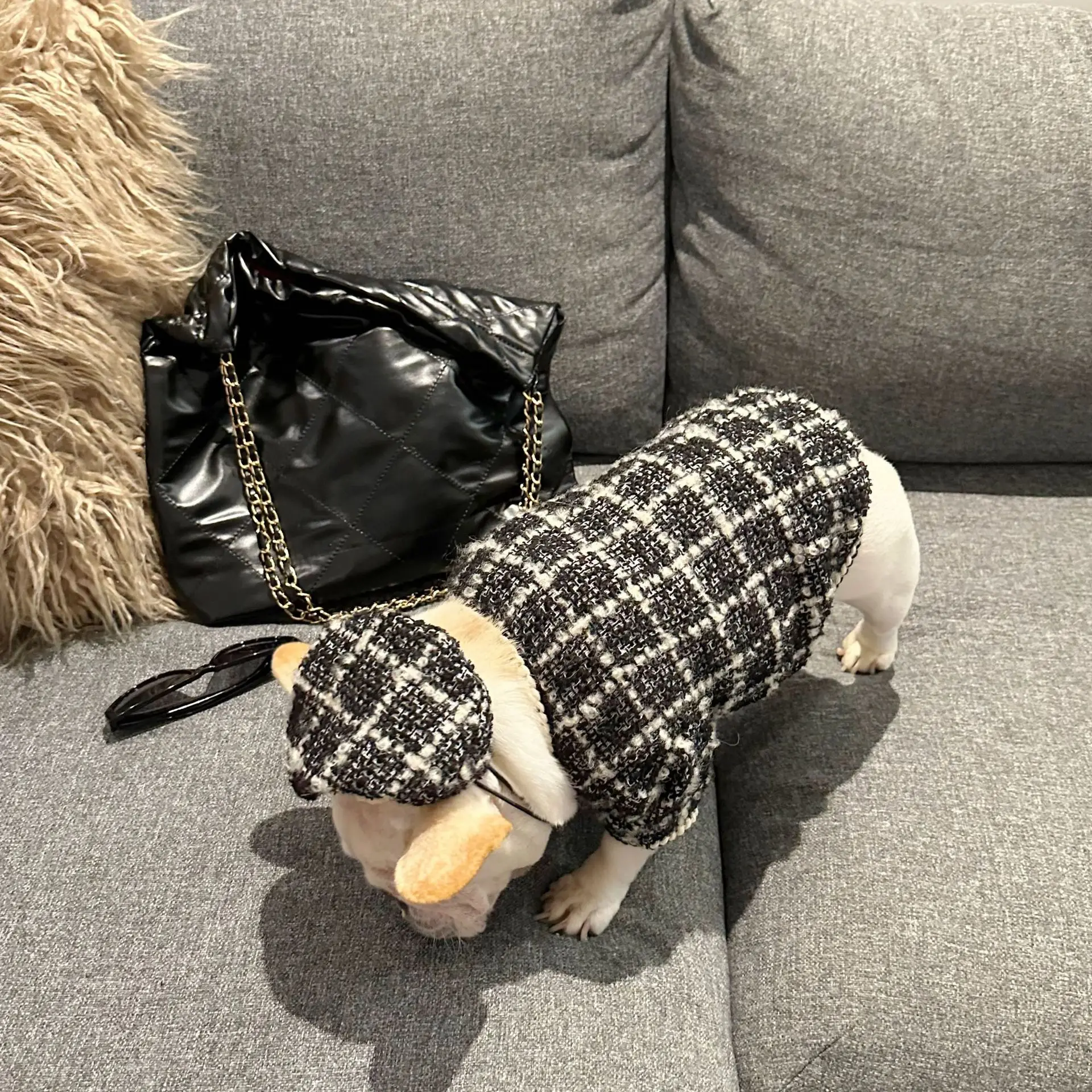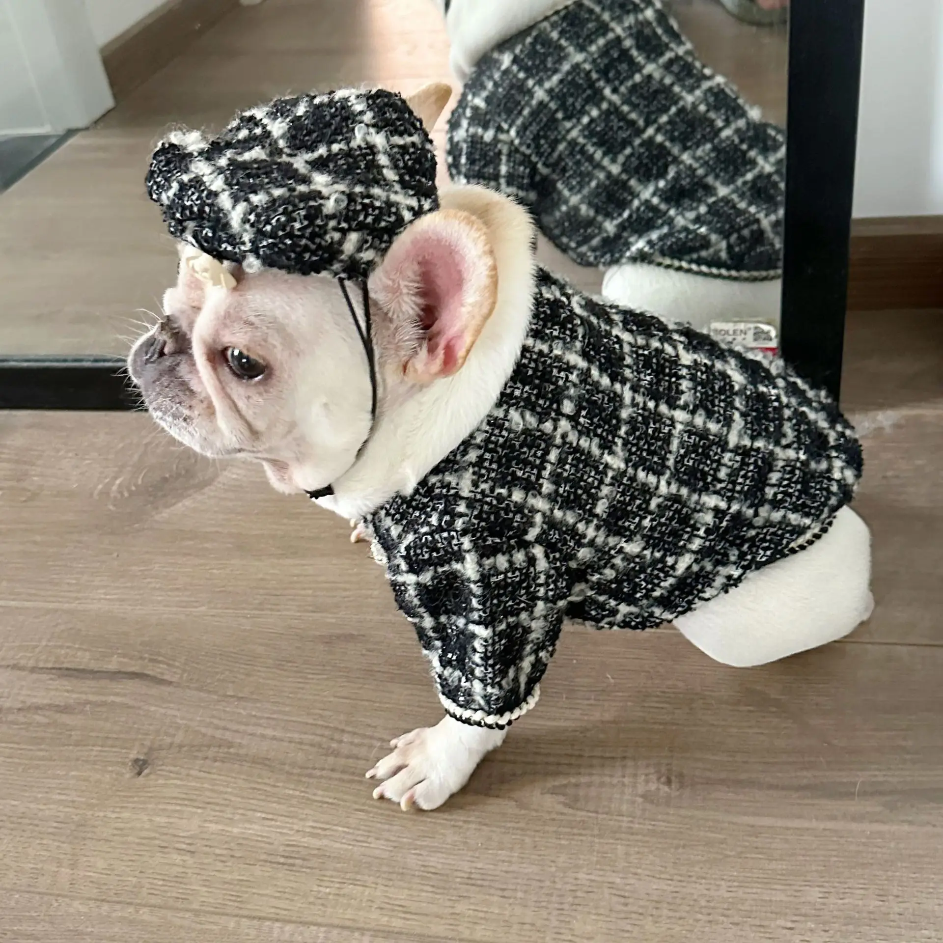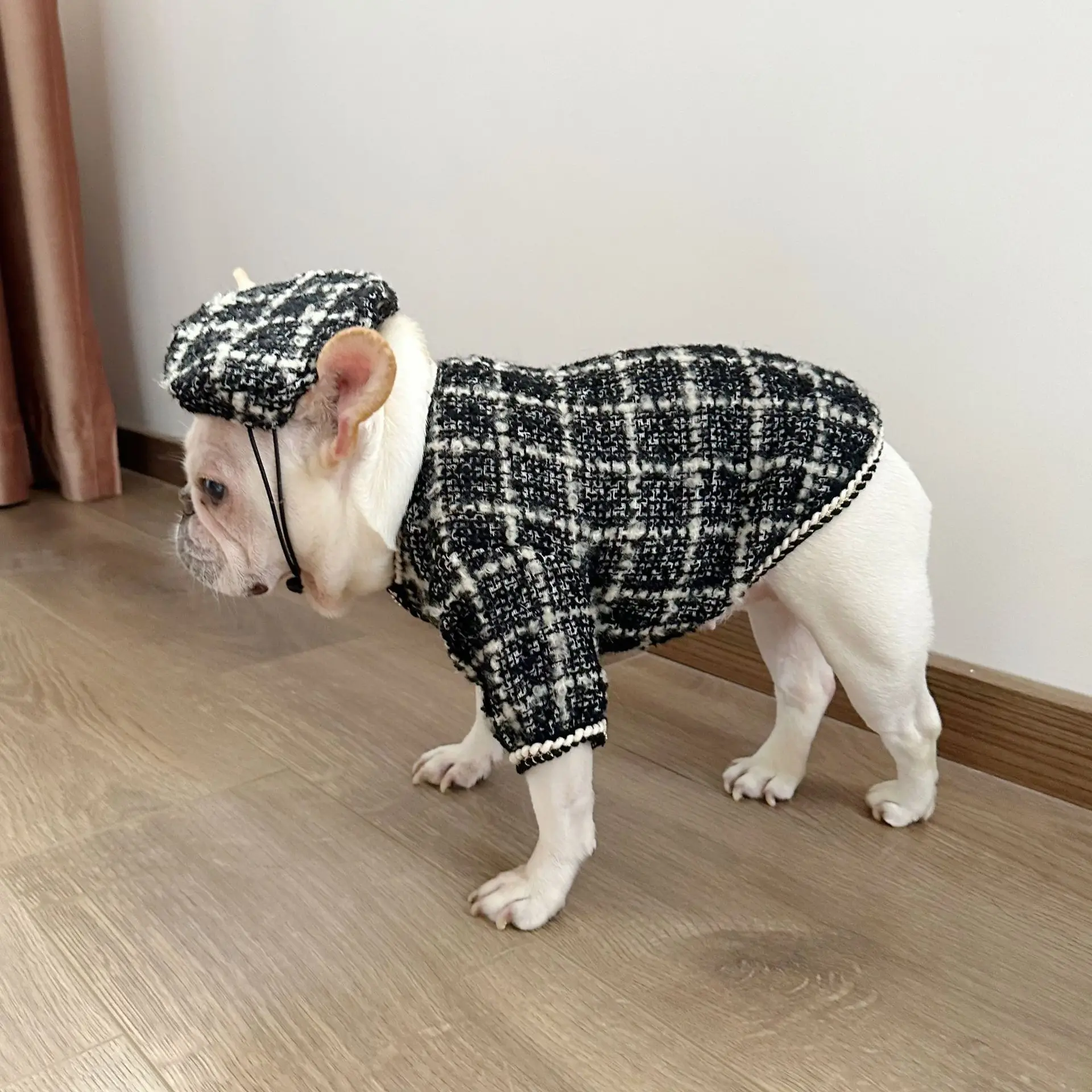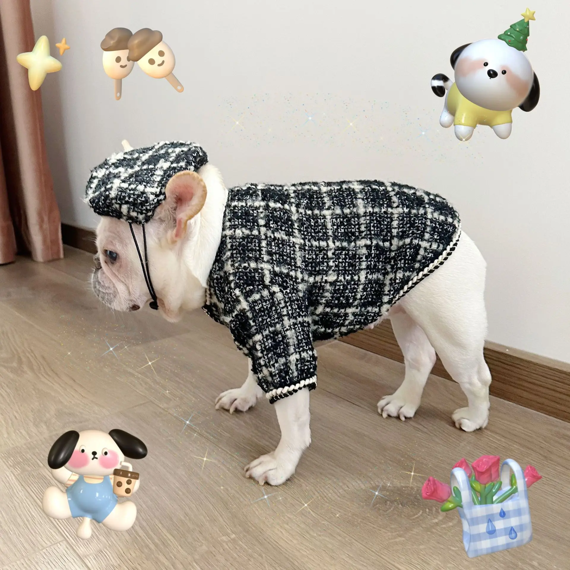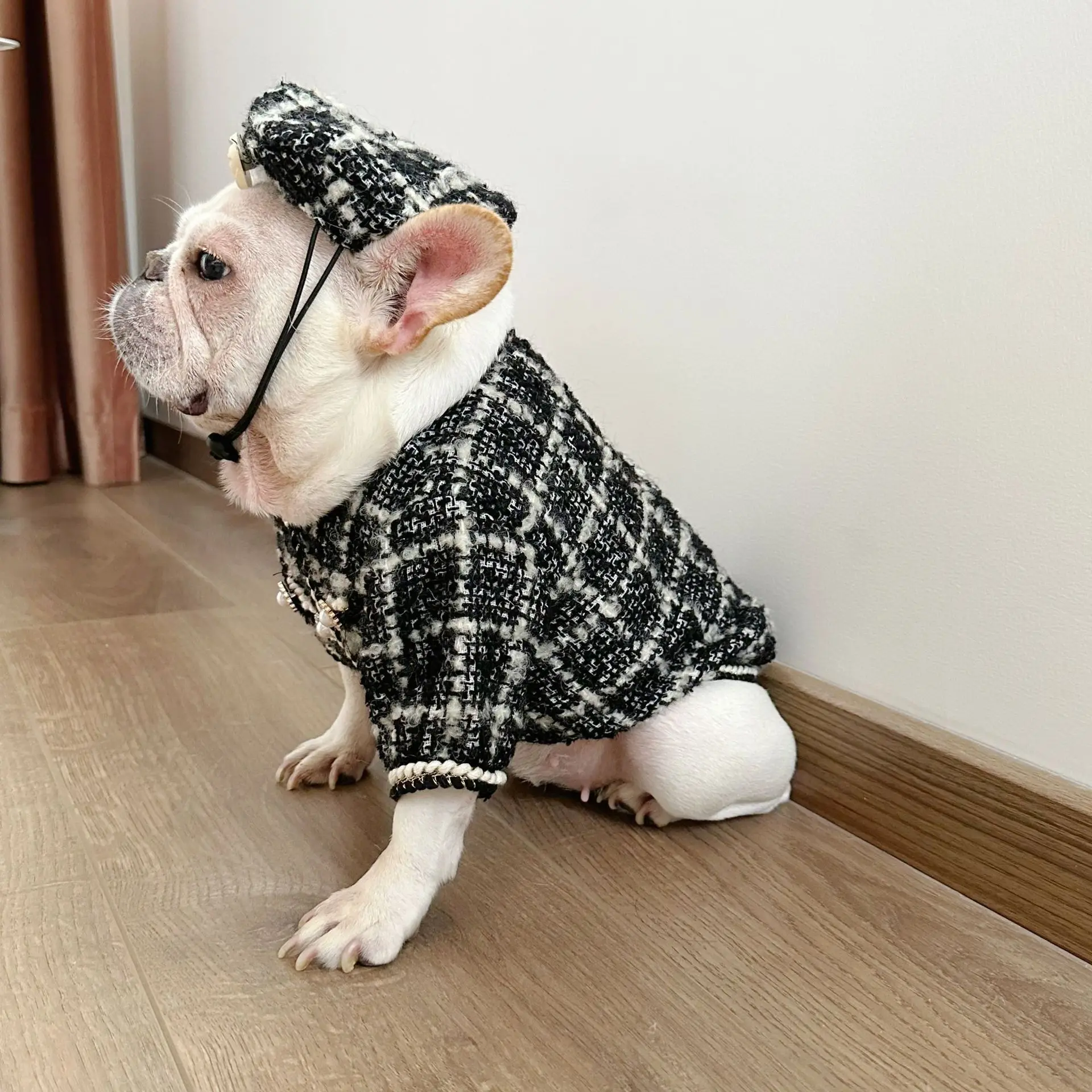 Ropa clásica a cuadros para perro, conjunto de chaqueta y sombrero exquisito para perro, Bulldog Francés, Schnauzer para perro mediano Samll, nuevo, Invierno
