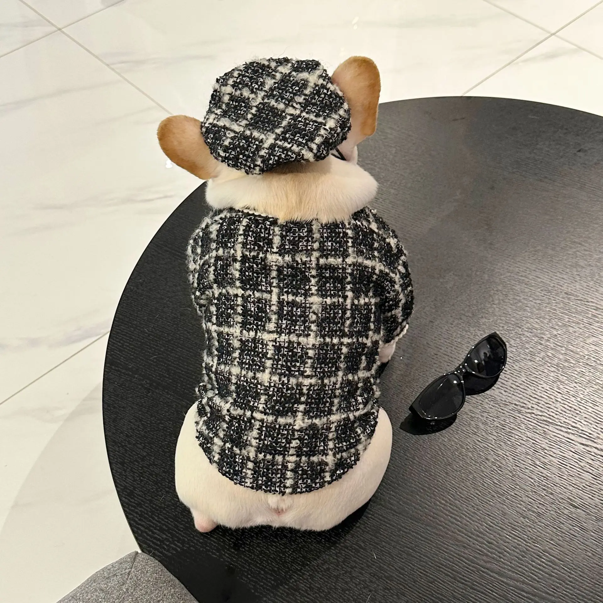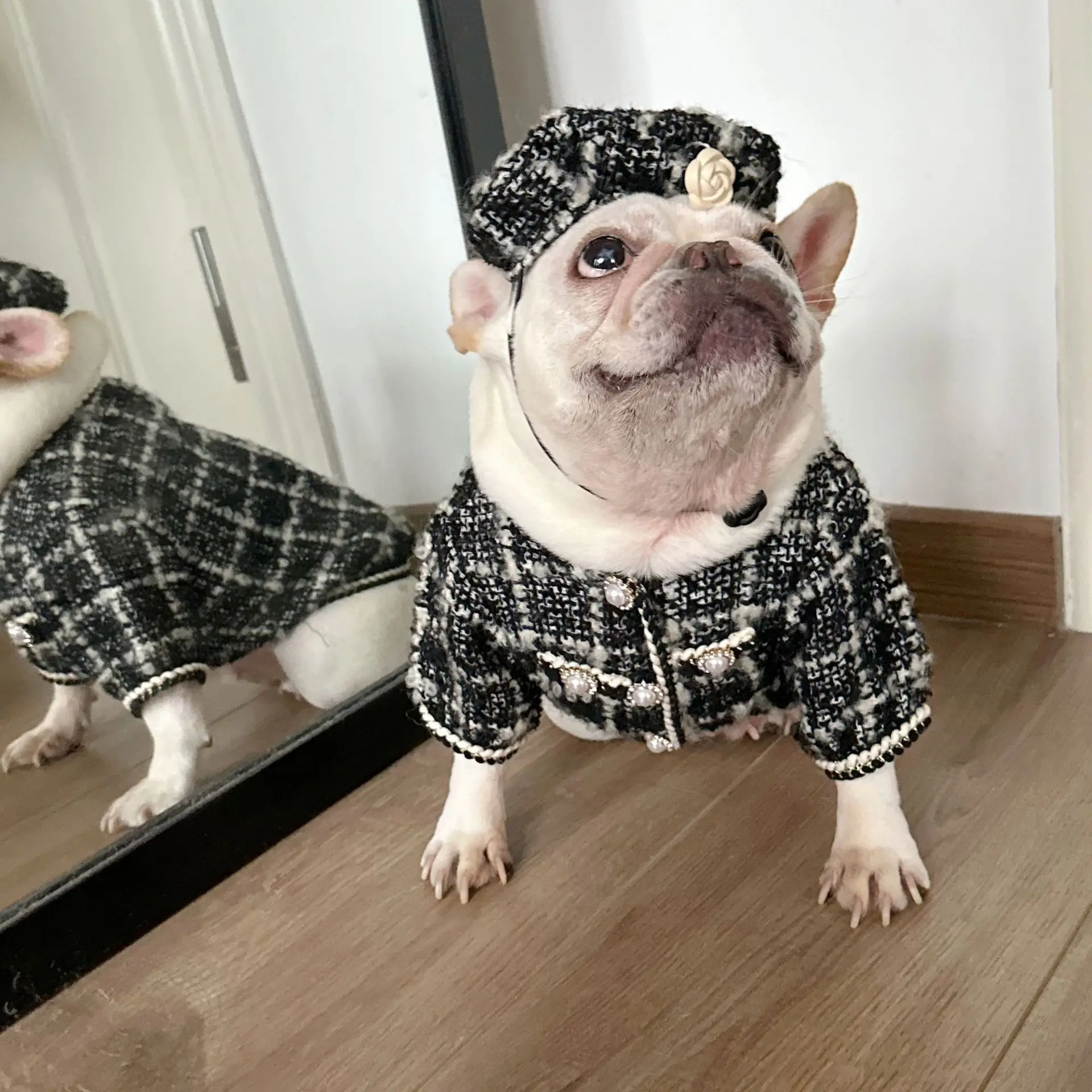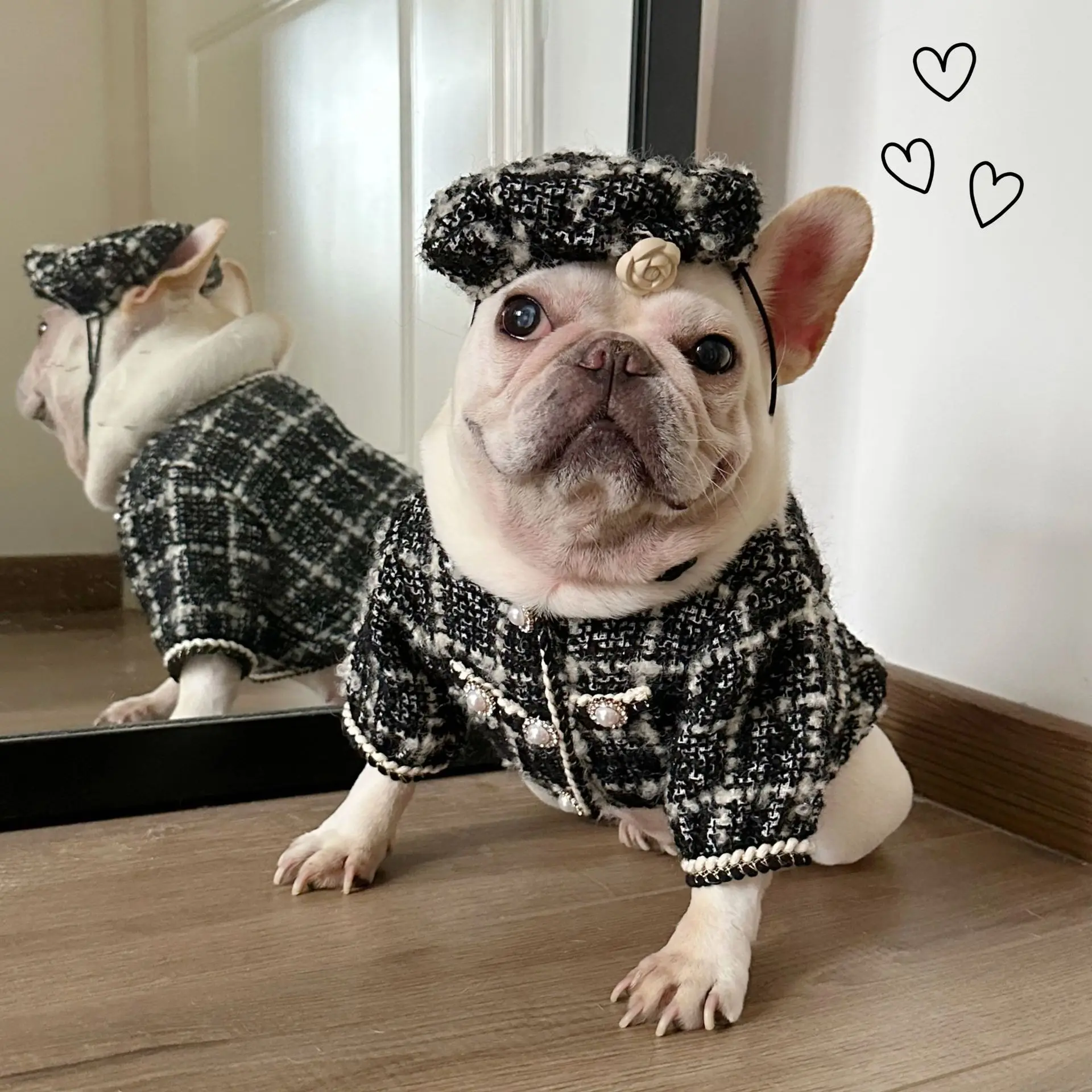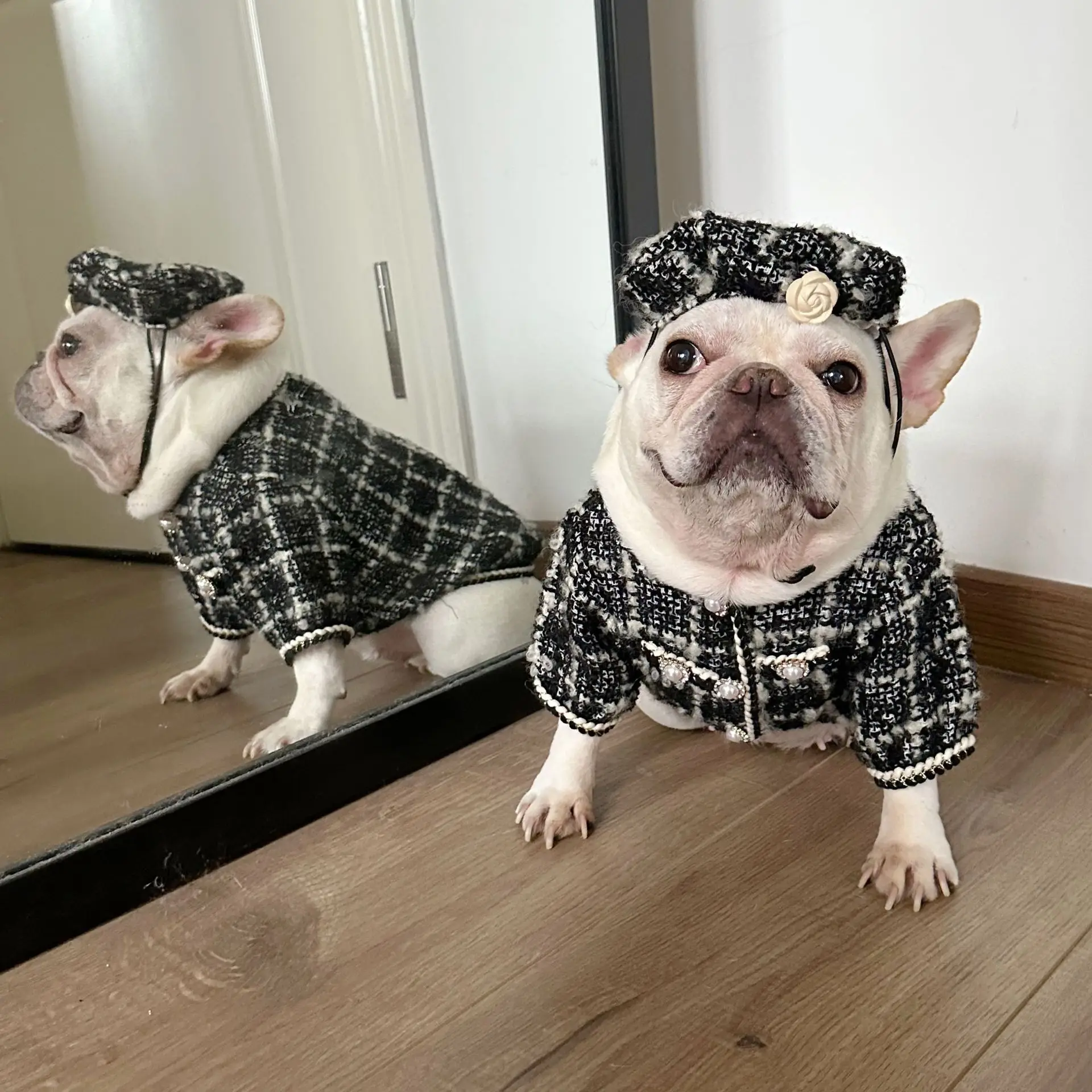 Ropa clásica a cuadros para perro, conjunto de chaqueta y sombrero exquisito para perro, Bulldog Francés, Schnauzer para perro mediano Samll, nuevo, Invierno