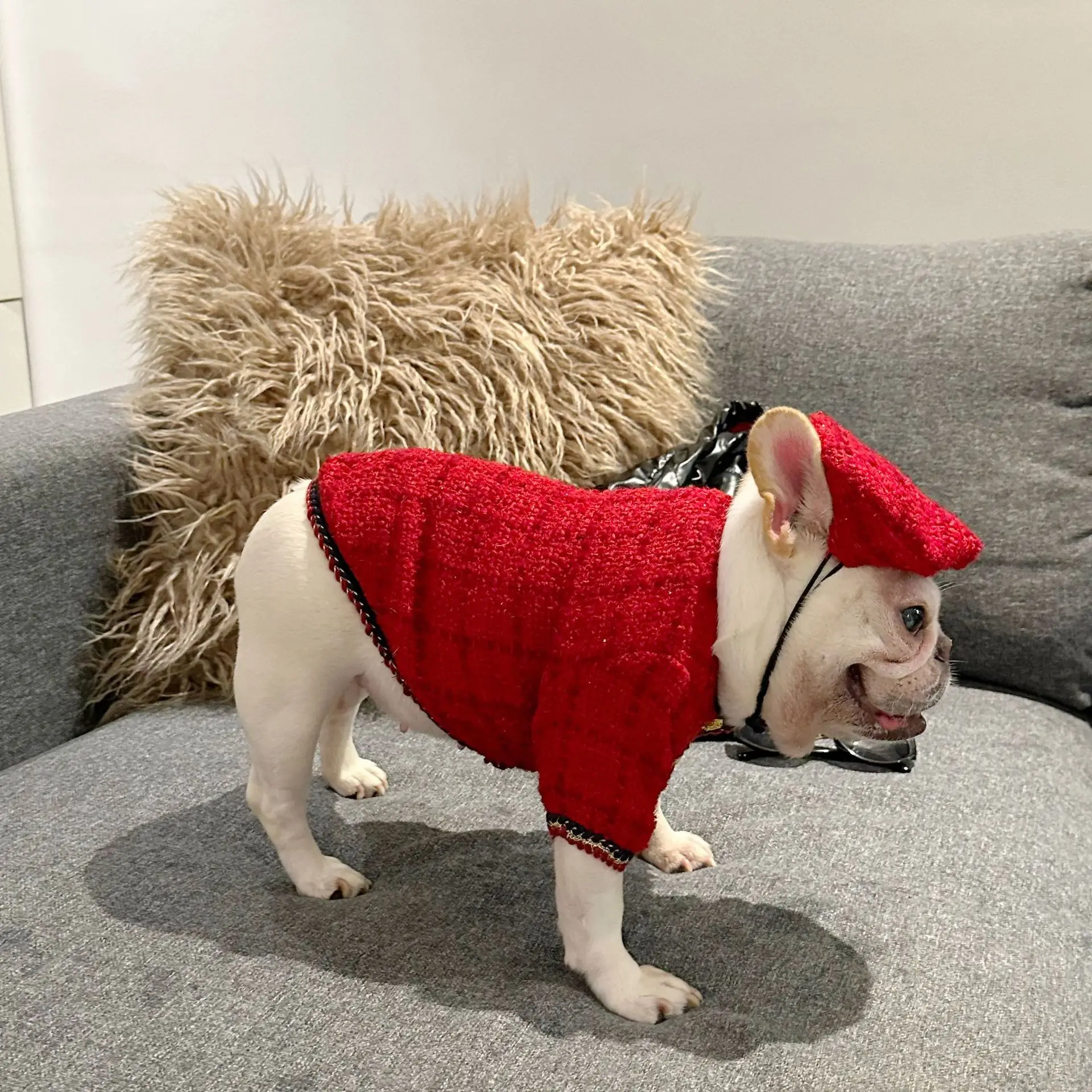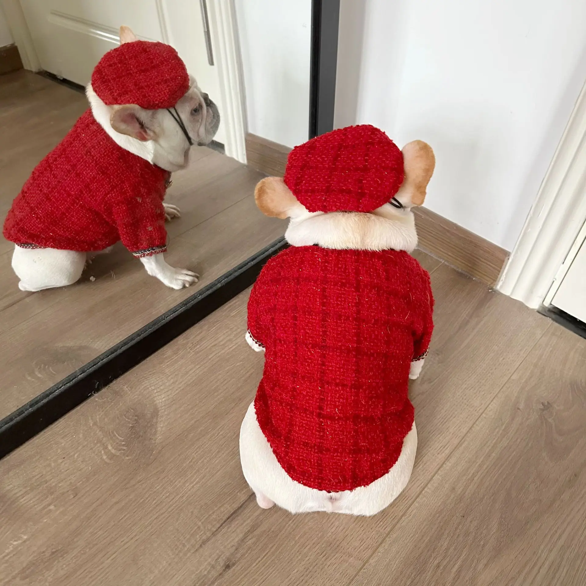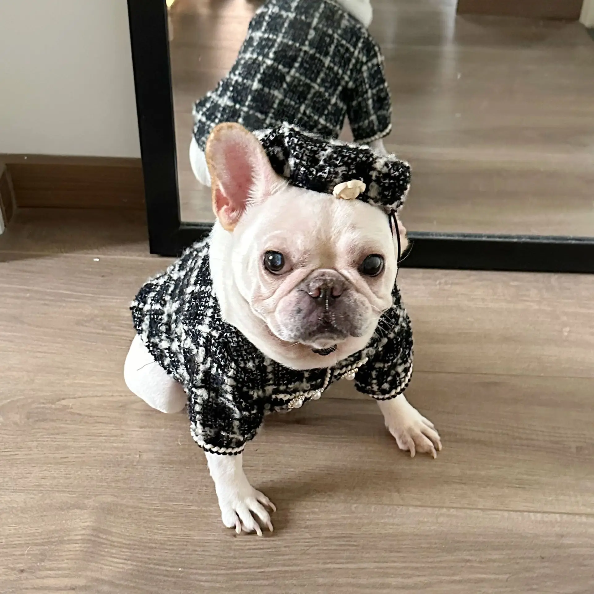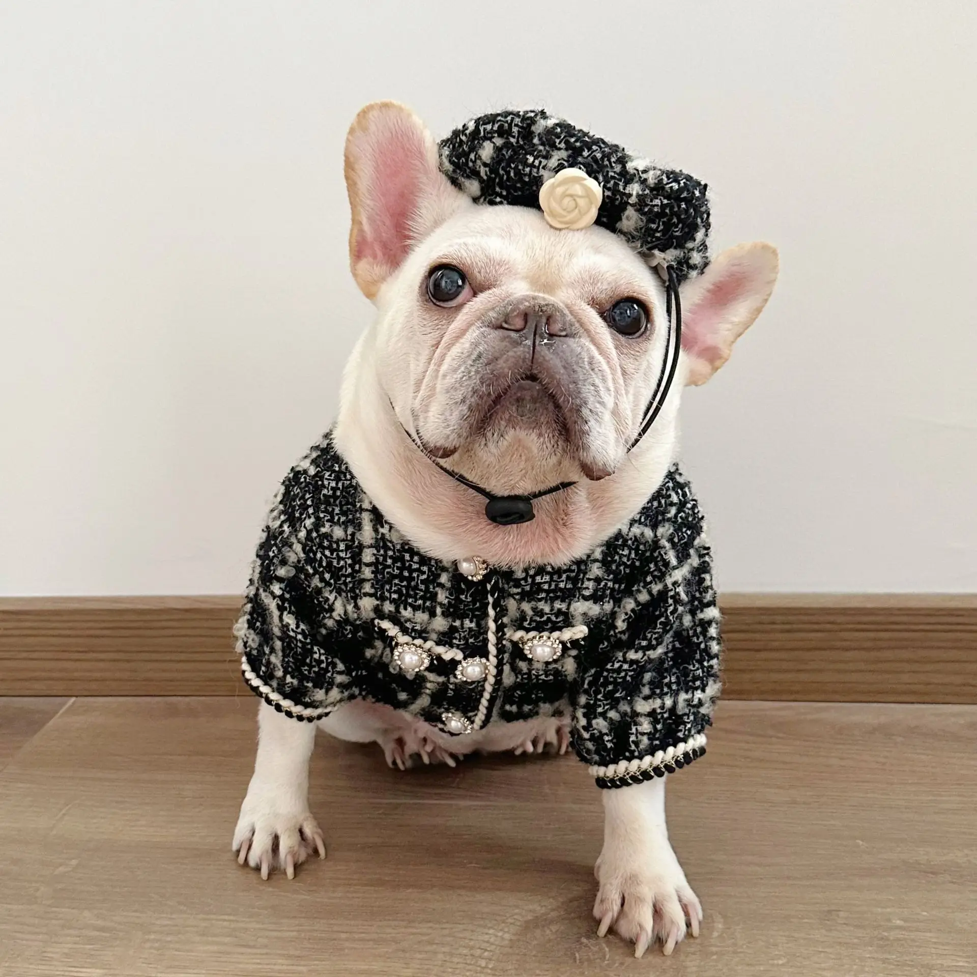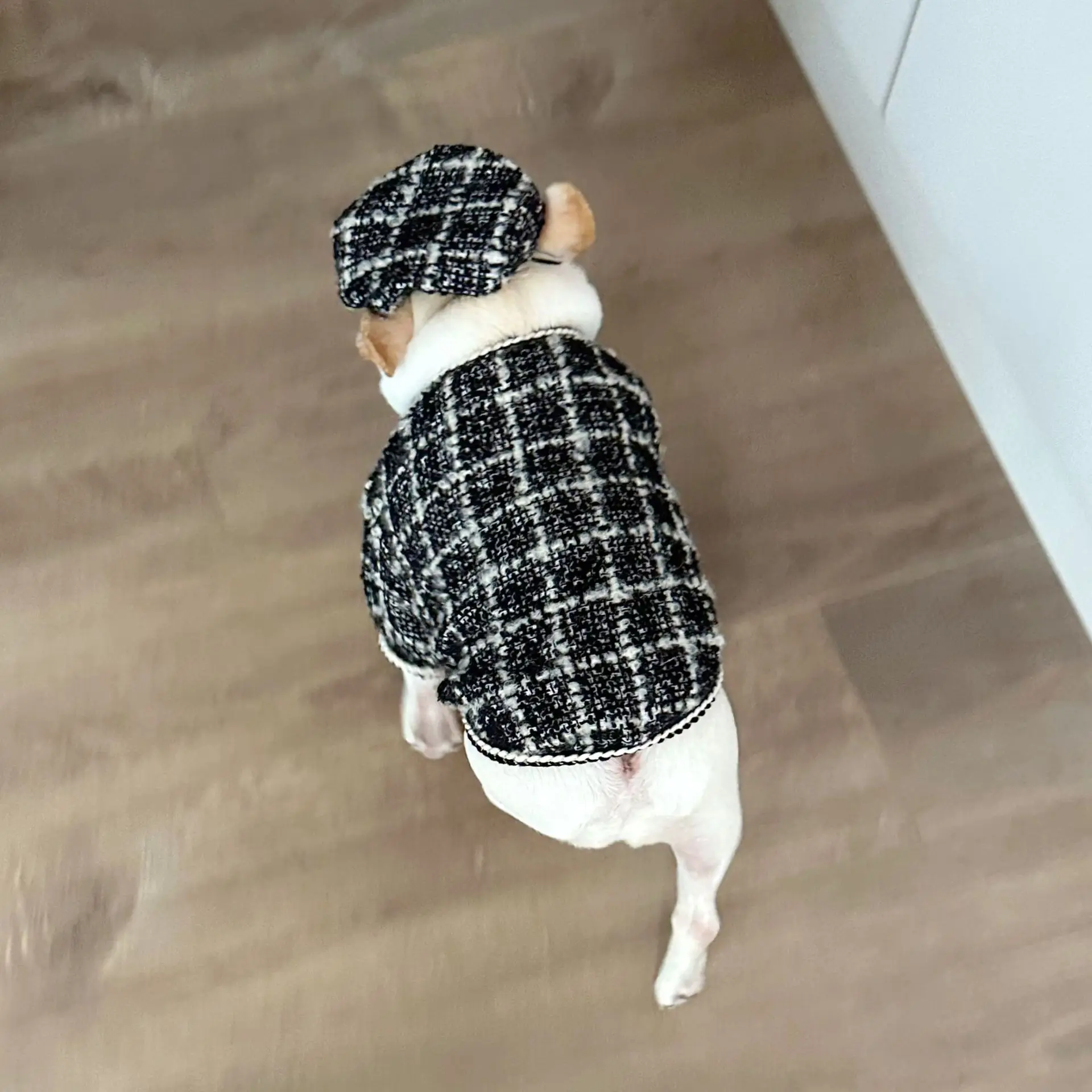 Ropa clásica a cuadros para perro, conjunto de chaqueta y sombrero exquisito para perro, Bulldog Francés, Schnauzer para perro mediano Samll, nuevo, Invierno
