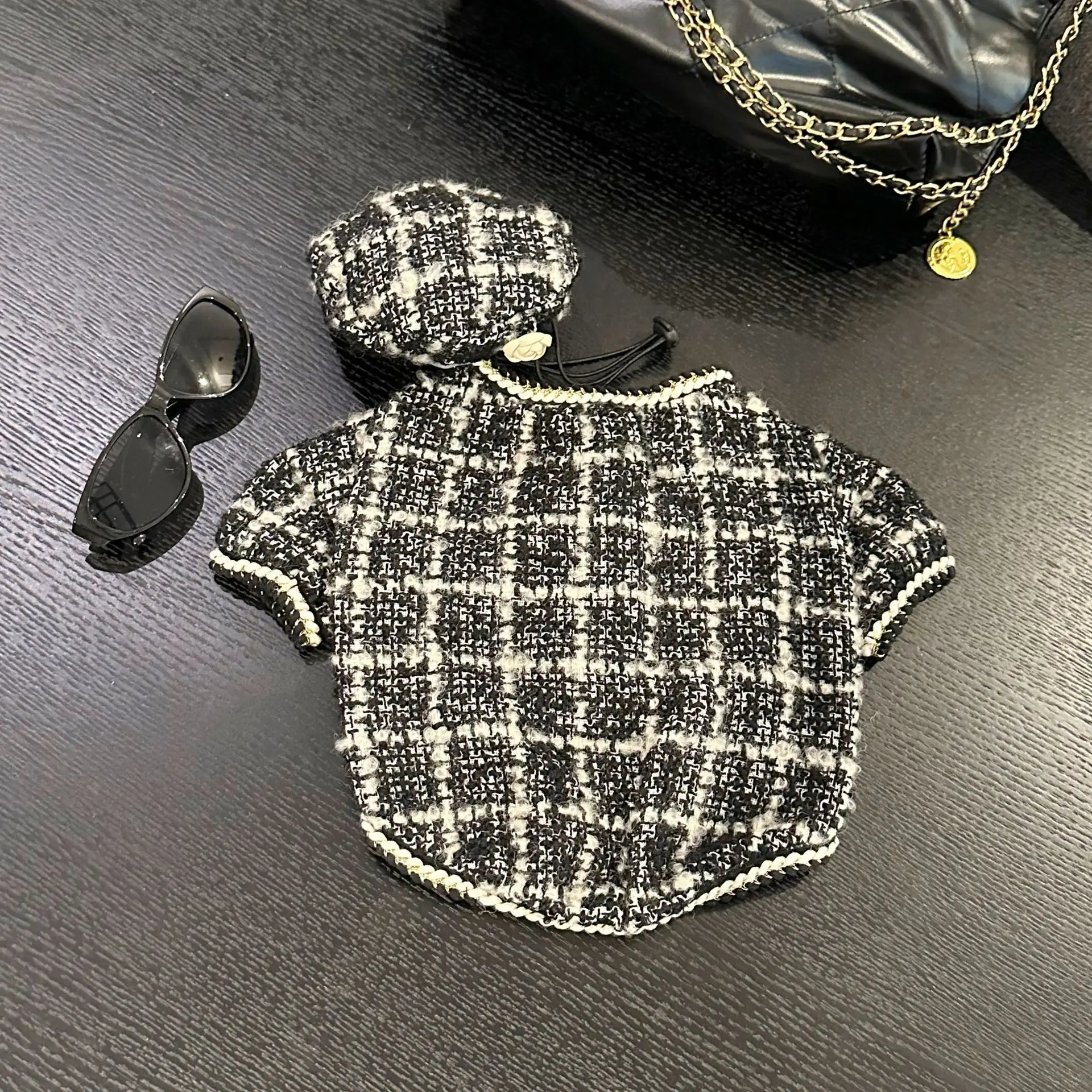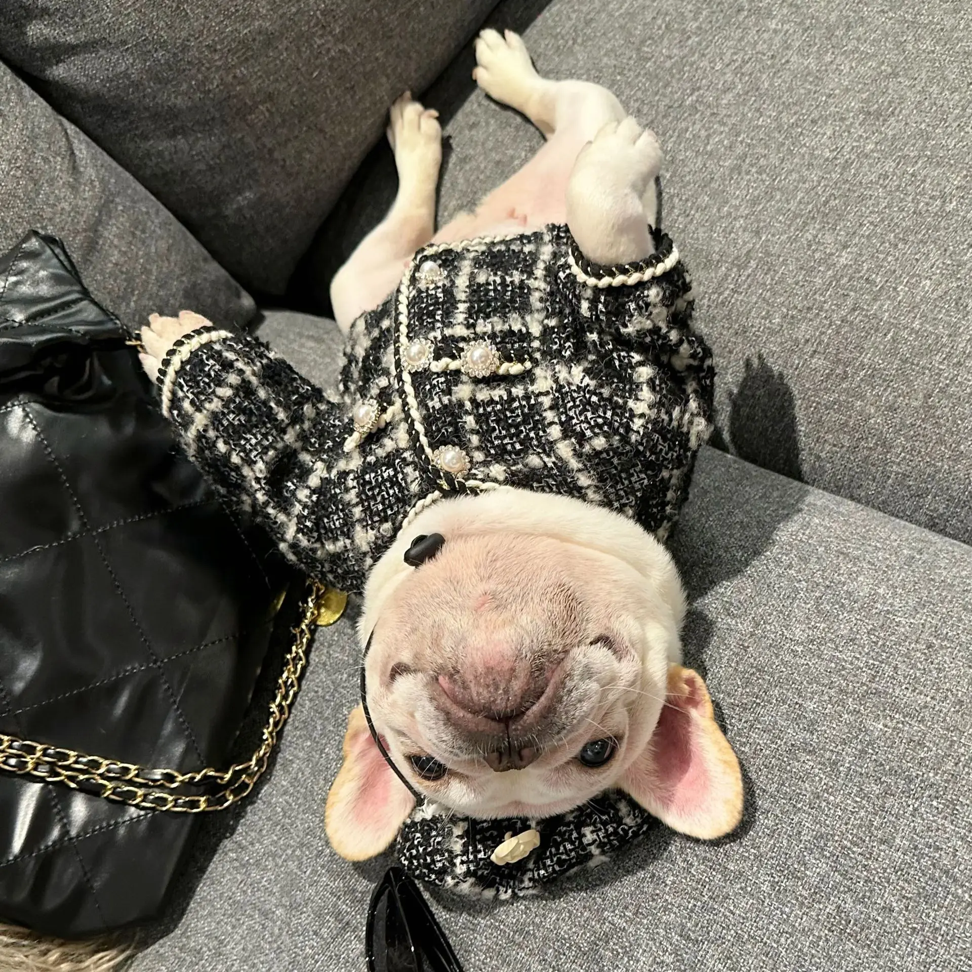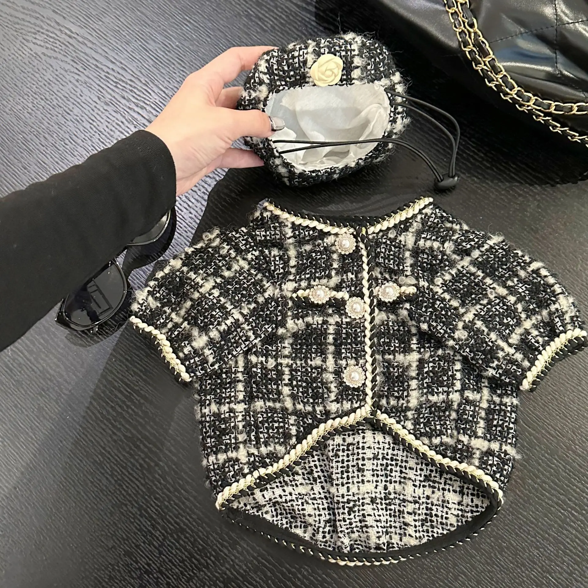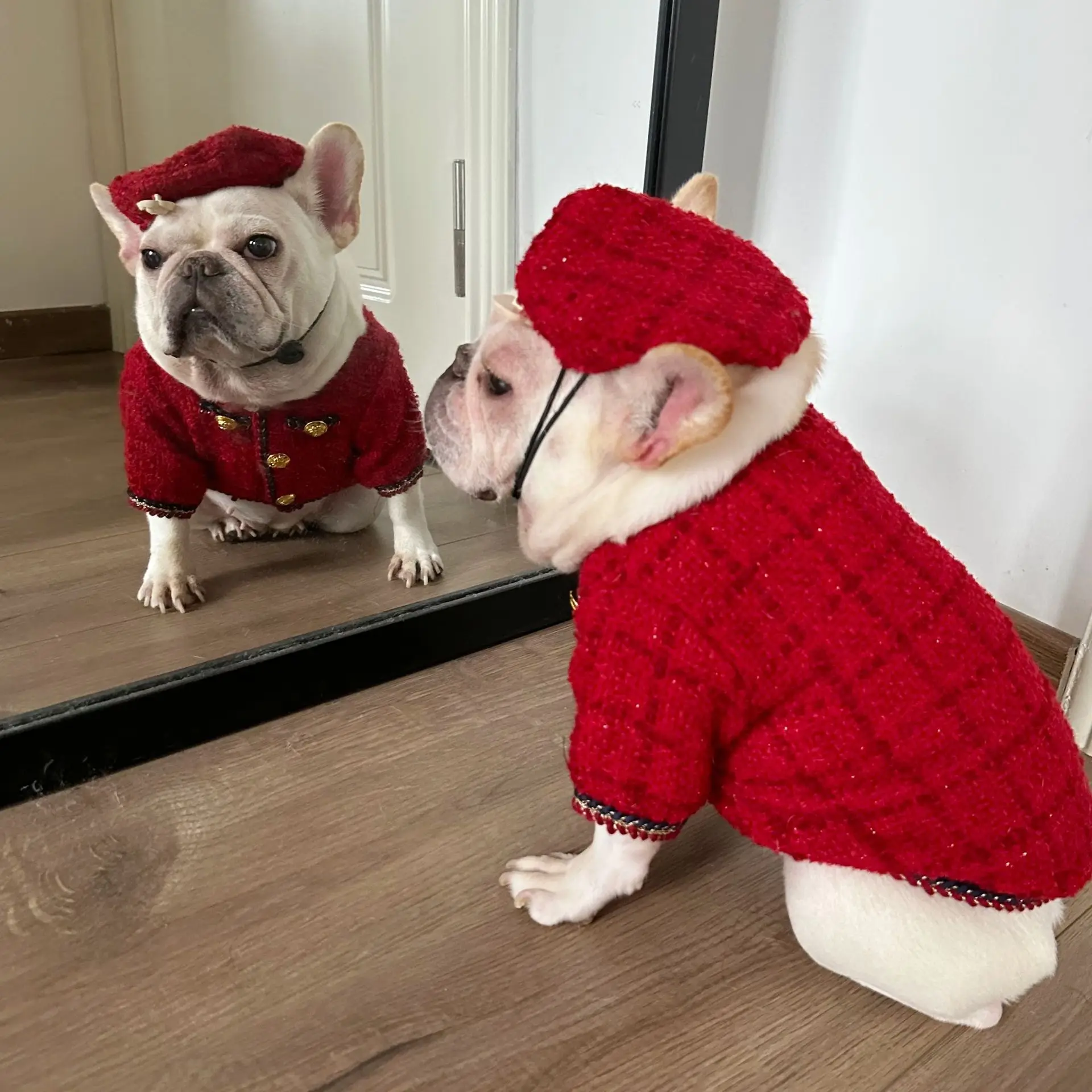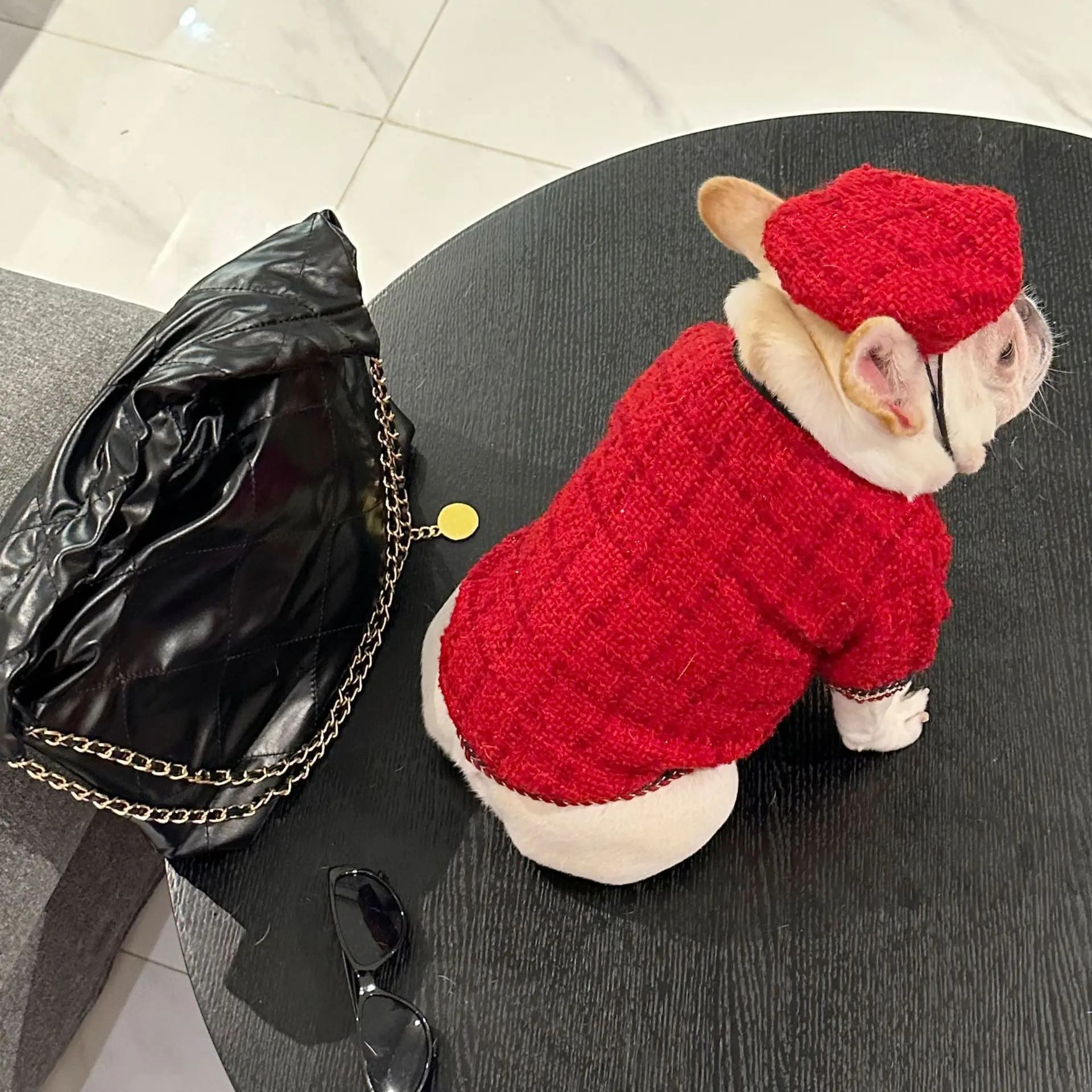 Ropa clásica a cuadros para perro, conjunto de chaqueta y sombrero exquisito para perro, Bulldog Francés, Schnauzer para perro mediano Samll, nuevo, Invierno