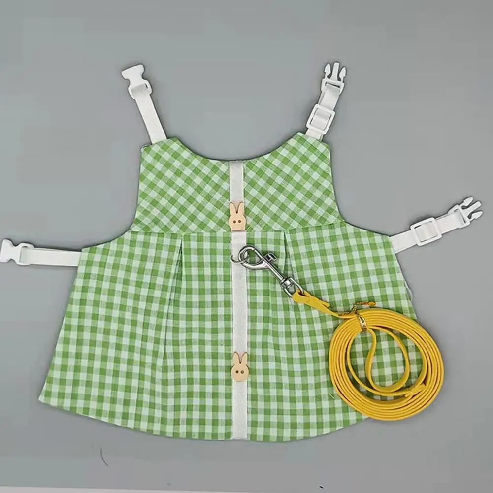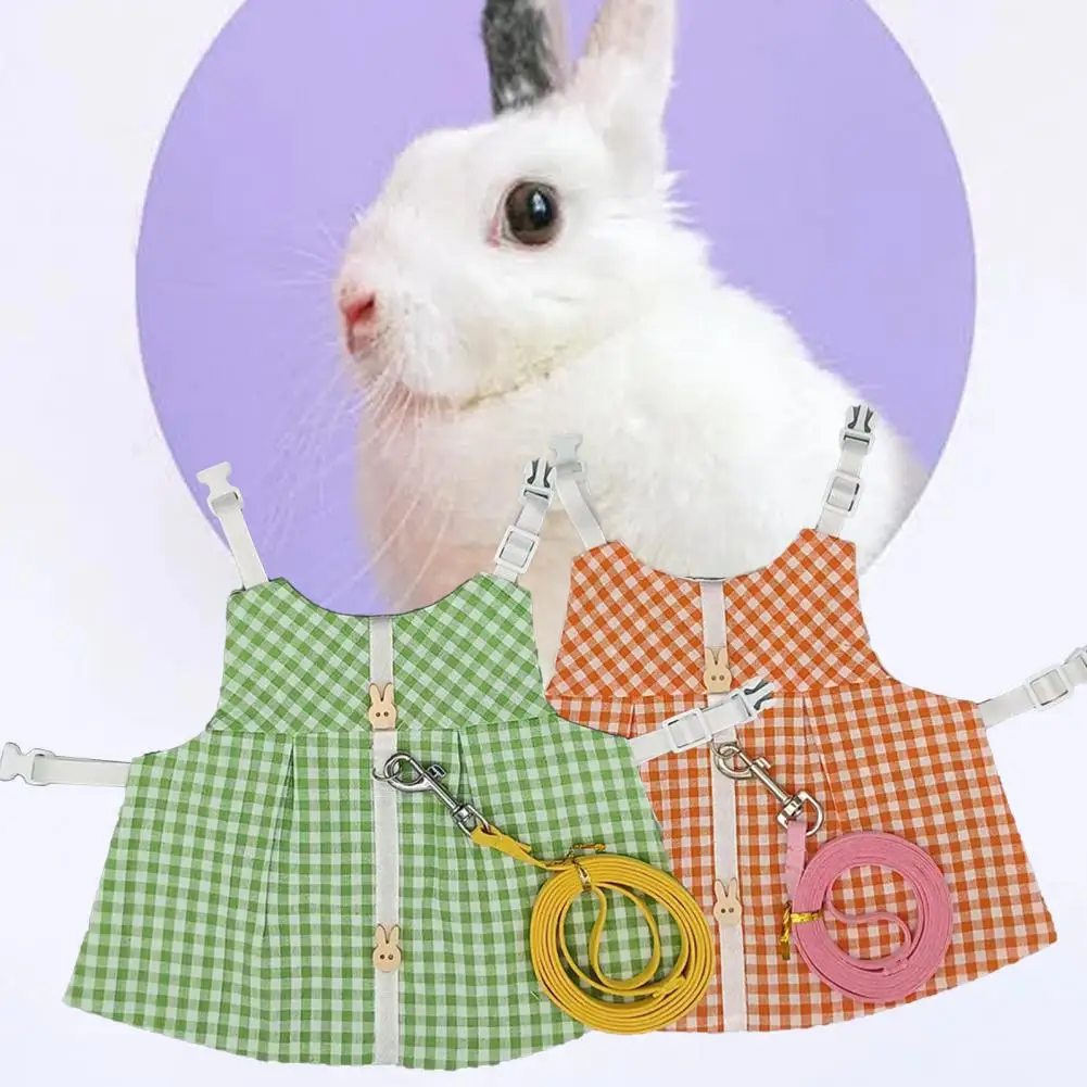 1 Juego de ropa de conejo con cuerda de tracción para evitar roturas, transpirable, prendas de vestir para animales pequeños, arnés, suministros para mascotas