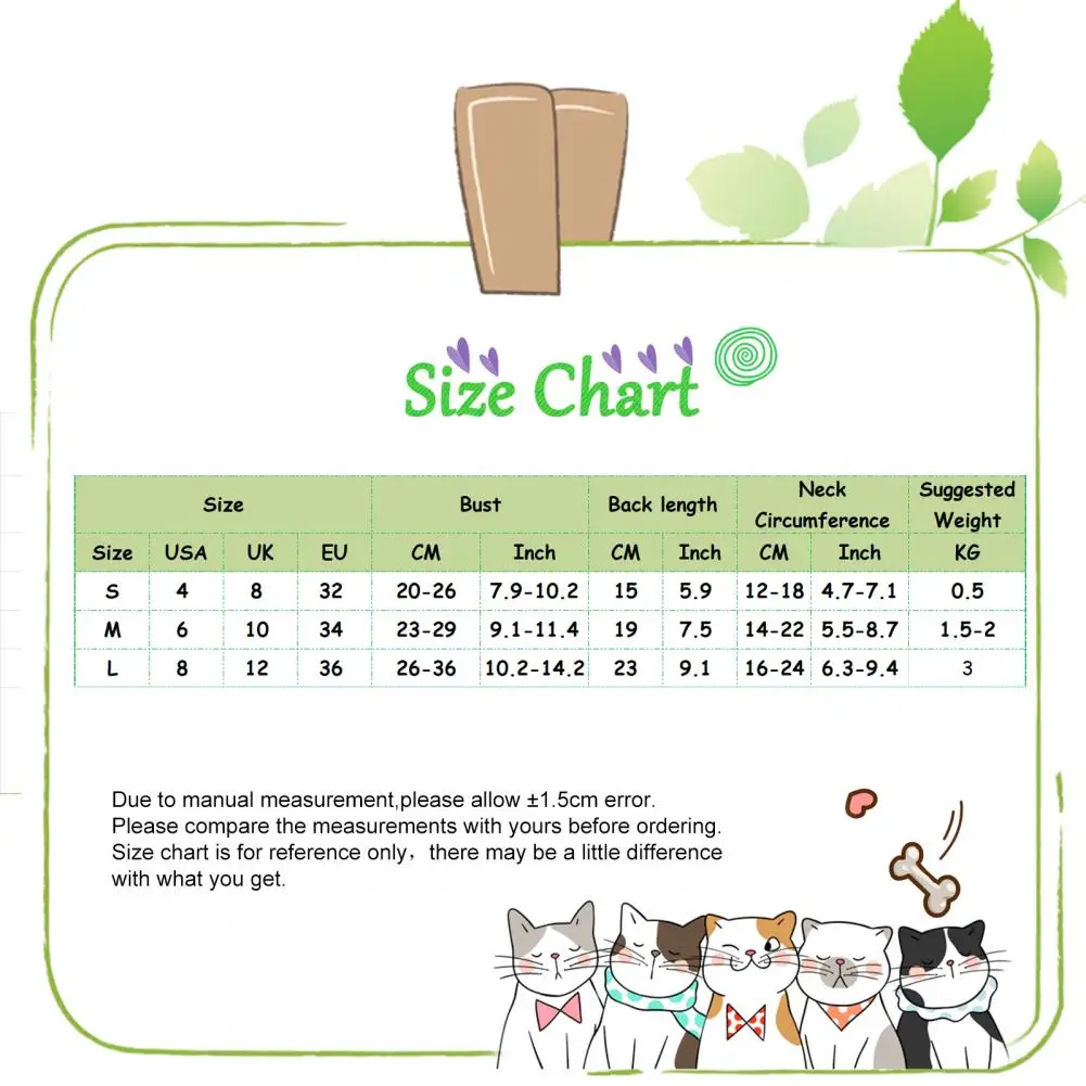 Tamaño: S, busto: 20cm-26cm/7,9 "-10,2", longitud de espalda: 15cm/5,9 ", circunferencia del cuello: 12cm-18cm/4,7"-7,1 ", peso sugerido: 0,5 kg (aprox.)