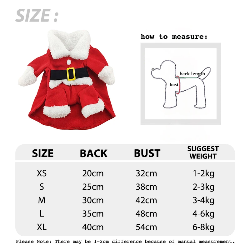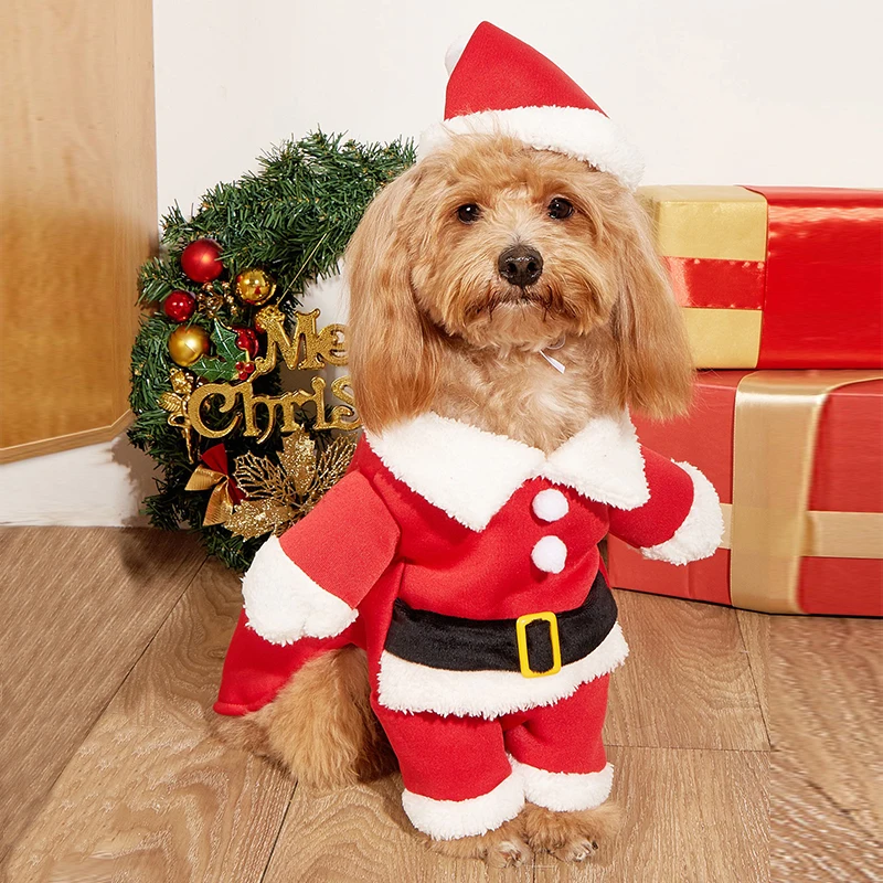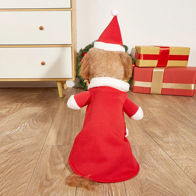 Ropa de Cosplay de Papá Noel para perros pequeños y medianos, ropa de fiesta de lana cálida para invierno, monos para Gato, capa de Animal de Bulldog Francés
