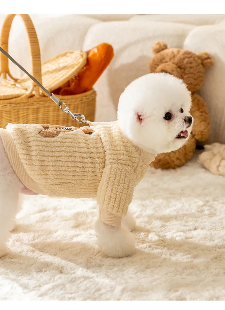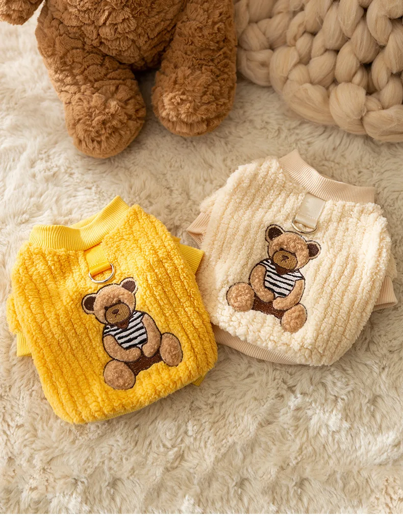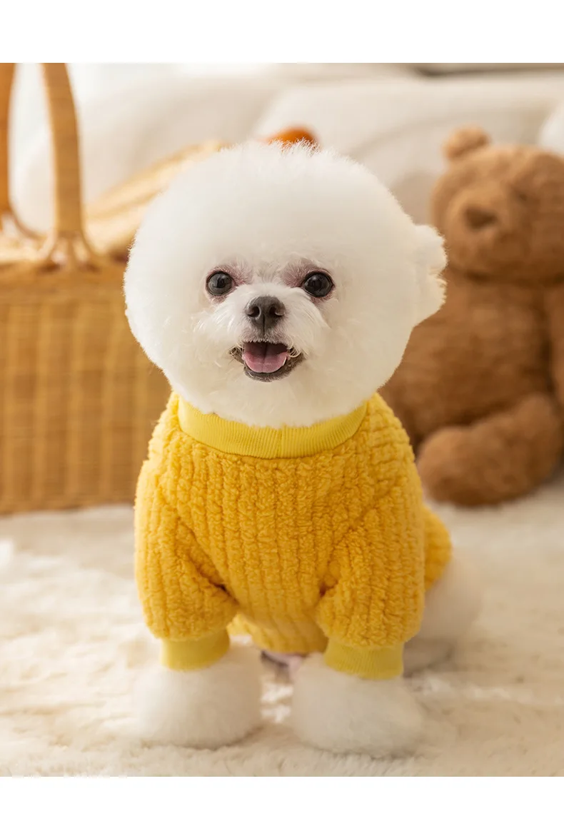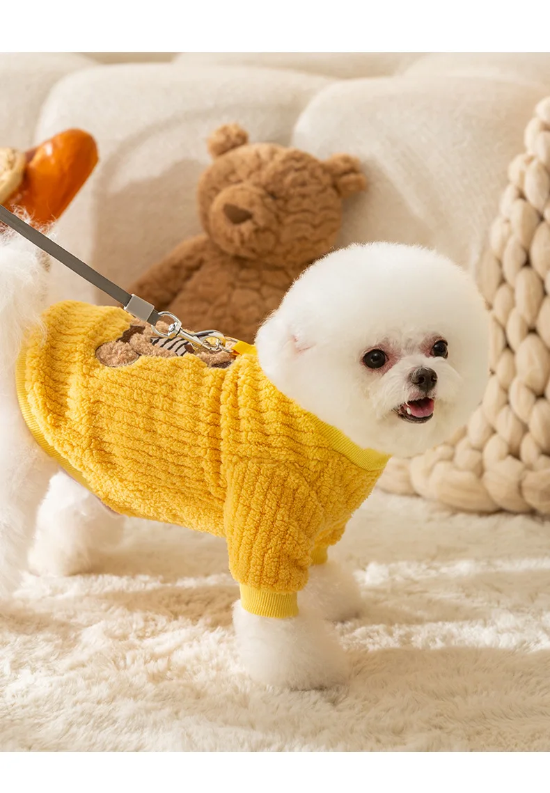 Ropa a cuadros amarilla bonita, ropa cálida de lana para mascotas, ropa de invierno para perros, ropa de algodón gruesa para perros pequeños, ropa con botones abiertos