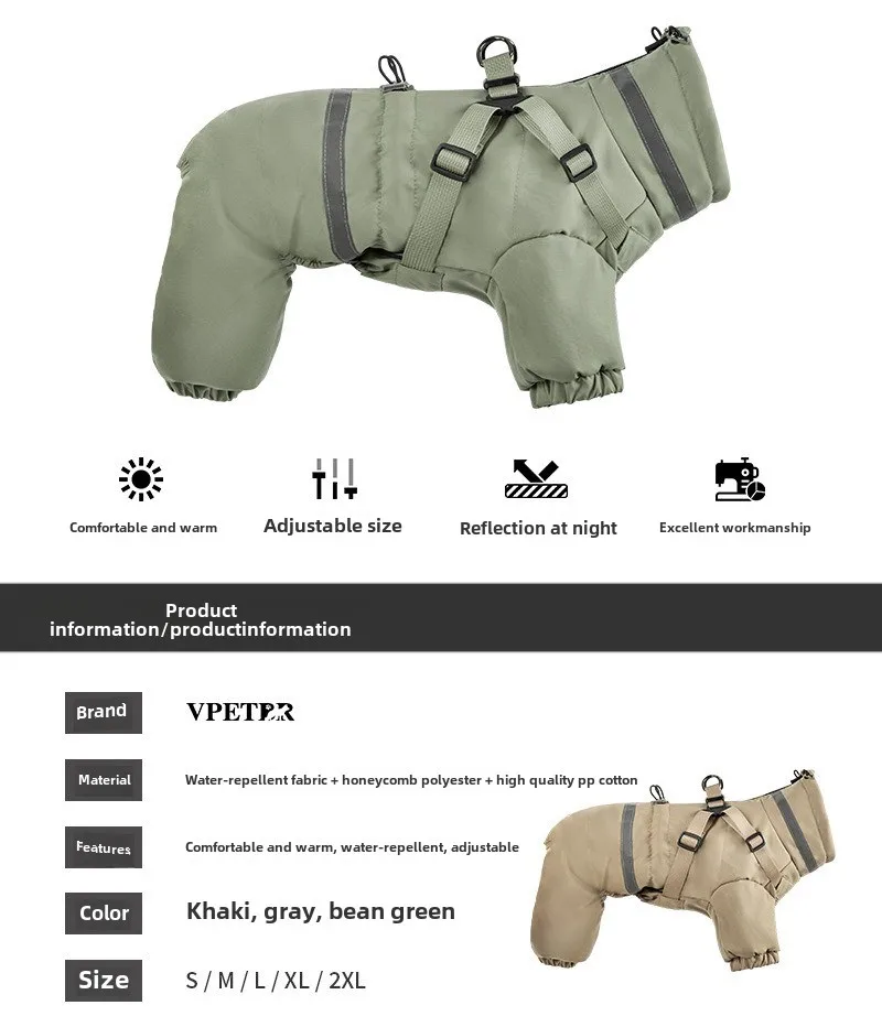 Ropa de cuatro patas para perros, chaqueta acolchada con pecho en la espalda, abrigo grueso y cálido a prueba de viento para cachorros, productos para mascotas, abrigos, suministros, Otoño e Invierno