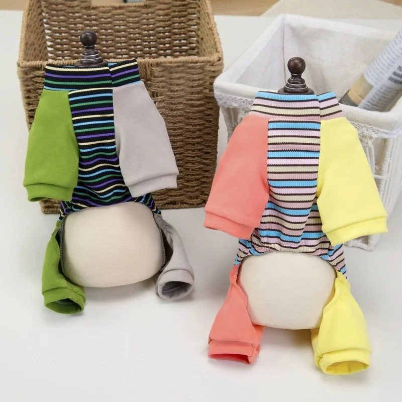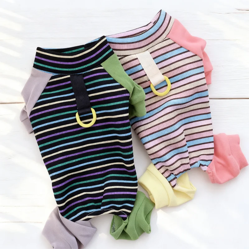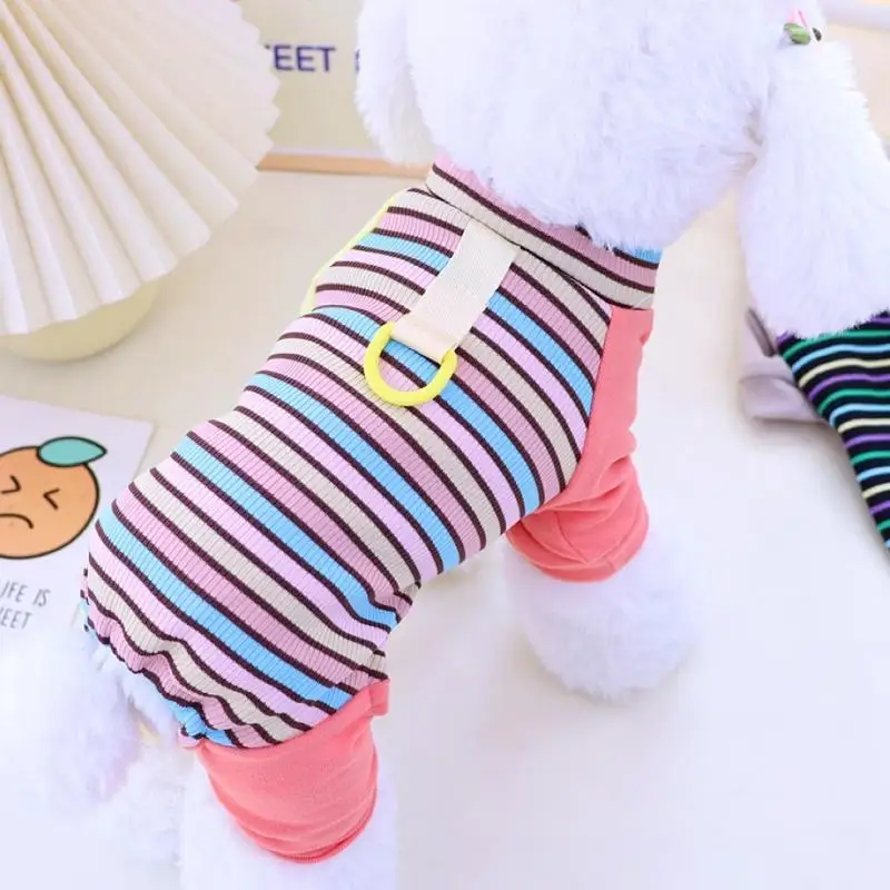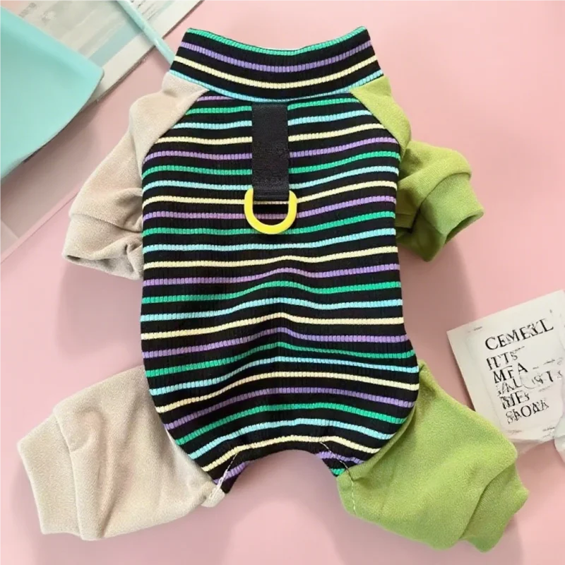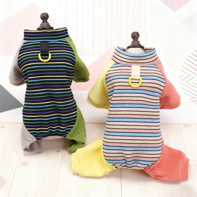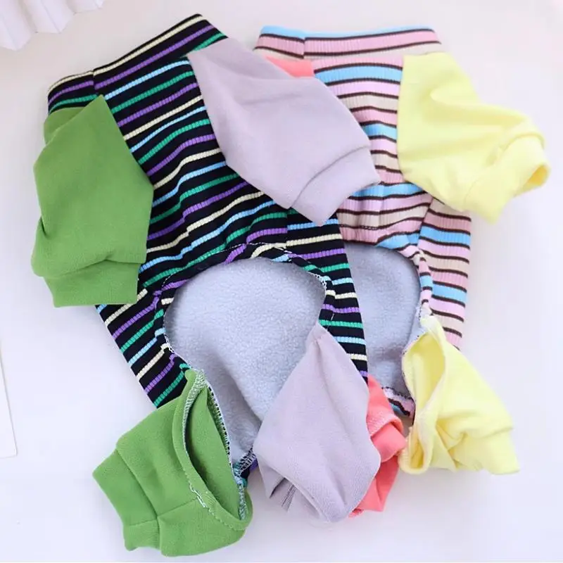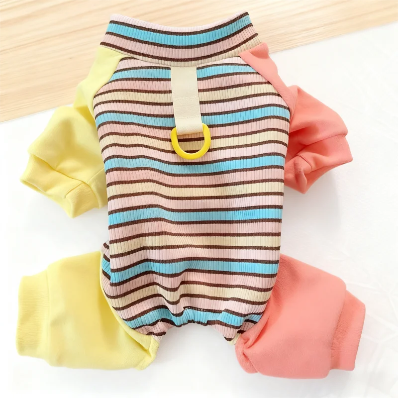 Ropa de cuatro patas para perros a la moda, monos para perros a rayas de arcoíris, pijamas suaves y cálidos para cachorros, ropa de casa de gato bonito, monos para mascotas, trajes para perros