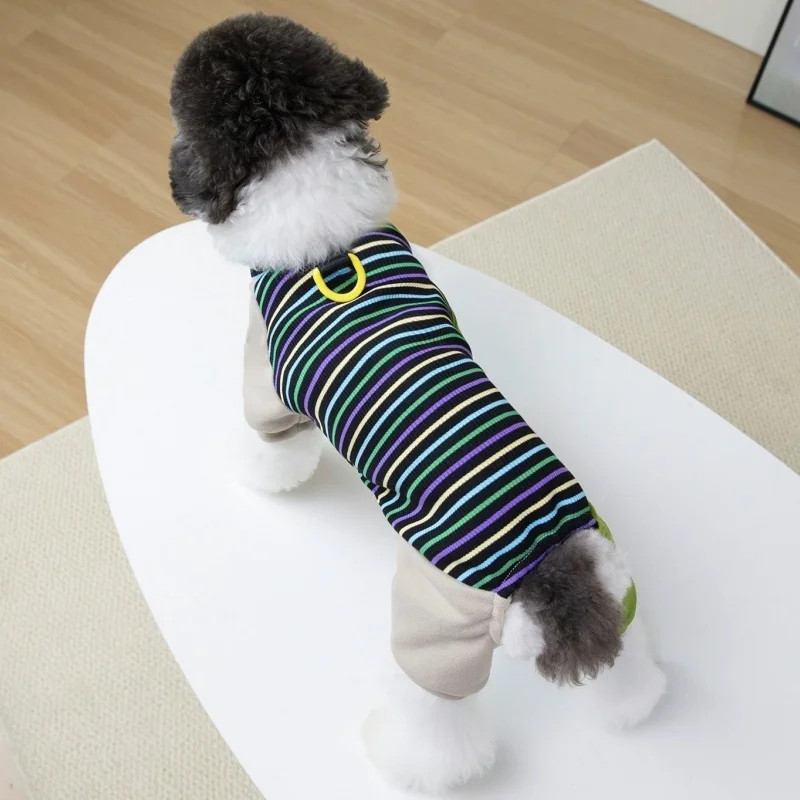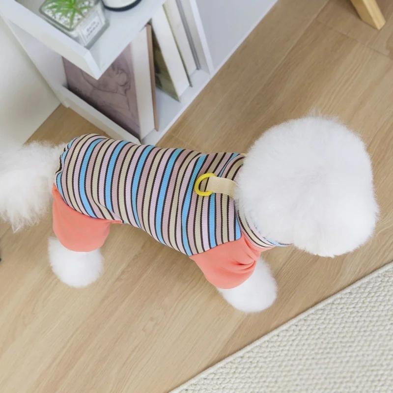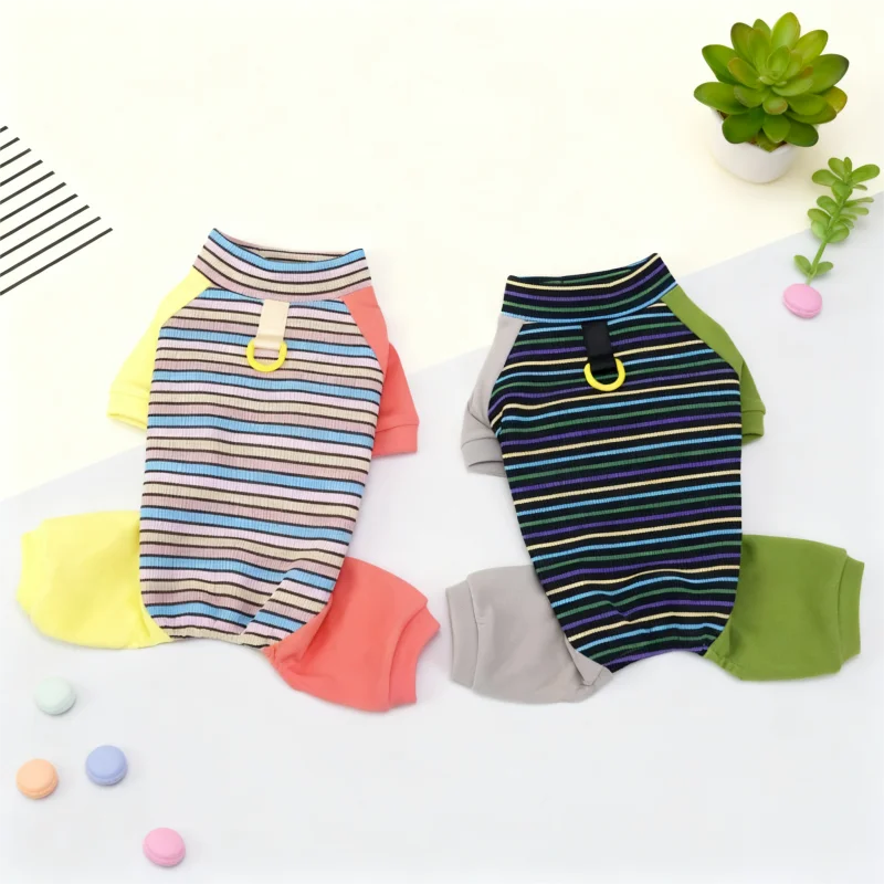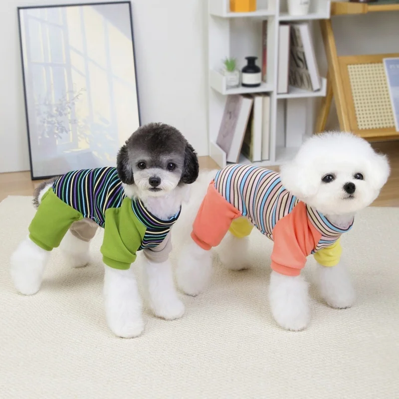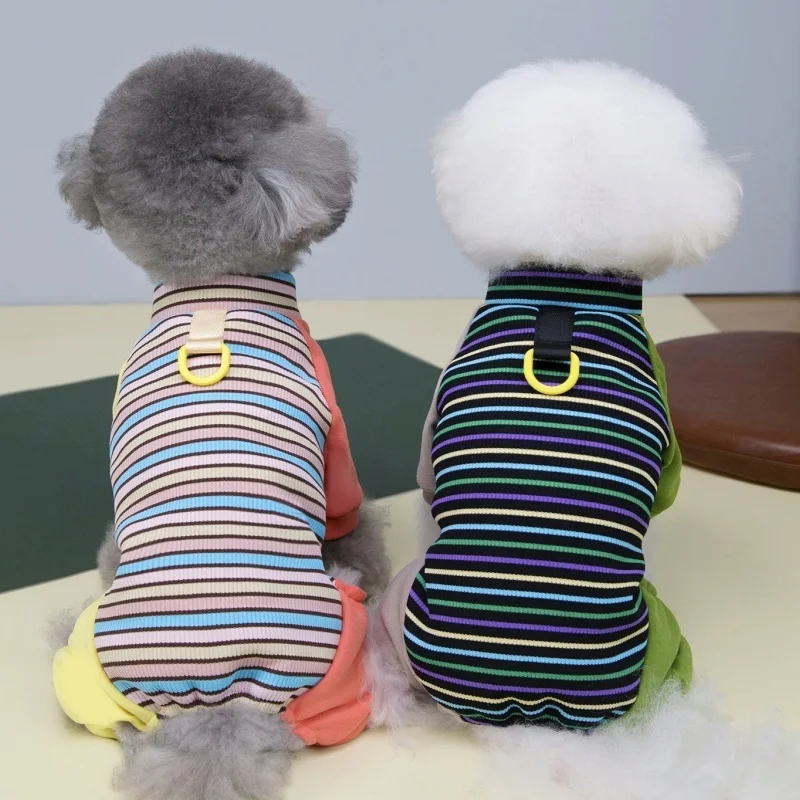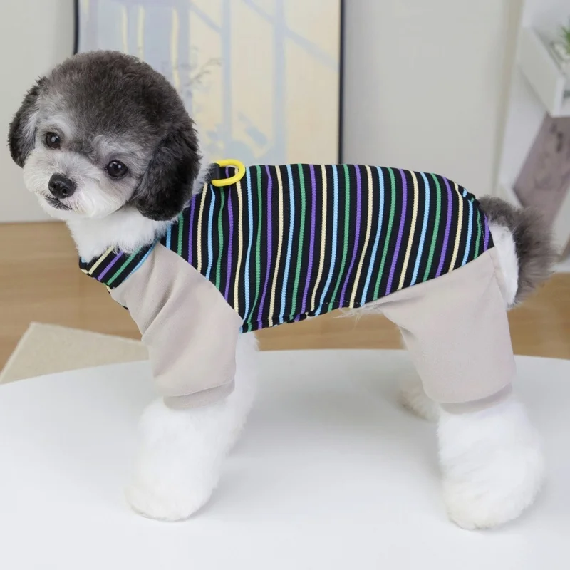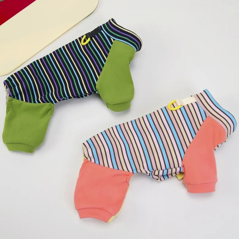 Ropa de cuatro patas para perros a la moda, monos para perros a rayas de arcoíris, pijamas suaves y cálidos para cachorros, ropa de casa de gato bonito, monos para mascotas, trajes para perros