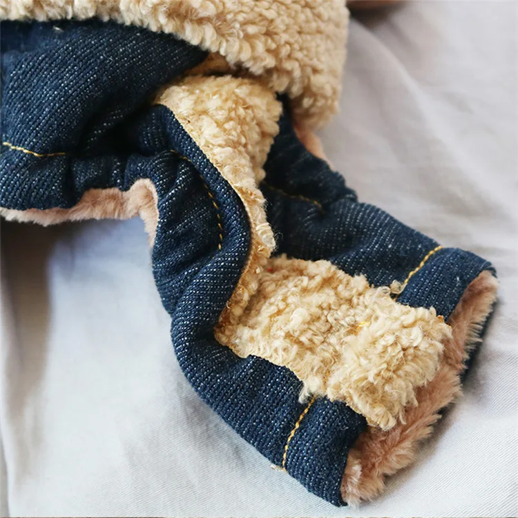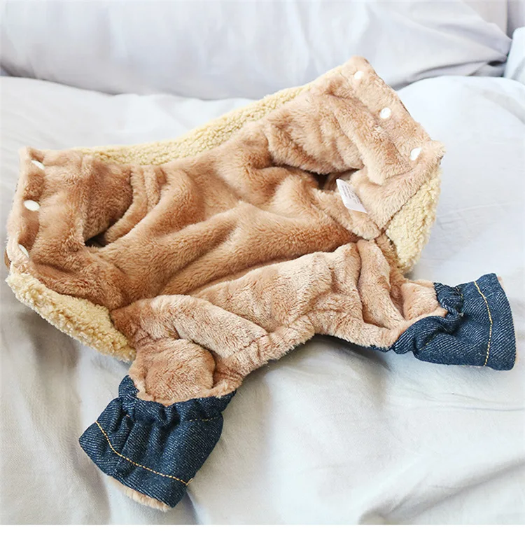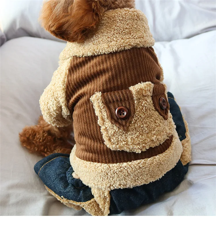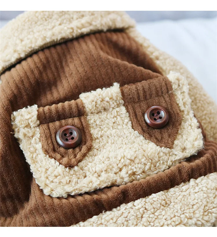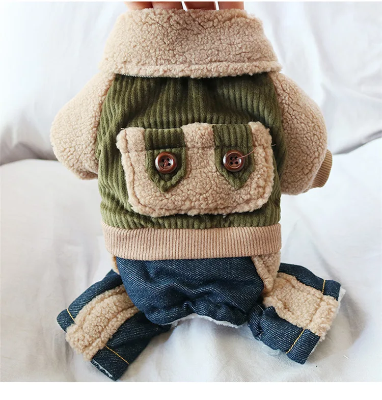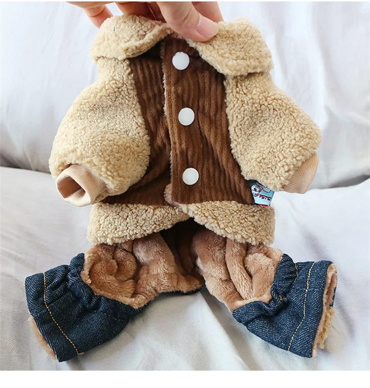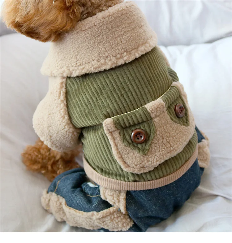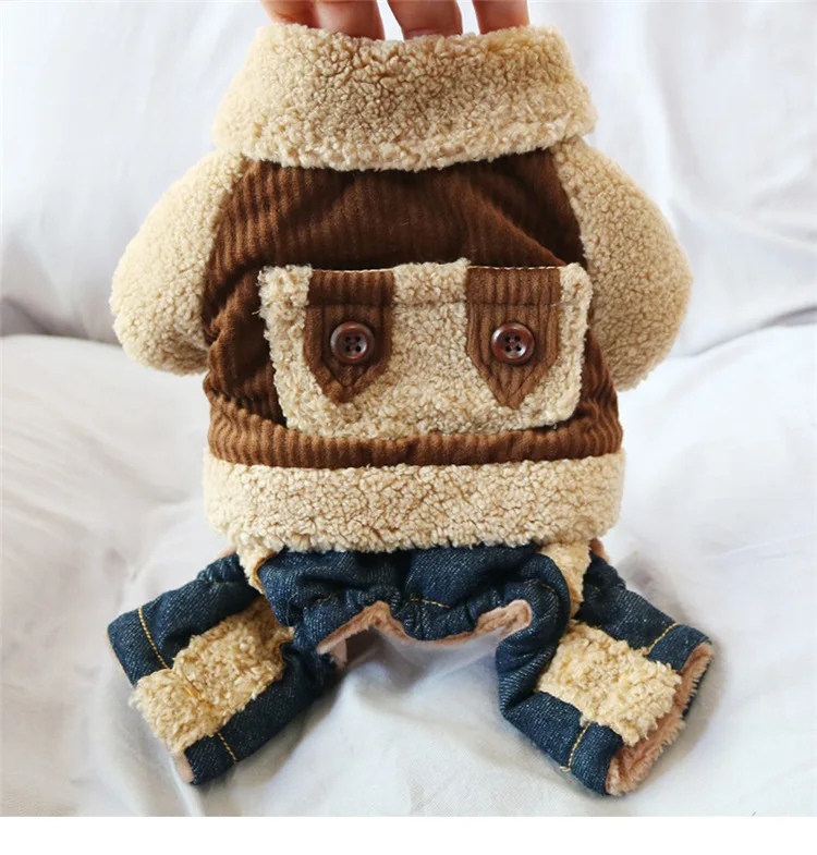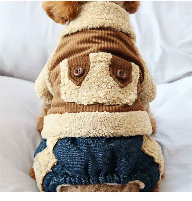 Ropa de cuatro patas con solapa de piel de cordero para mascotas, mono de perro, oso de peluche, traje de otoño, chaqueta gruesa a rayas, Parkas para perros