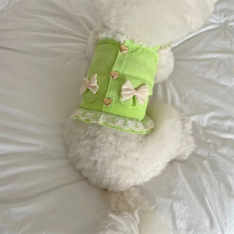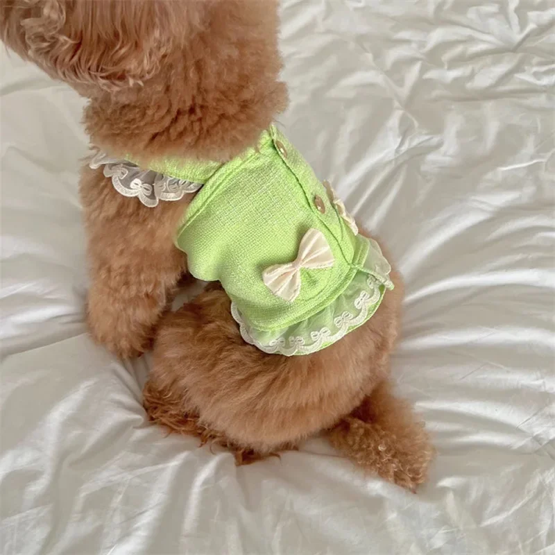 Ropa de diseño para mascotas, camisola, chaleco, gato pequeño y mediano, ropa con lazo de encaje para primavera y verano, conjunto de 2 piezas, sombrero de encaje, vestidos para cachorros