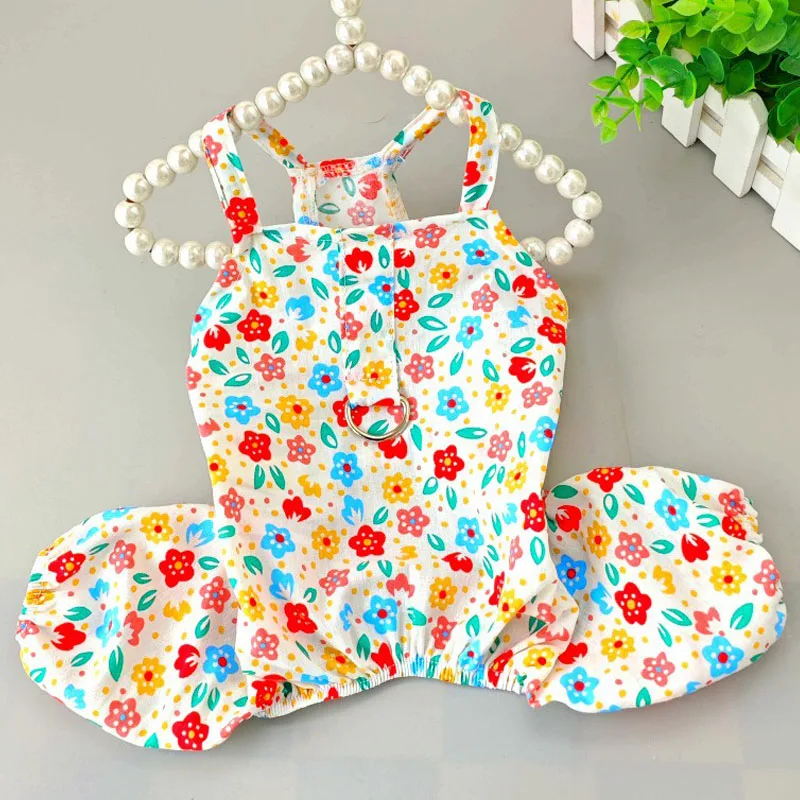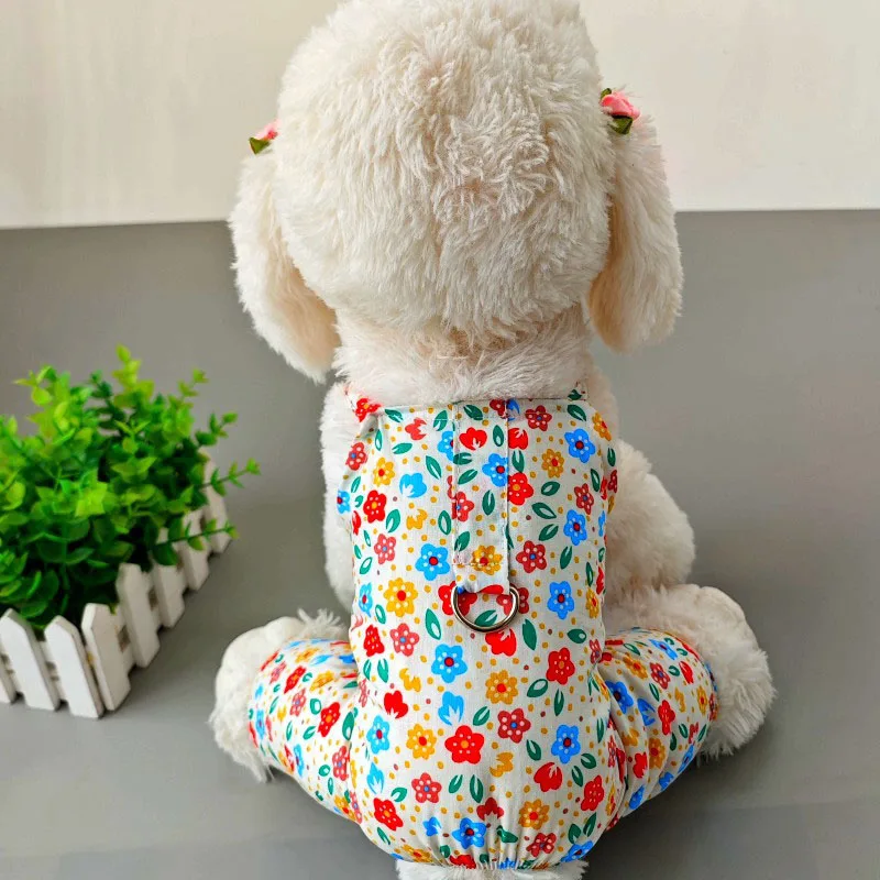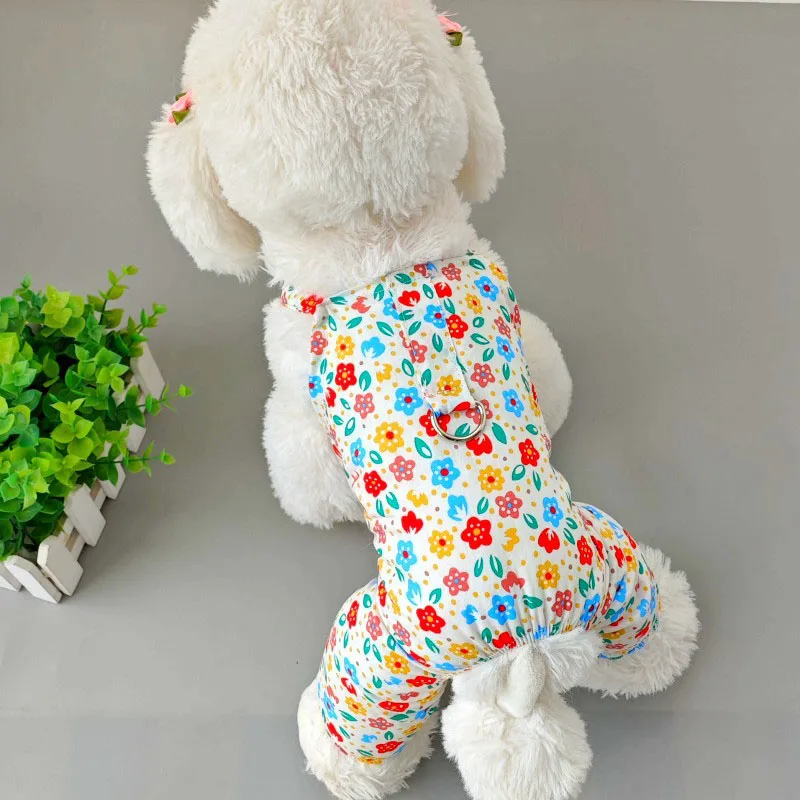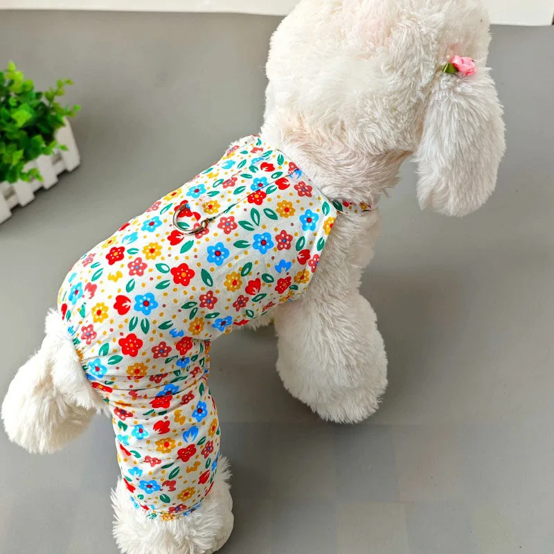 Ropa dulce para perros y niñas, mono para cachorros con patrón de flores de verano, pijamas con diseño de D, mono para perros, pijamas para perros pequeños, Chihuahua