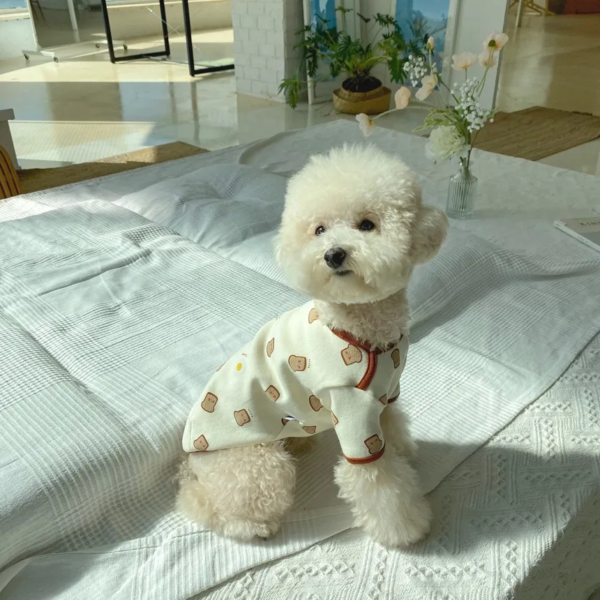 Ropa para el hogar de otoño e invierno para mascotas, pijamas, camisa con Base de pan para otoño e invierno, ropa para perros pequeños con oso de peluche