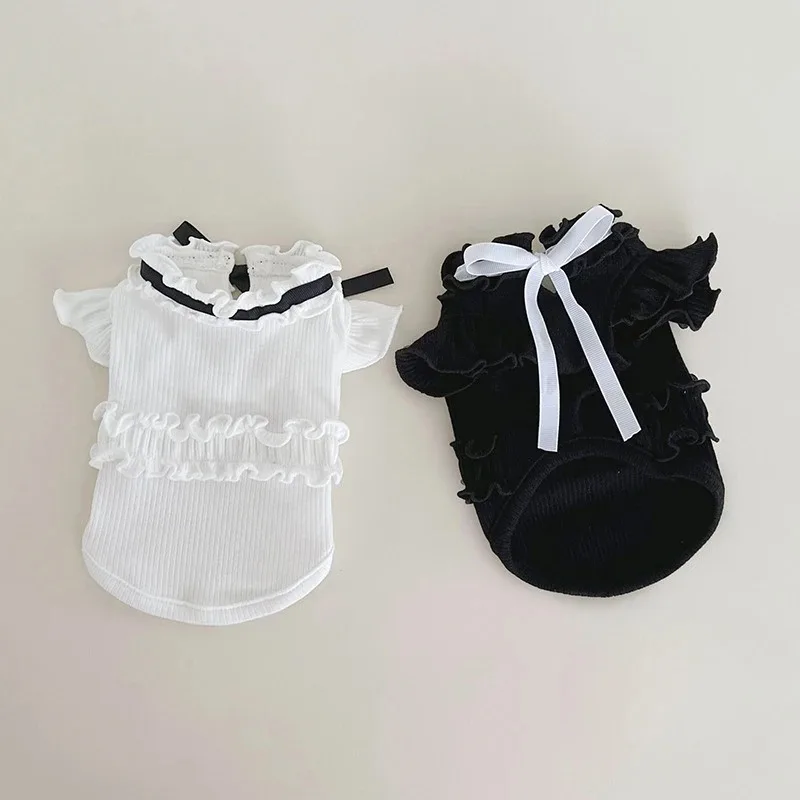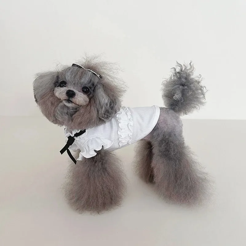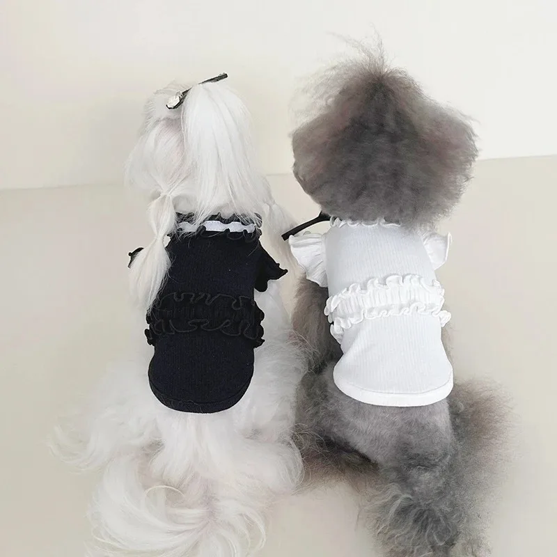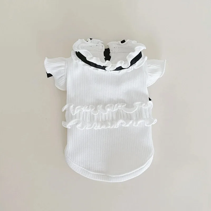 Ropa de encaje a la moda para mascotas, camisa básica de invierno, Collar con correa, camisa básica de manga voladora versátil, ropa para perros pequeños