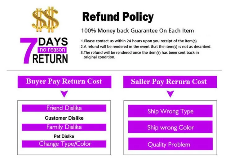 2.Todo el artículo devuelto debe estar en el paquete original y usted debe proporcionarnos el envío.