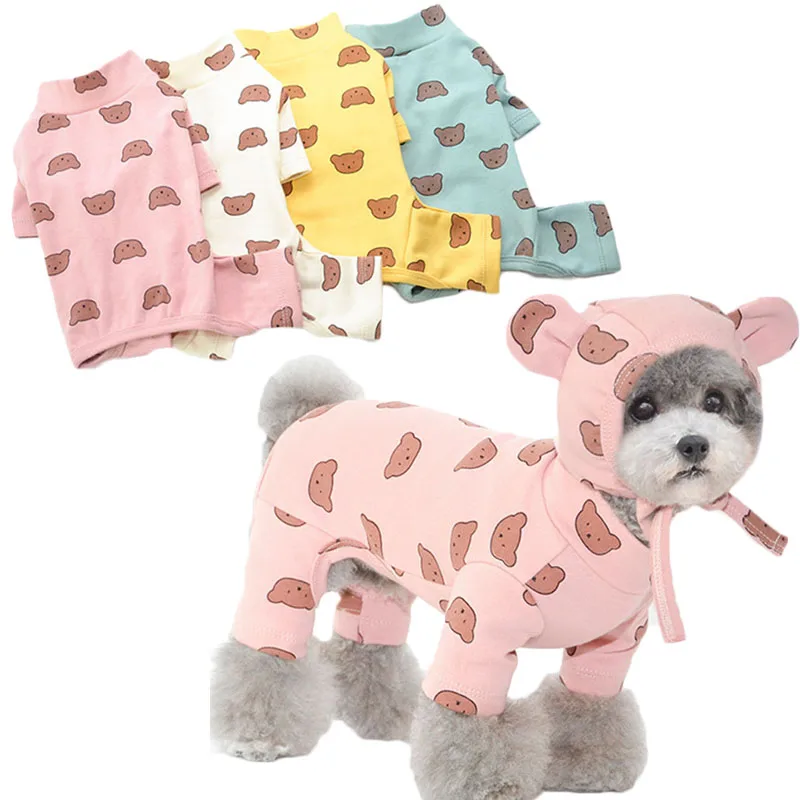 Patrón de oso, pijamas de 4 piernas para perros pequeños, ropa para mascotas, mono, sudaderas con capucha, sudadera, pijamas para cachorros, monos, Mono para perros Chiwawa, mono XXL