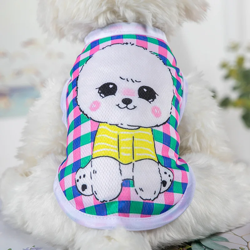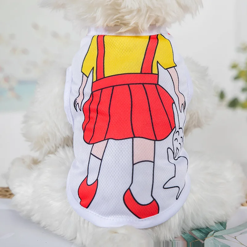 Ropa con estampado de dibujos animados para mascotas, camiseta de secado rápido para perros pequeños, chaleco Yorkshire sin arrugas, ropa colorida para mascotas, verano