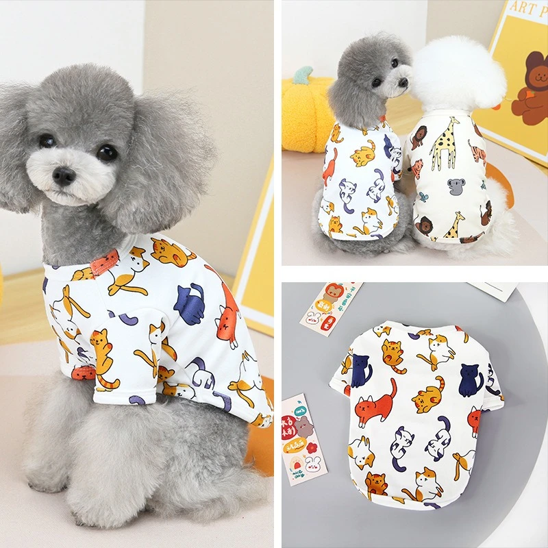 Ropa con estampado de dibujos animados para perros pequeños, camiseta de ocio para el hogar, Gato, Unisex, Animal, Chihuahua, York, primavera y verano