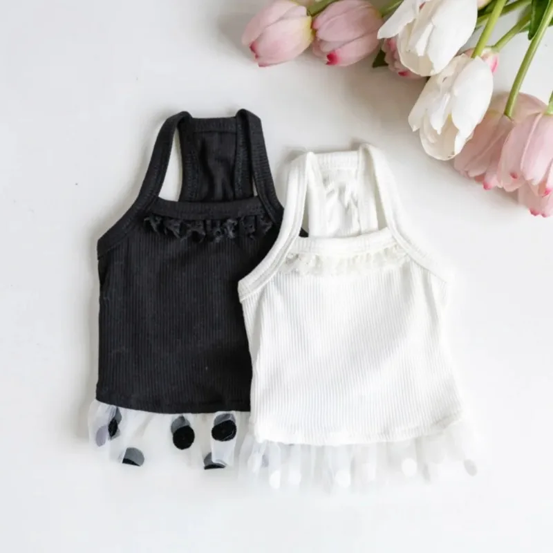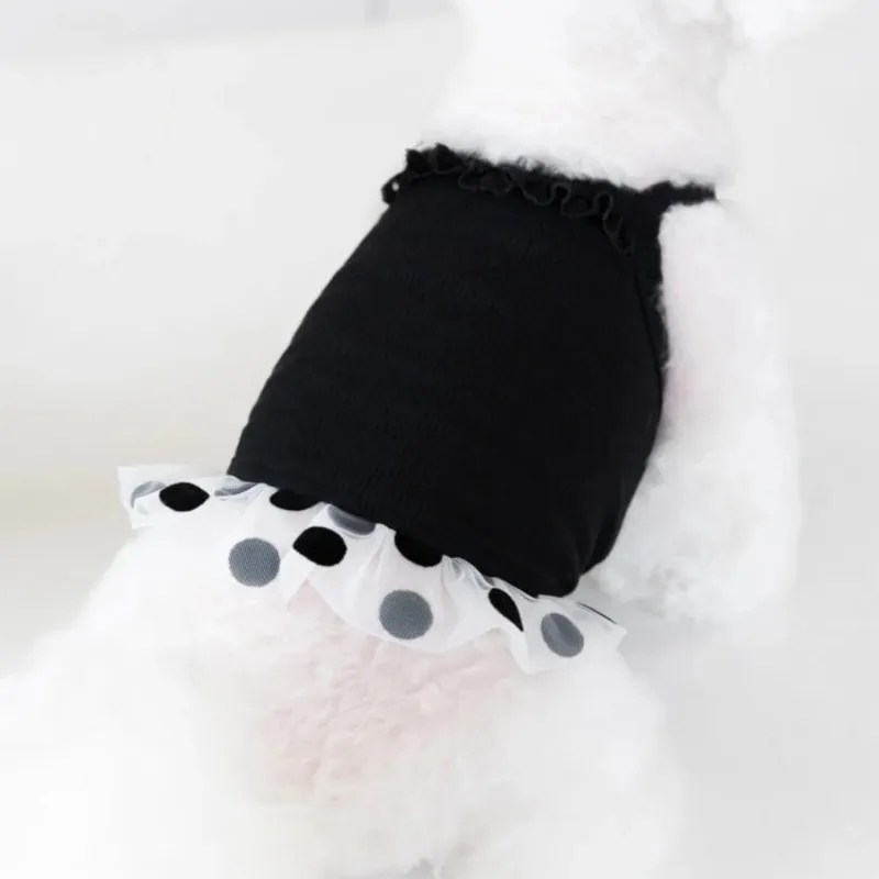 Ropa fina para mascotas, chaleco de primavera y verano, falda esponjosa de malla, camisola cómoda y fresca de lunares, chaleco para perros y gatos, ropa para perros pequeños