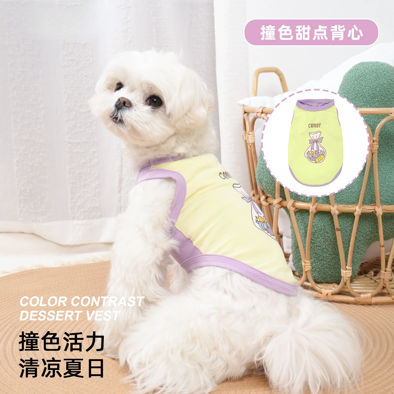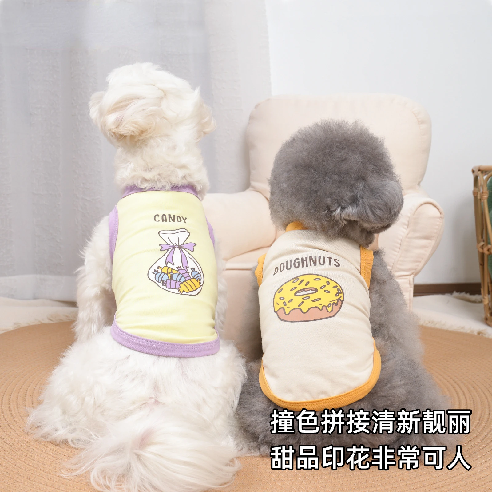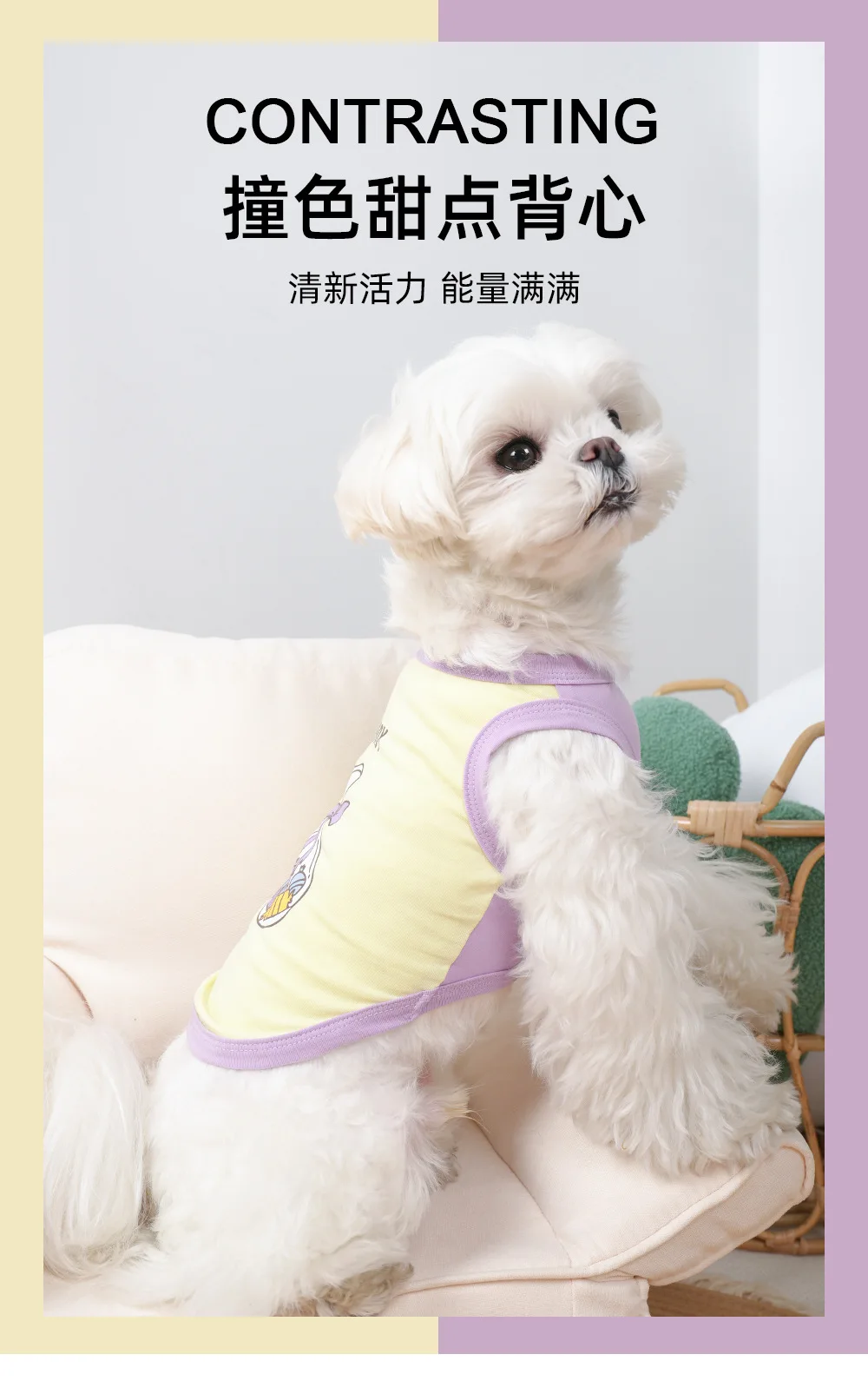 Ropa fina de primavera para mascotas, camiseta sin mangas de dos patas con contraste de dibujos animados de oso de peluche, ropa de diseñador para perros