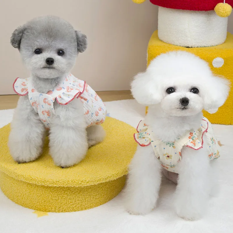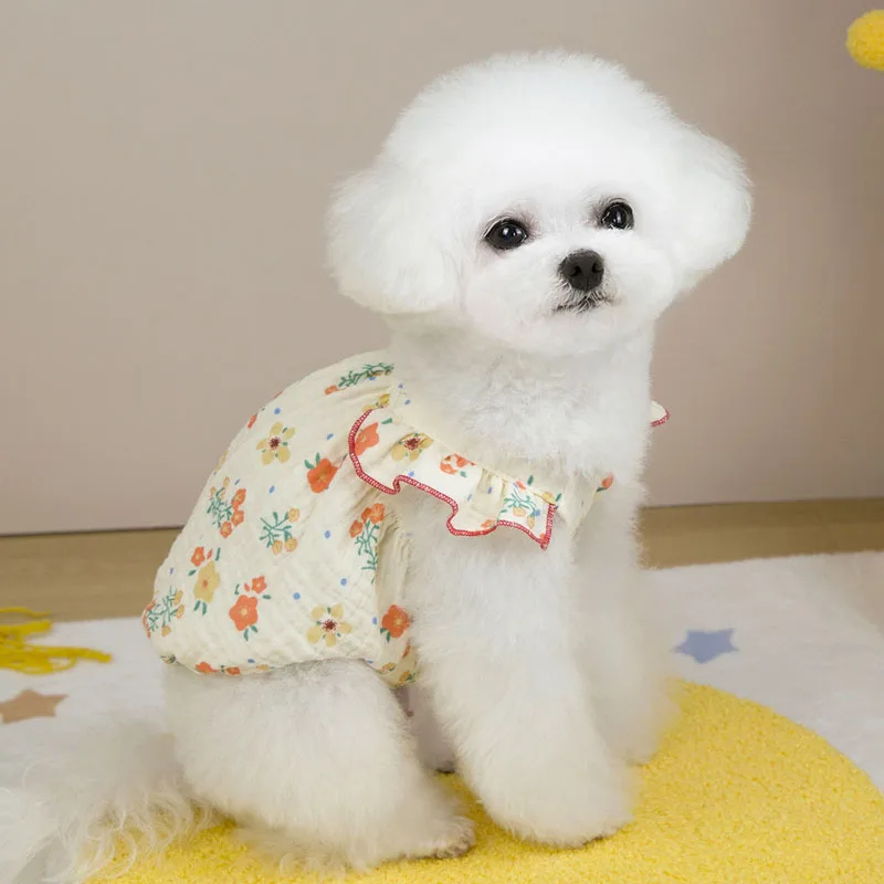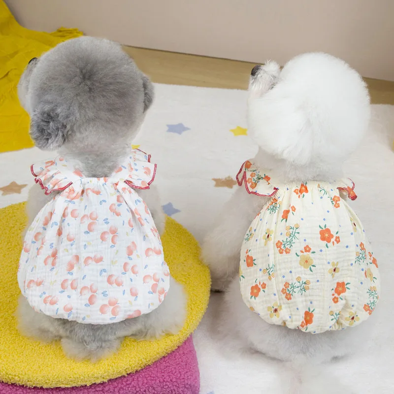 Ropa con estampado Floral para niñas y perros, ropa de verano con mangas voladoras, vestido con capucha para cachorros y gatitos, para perros pequeños y medianos, Dachshund Yorkie