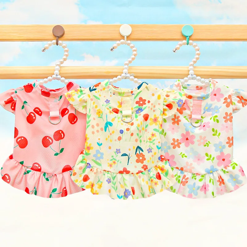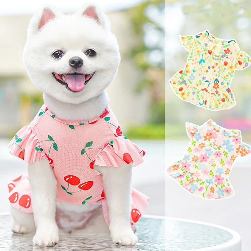 Floral Summer Clothes Mesh Dress For Dog Quick Drying Pet Clothes For Small Medium Dogs Dachshund Flying Sleeve Sweatshirt Skirt