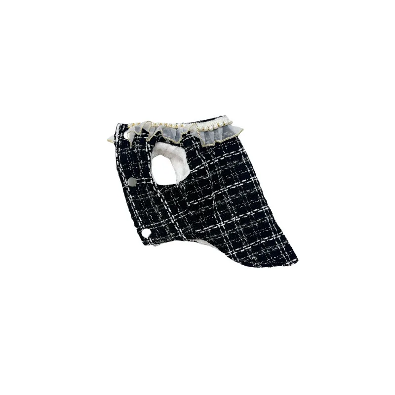Ropa fragante a cuadros en blanco y negro con perla para mujer Whippet galgo italiano chaleco de perro femenino de lujo en fiesta
